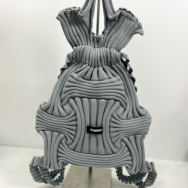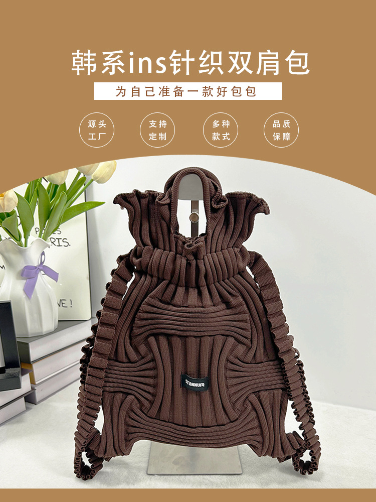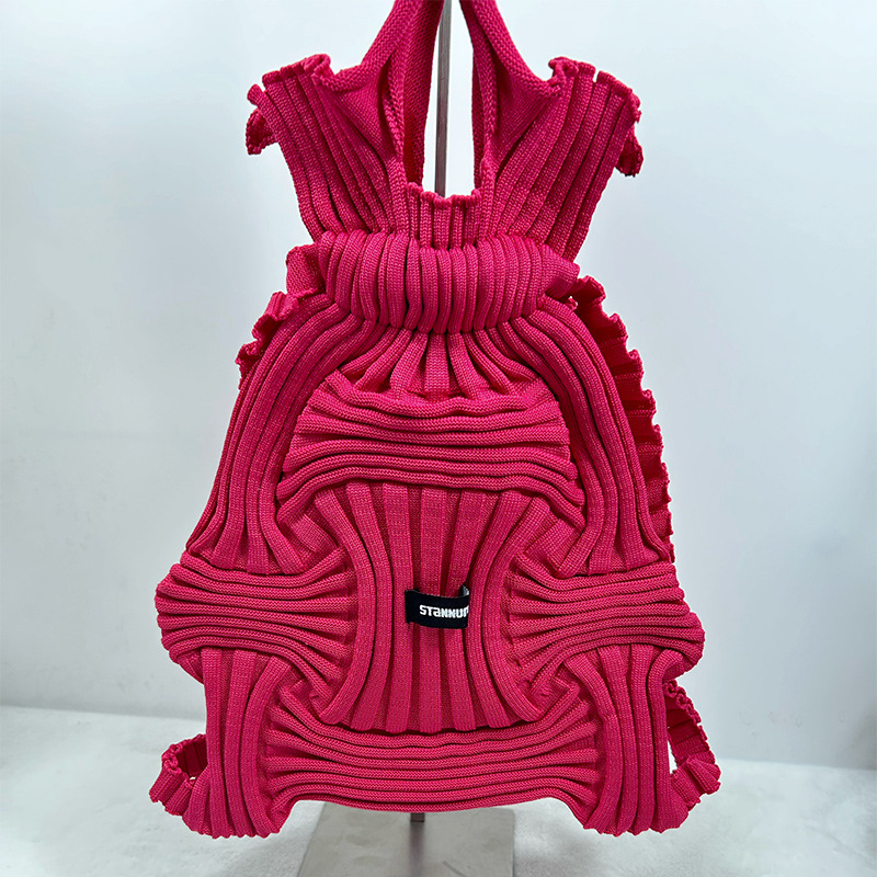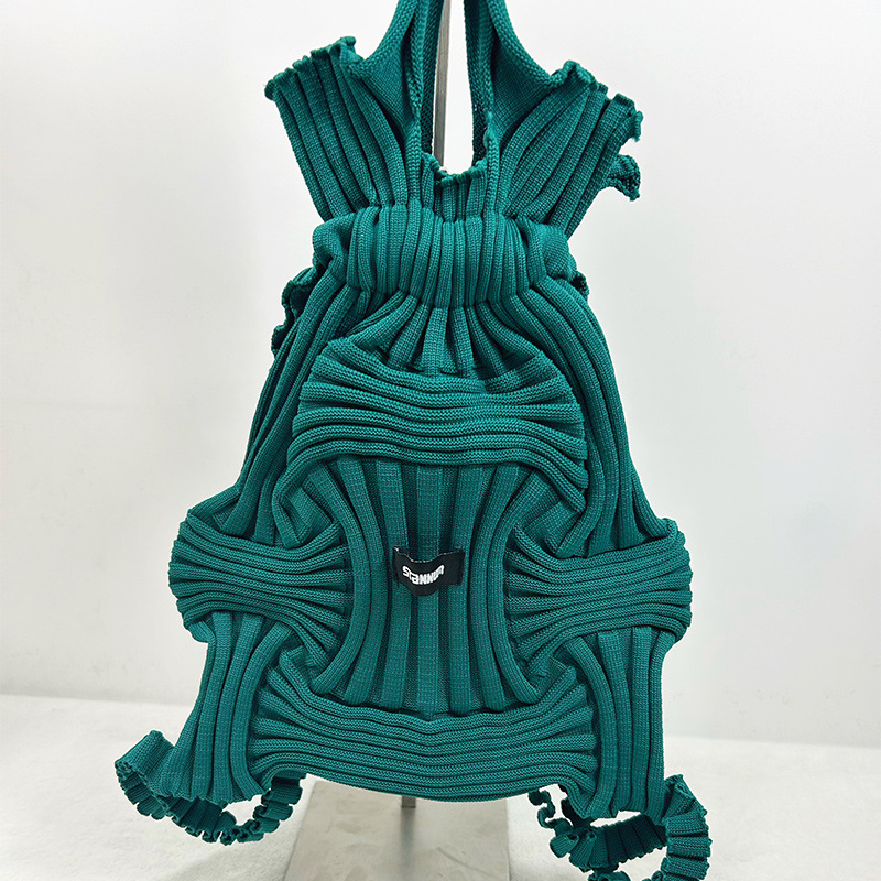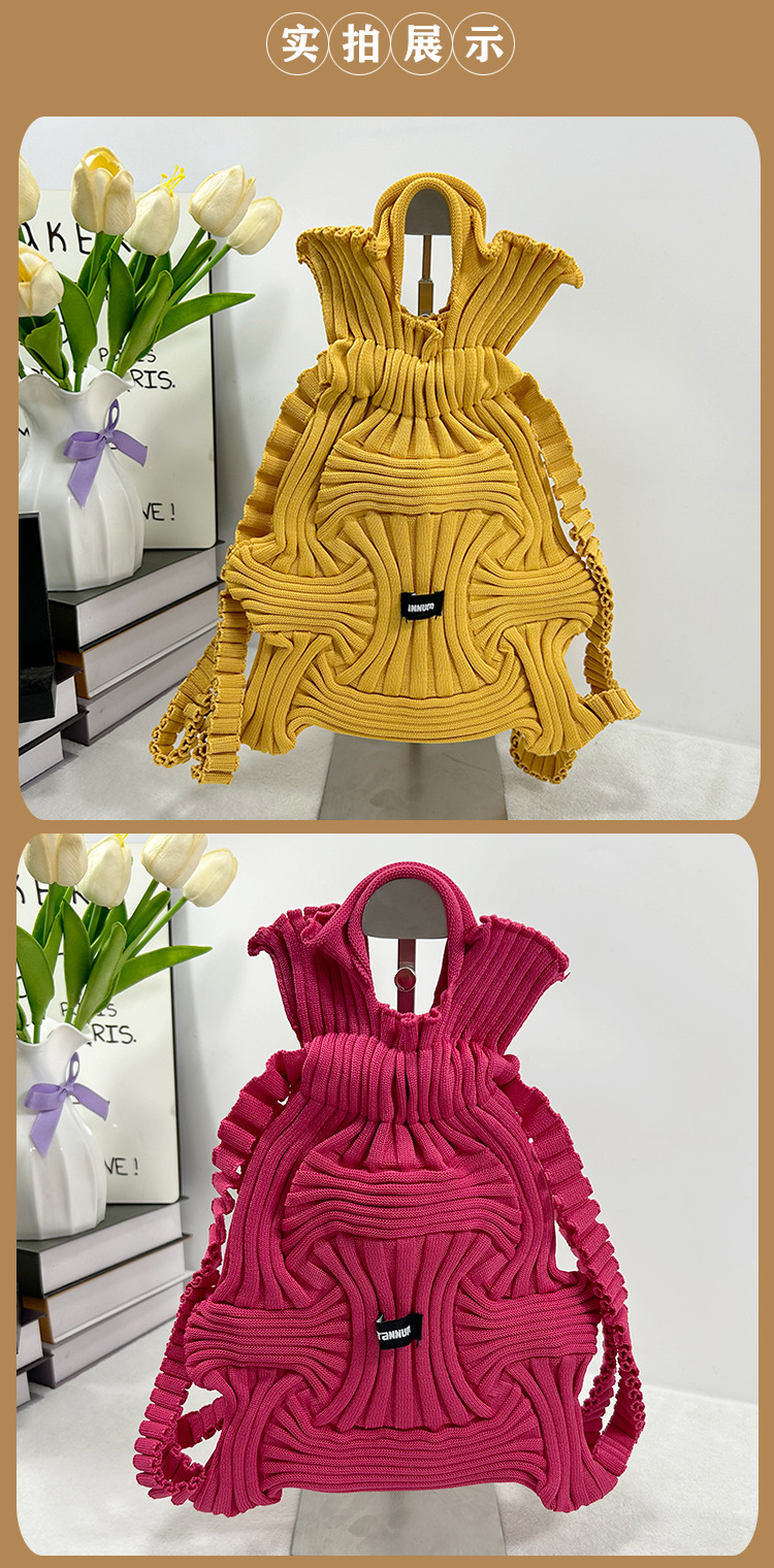 한국의 독특한 디자인 주름 백팩 캐주얼 니트 숄더백 패셔너블하고 개성 있는 모직 니트 가방
