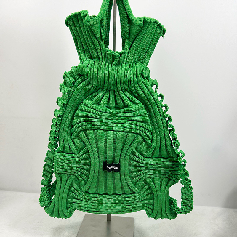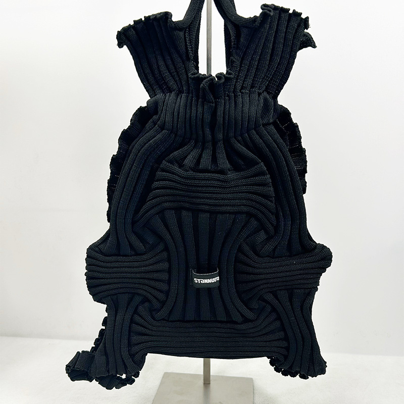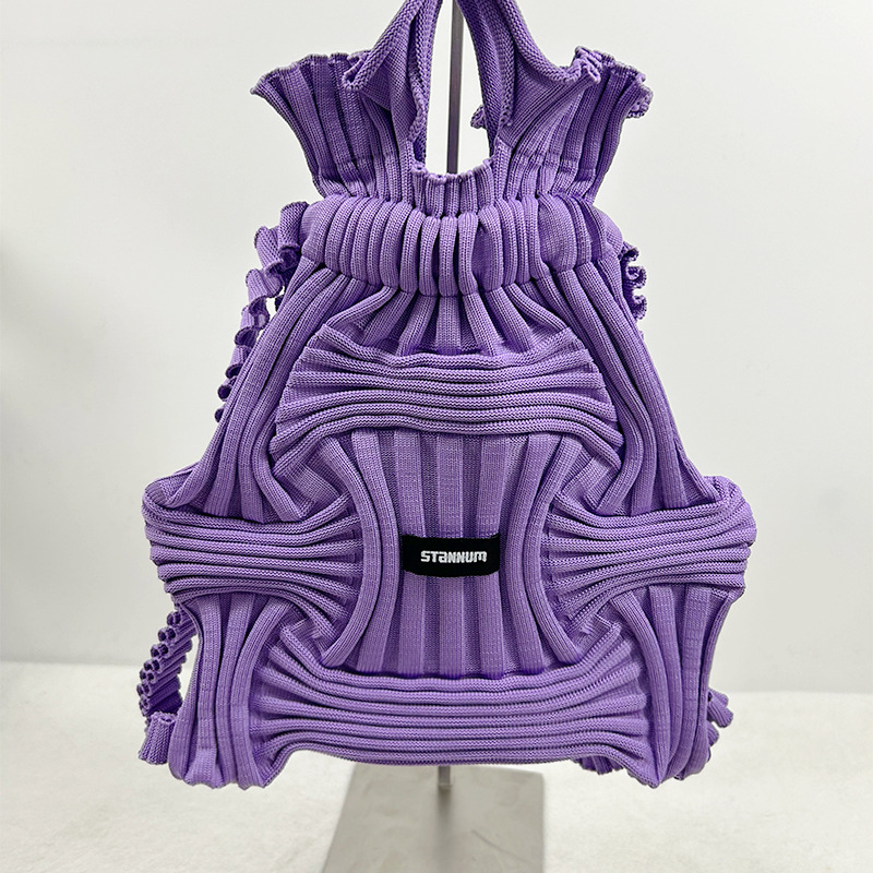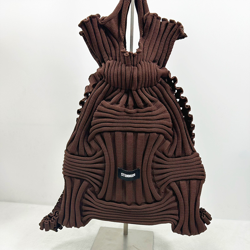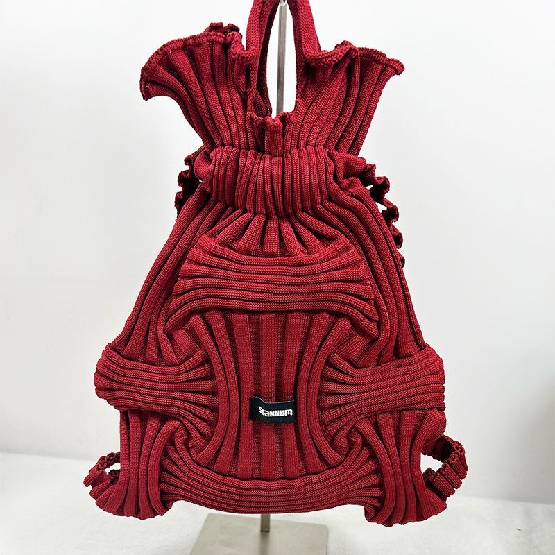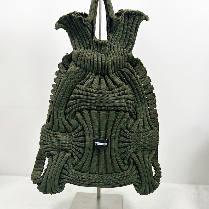 한국의 독특한 디자인 주름 백팩 캐주얼 니트 숄더백 패셔너블하고 개성 있는 모직 니트 가방
