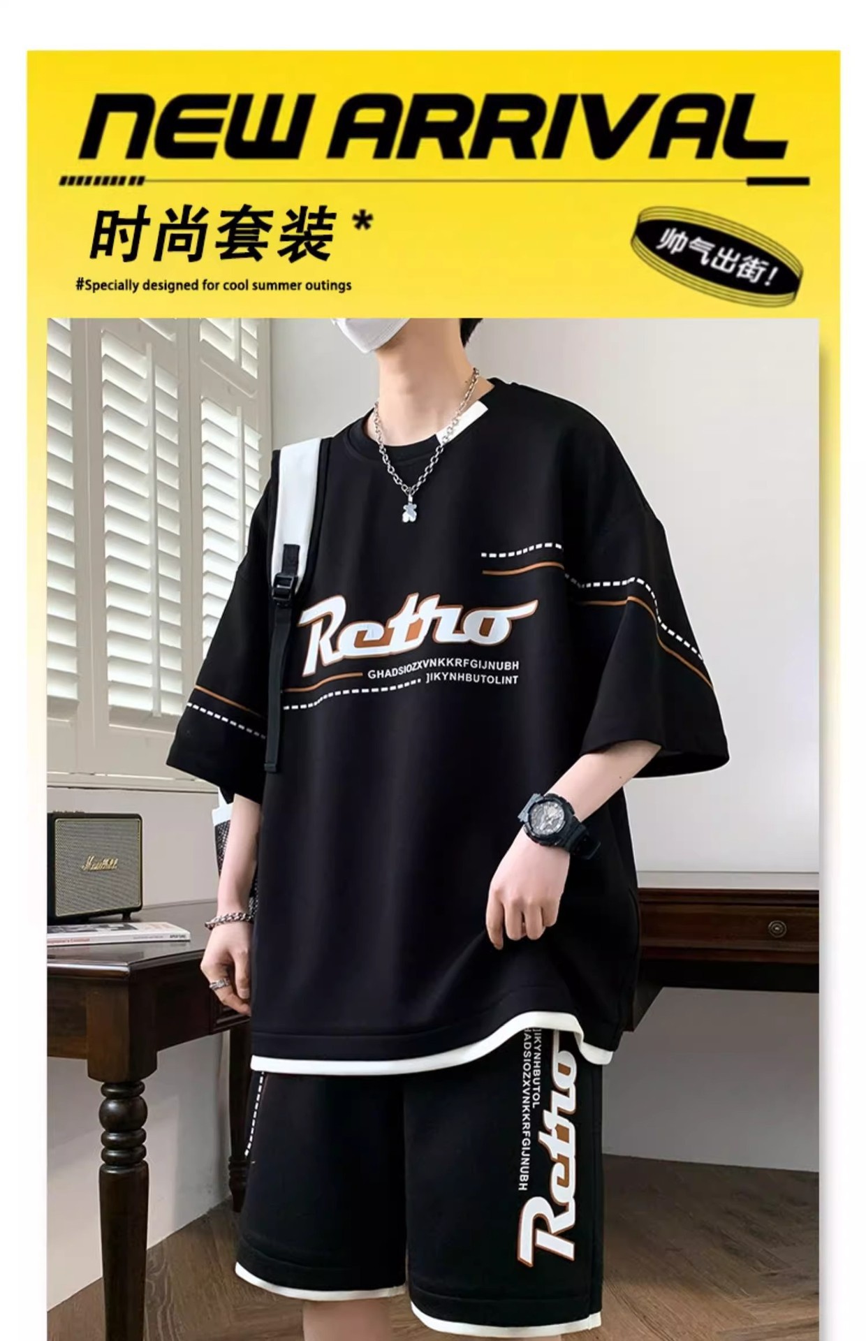남성용 캐주얼 스포츠 슈트, 여름 트렌드, 뚱뚱한 남자, 큰 사이즈 반팔 반바지 세트, 잘생긴 청소년 옷