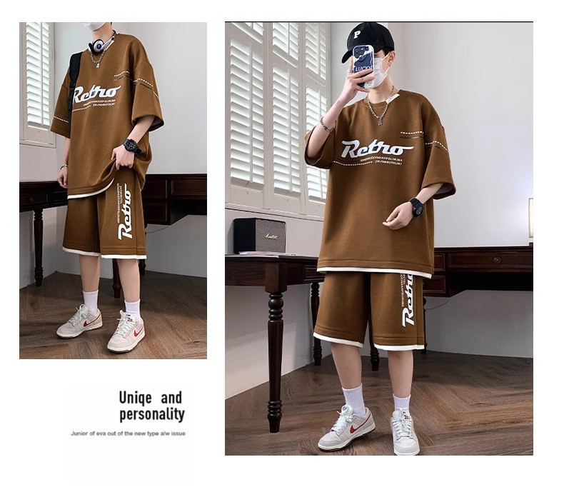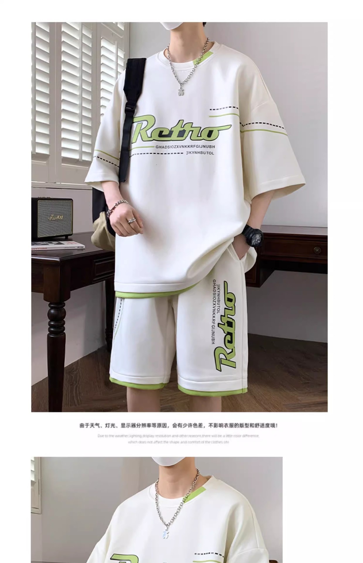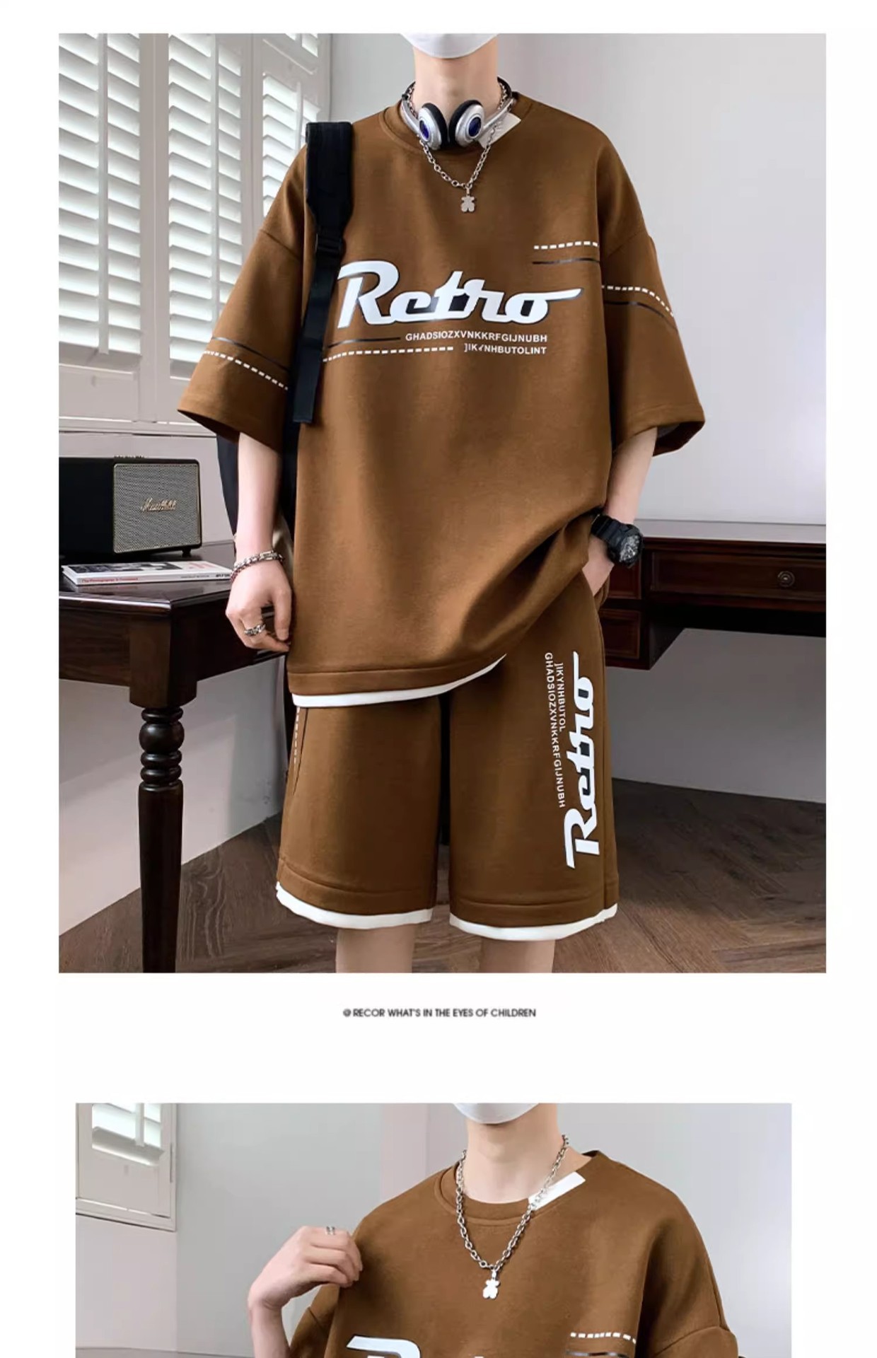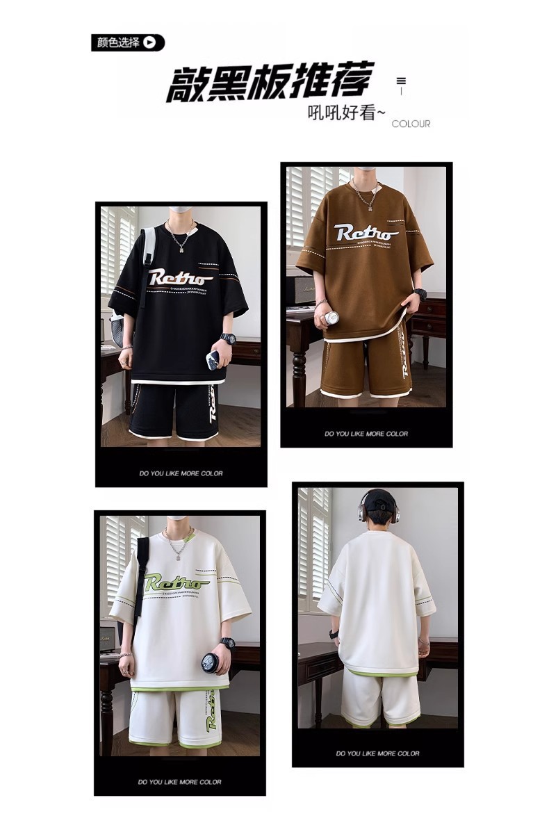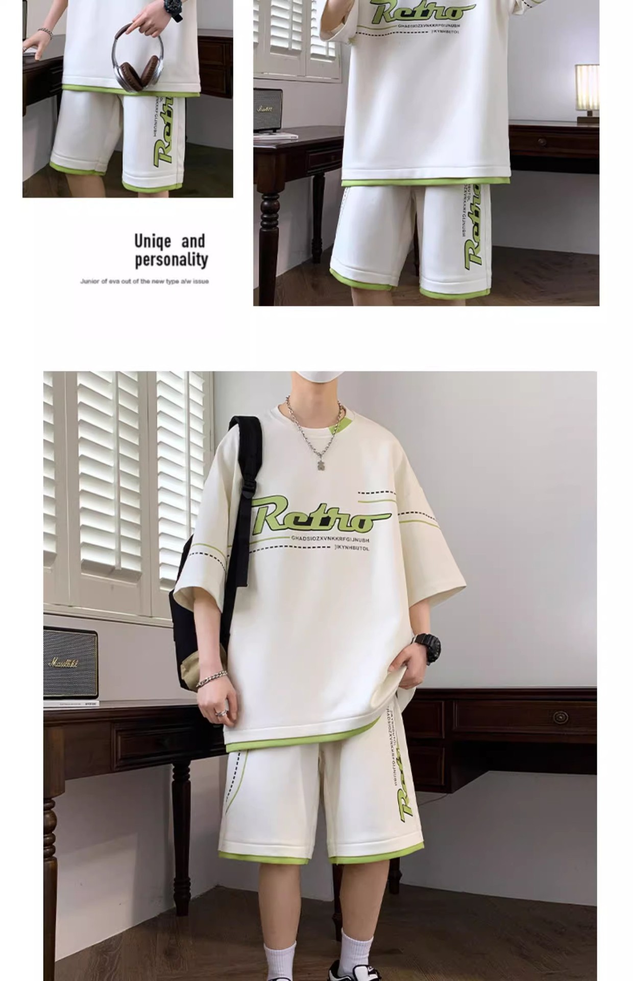 남성용 캐주얼 스포츠 슈트, 여름 트렌드, 뚱뚱한 남자, 큰 사이즈 반팔 반바지 세트, 잘생긴 청소년 옷스토어 가기