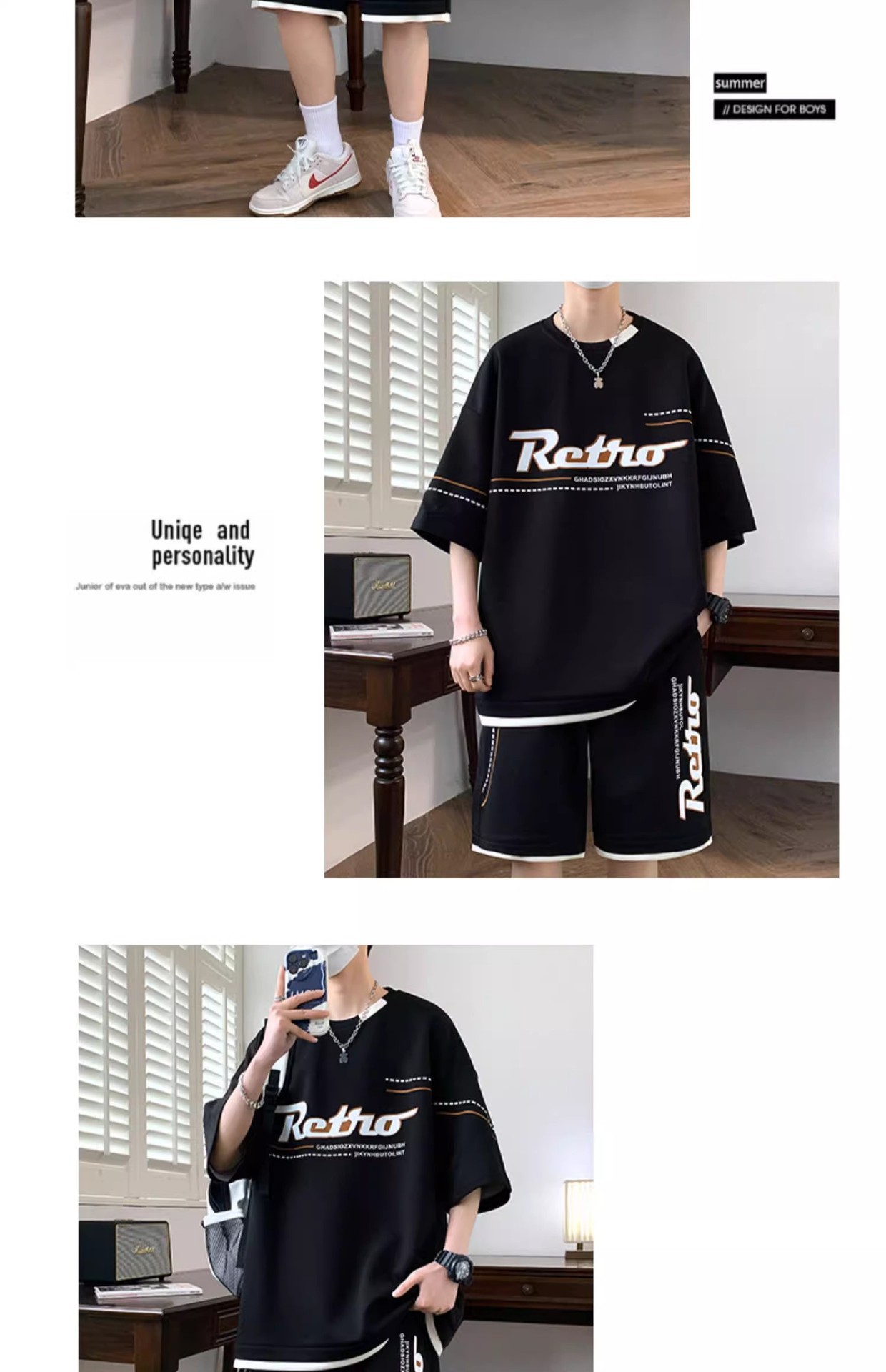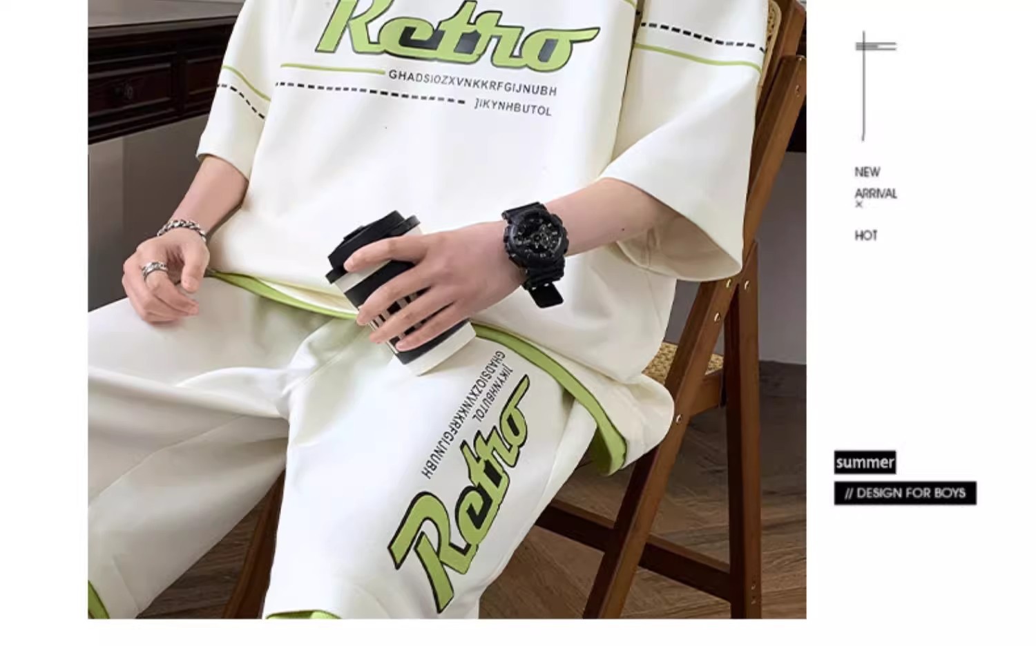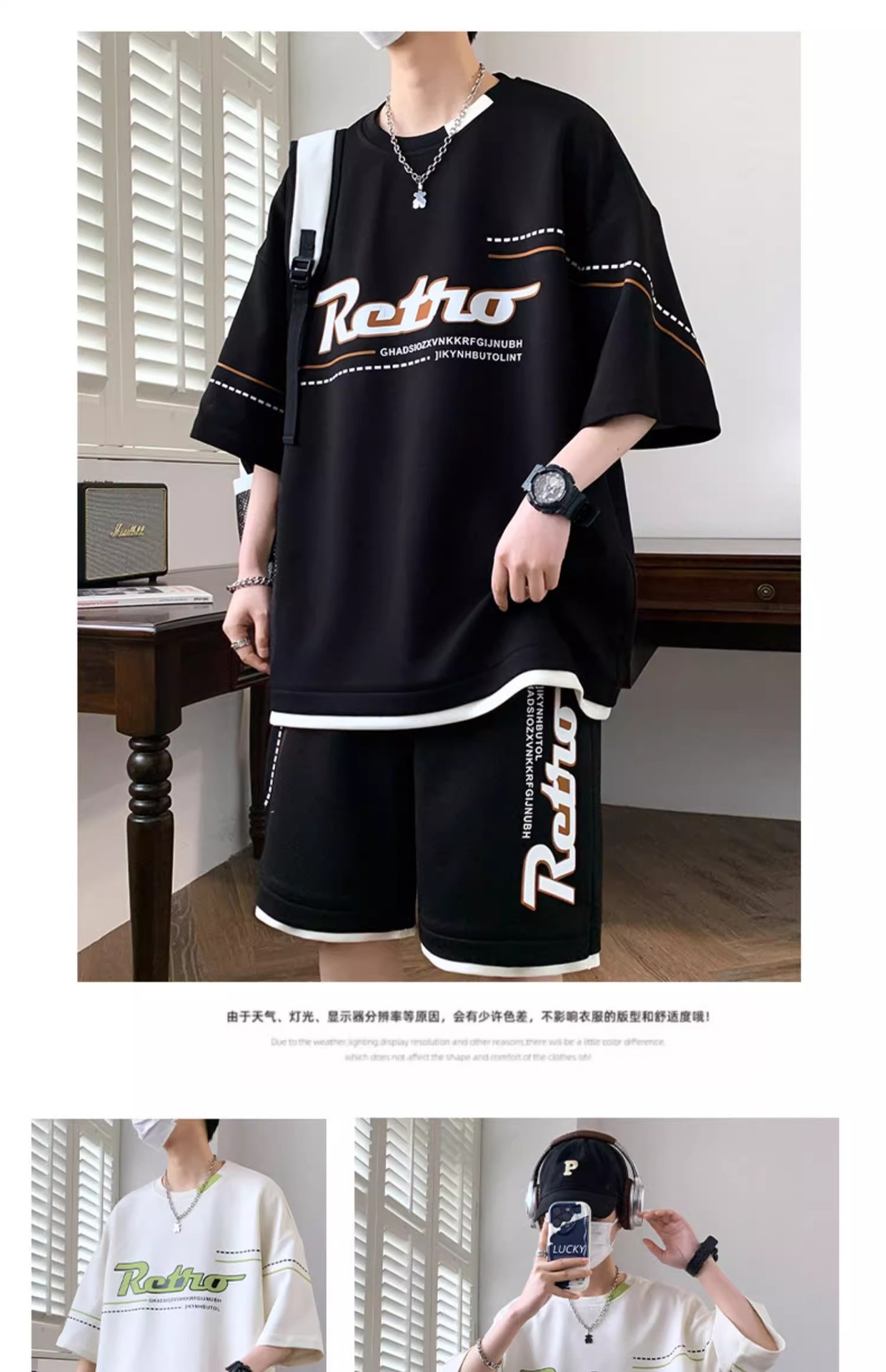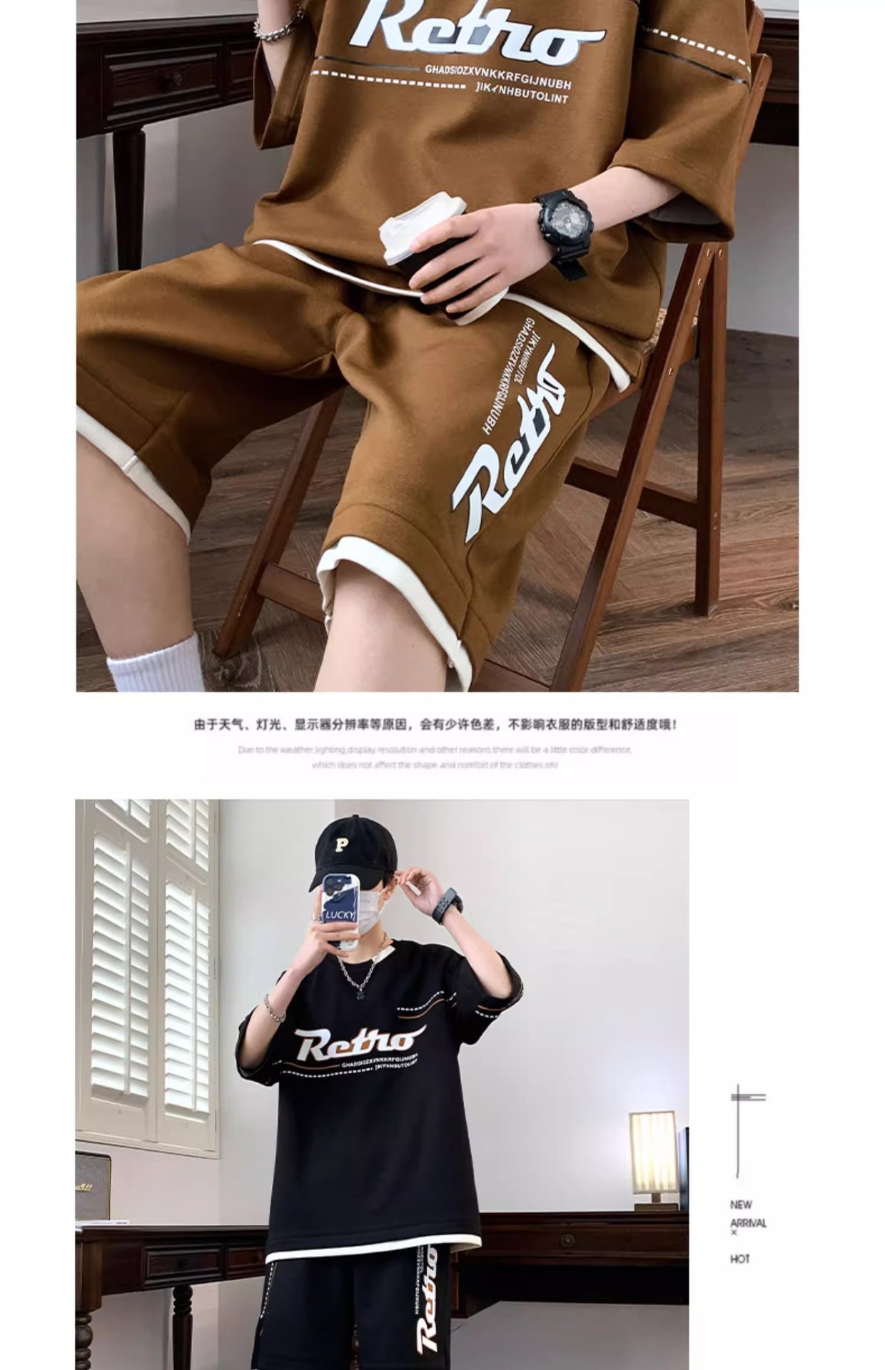 남성용 캐주얼 스포츠 슈트, 여름 트렌드, 뚱뚱한 남자, 큰 사이즈 반팔 반바지 세트, 잘생긴 청소년 옷스토어 가기