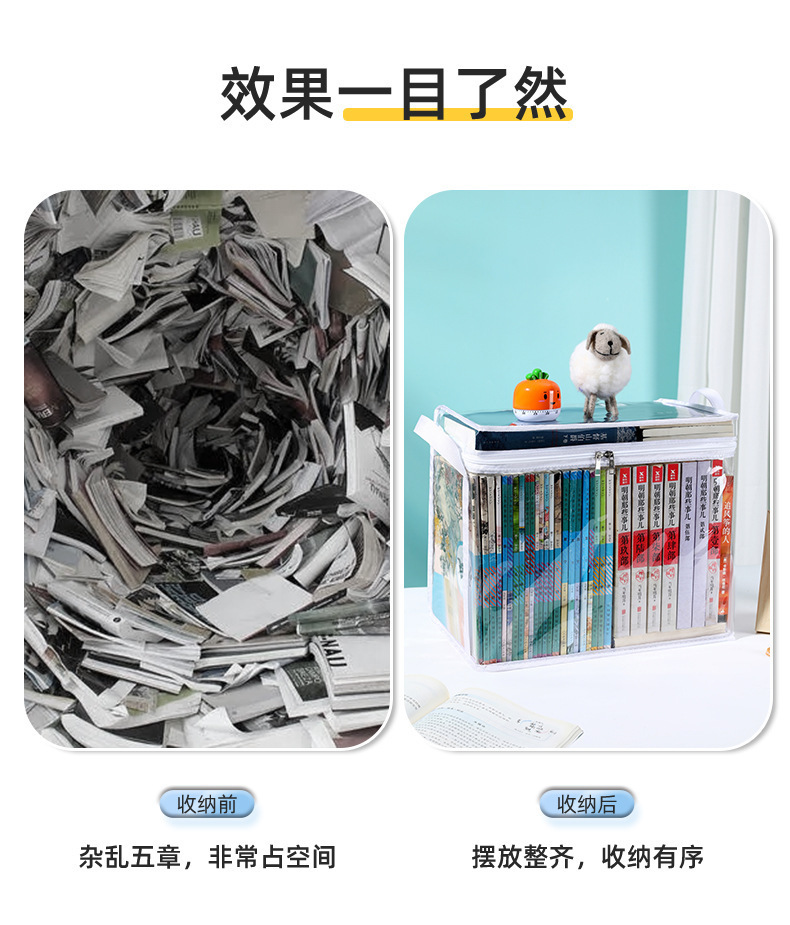 접이식 책 상자 학생 기숙사 교실 책 보관 상자 투명한 방수 가정용 책 정리 보관 상자스토어 가기