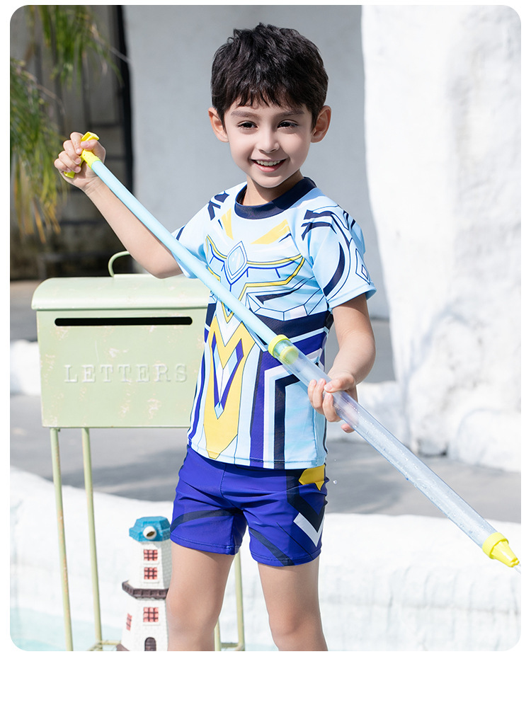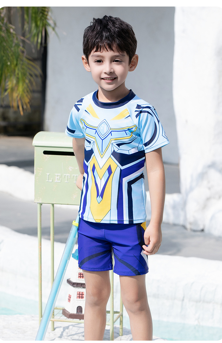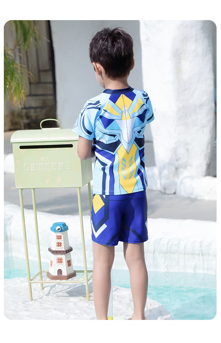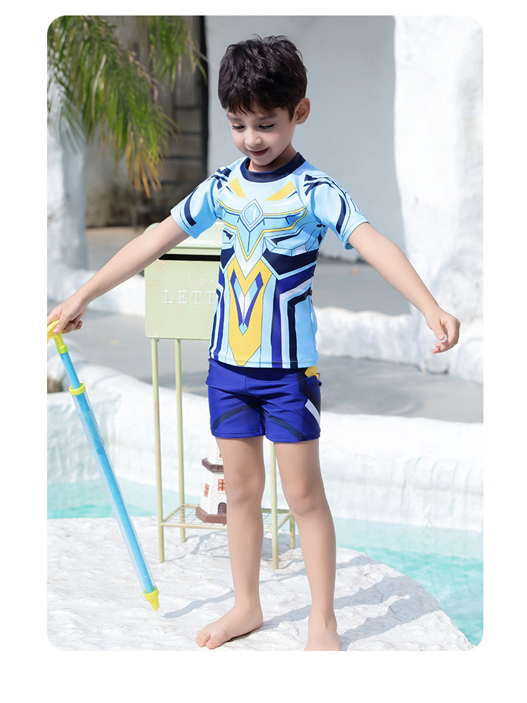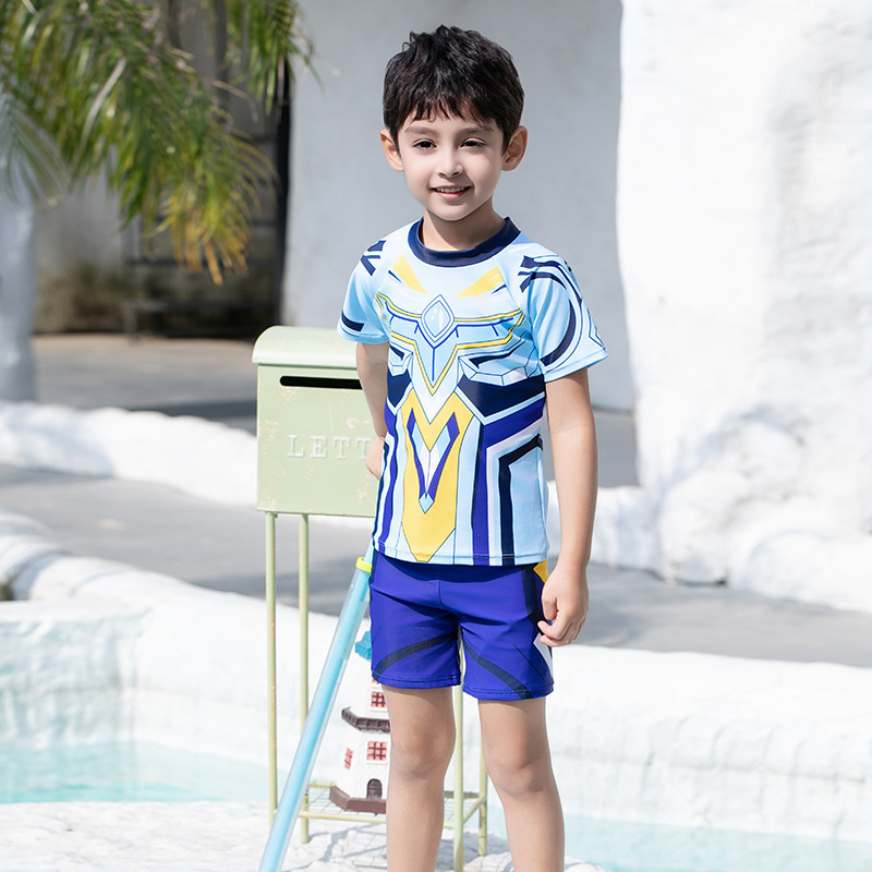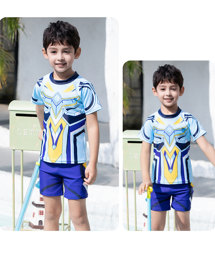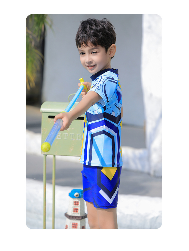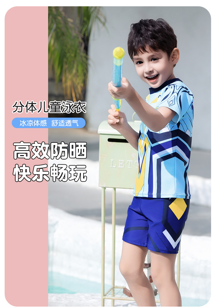 도매 어린이 수영복 2025 새로운 스타일 소년 대형, 중형 및 소형 어린이 분할 태양 보호 속건성 소년 학생 수영복스토어 가기