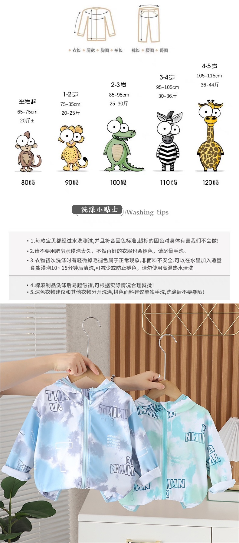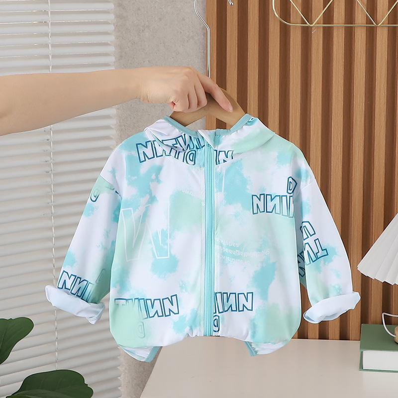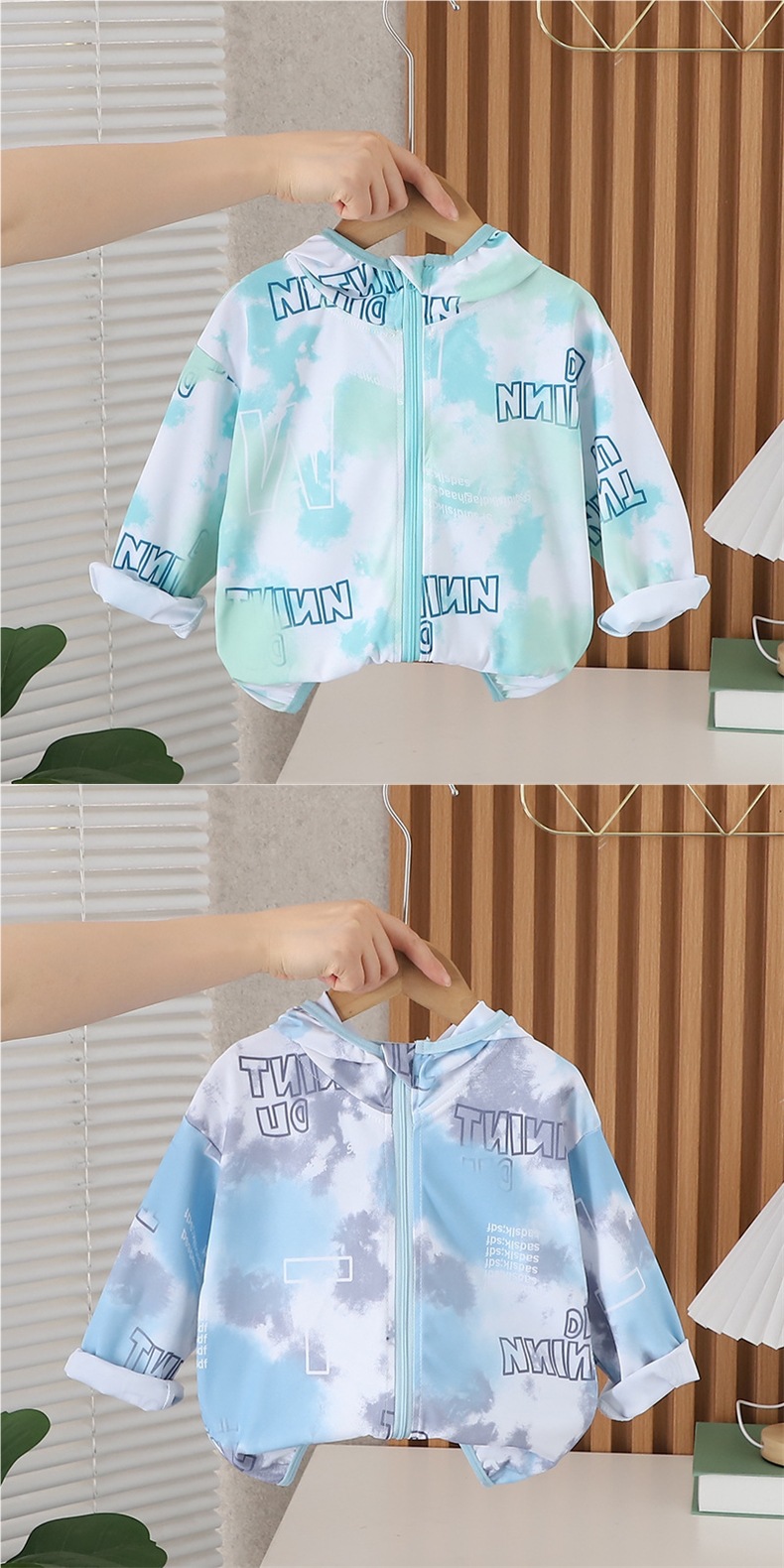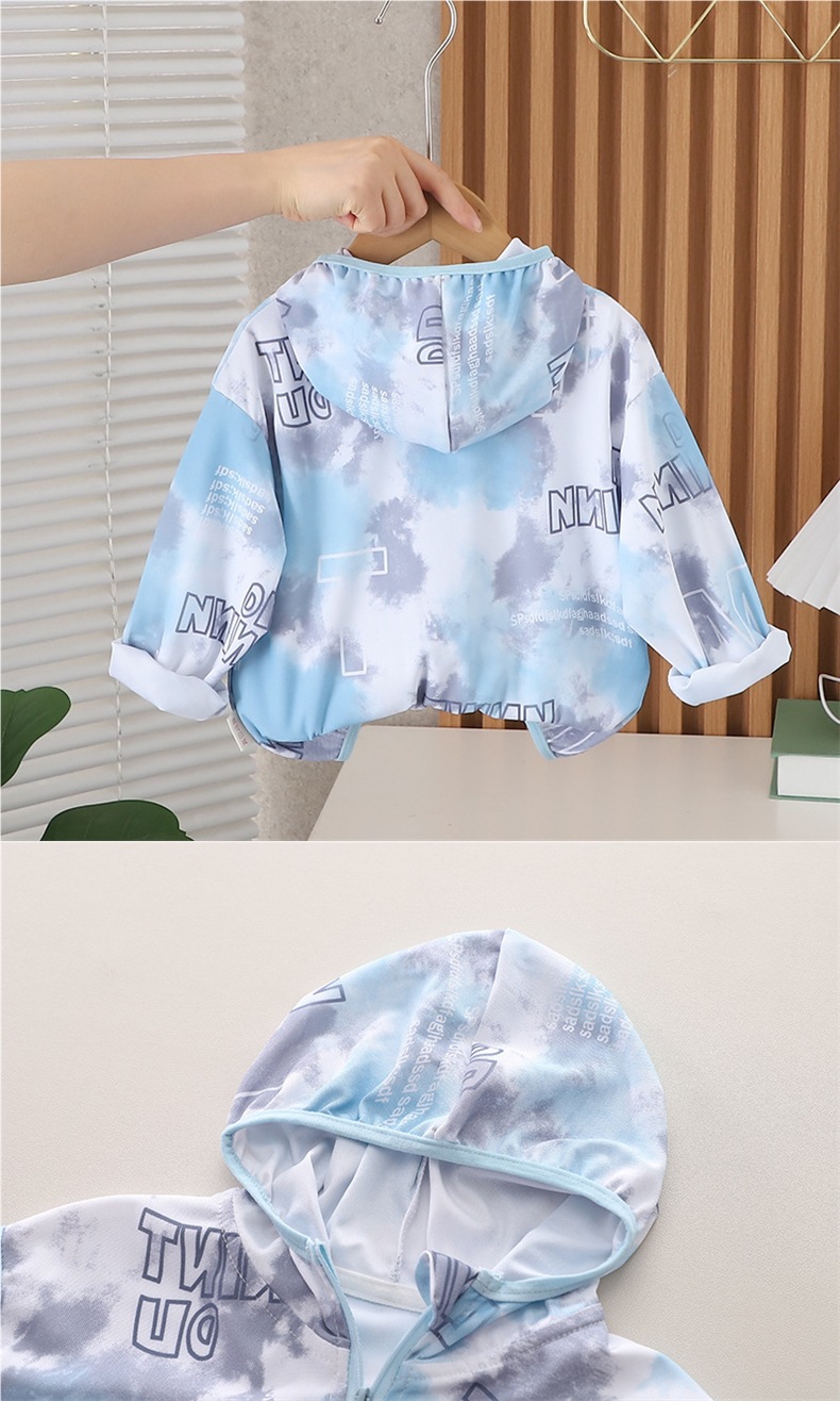 아동용 여름 그라데이션 문자 에어컨 의류 얇은 코트 중소형 아동용 새 여름 의류 소년 후드 자외선 차단 의류 유행스토어 가기