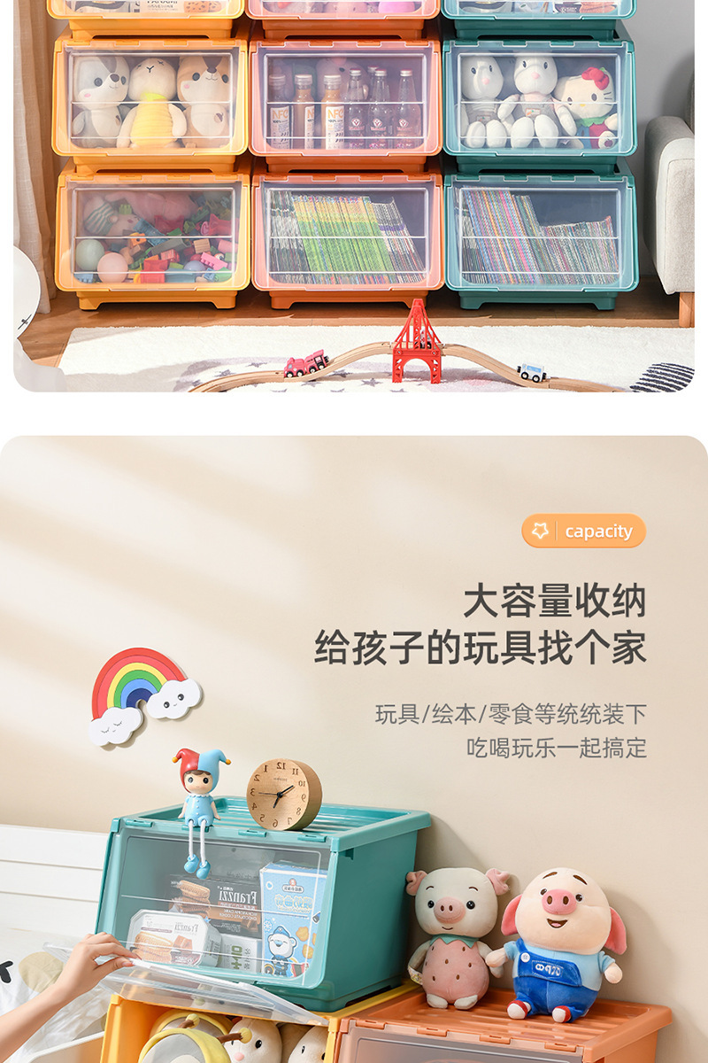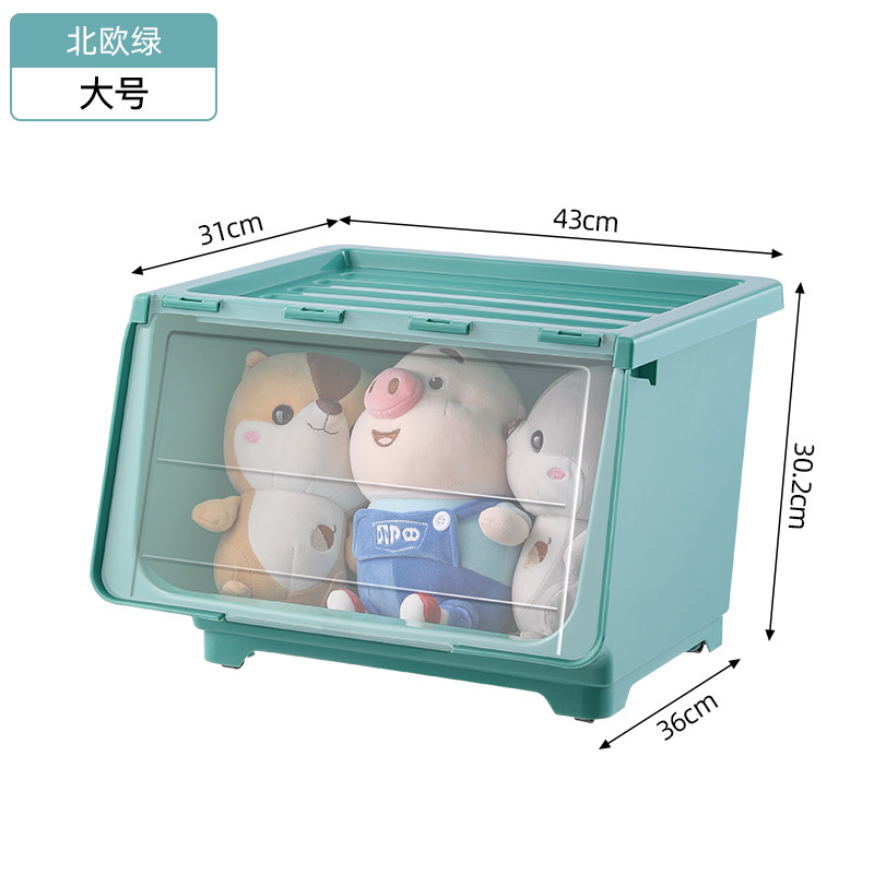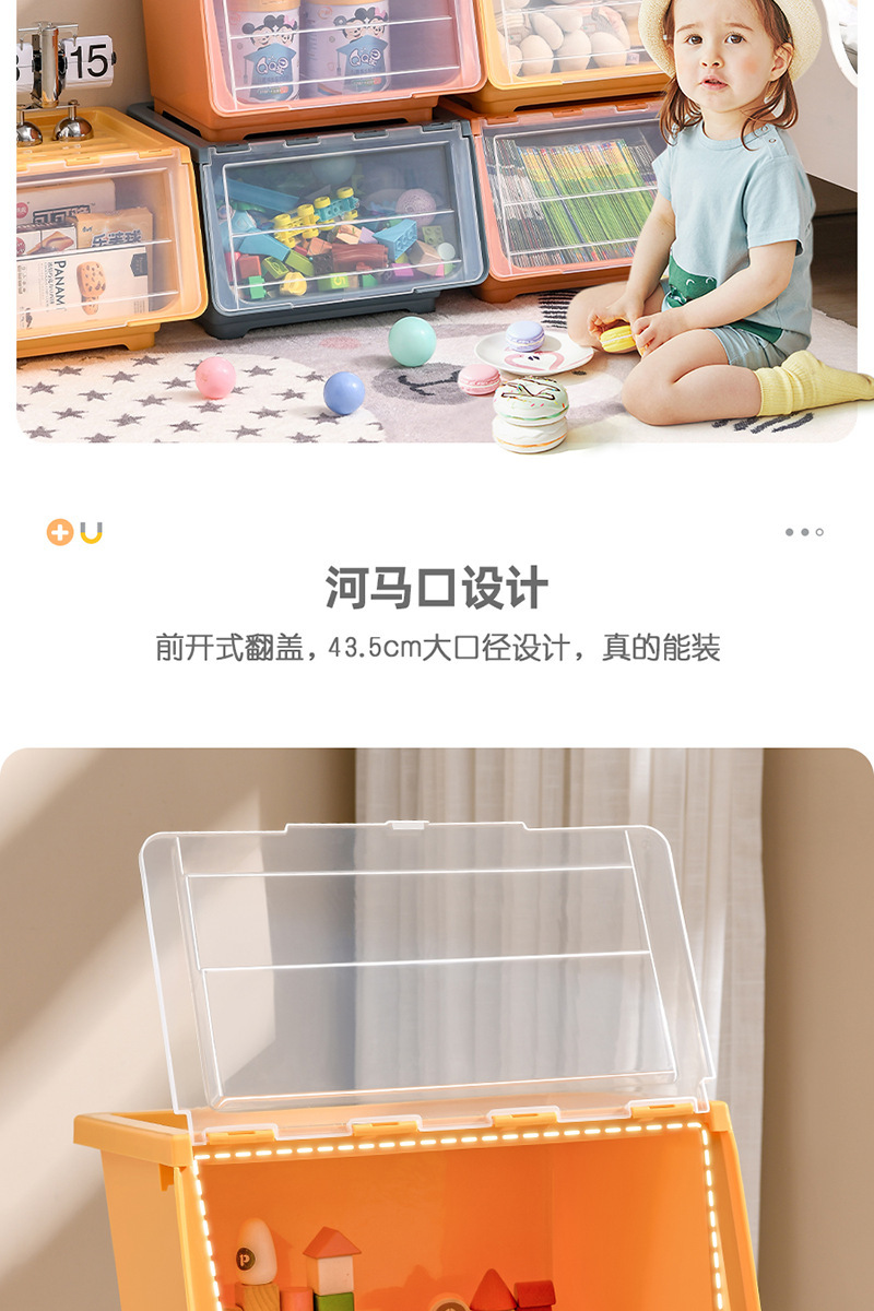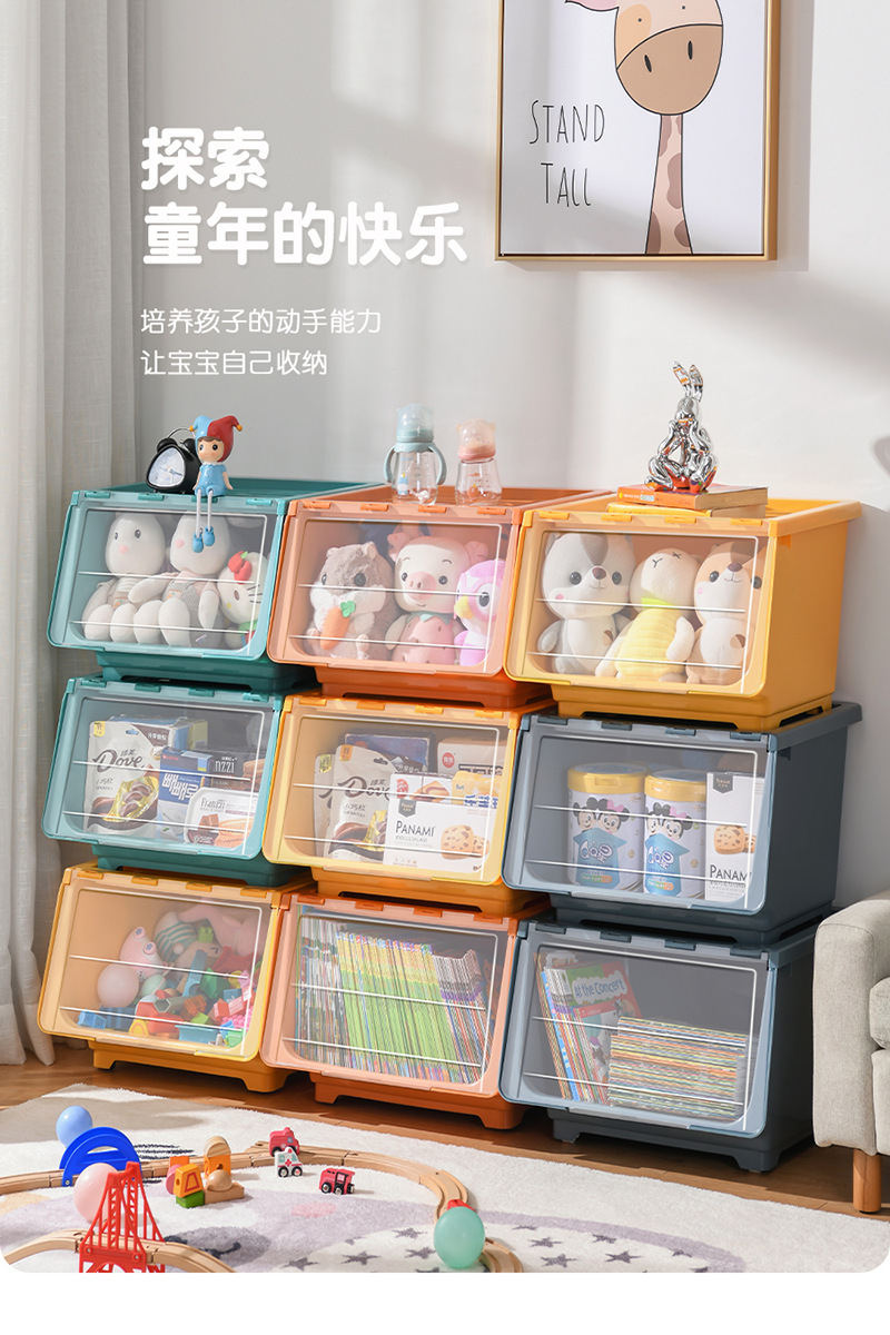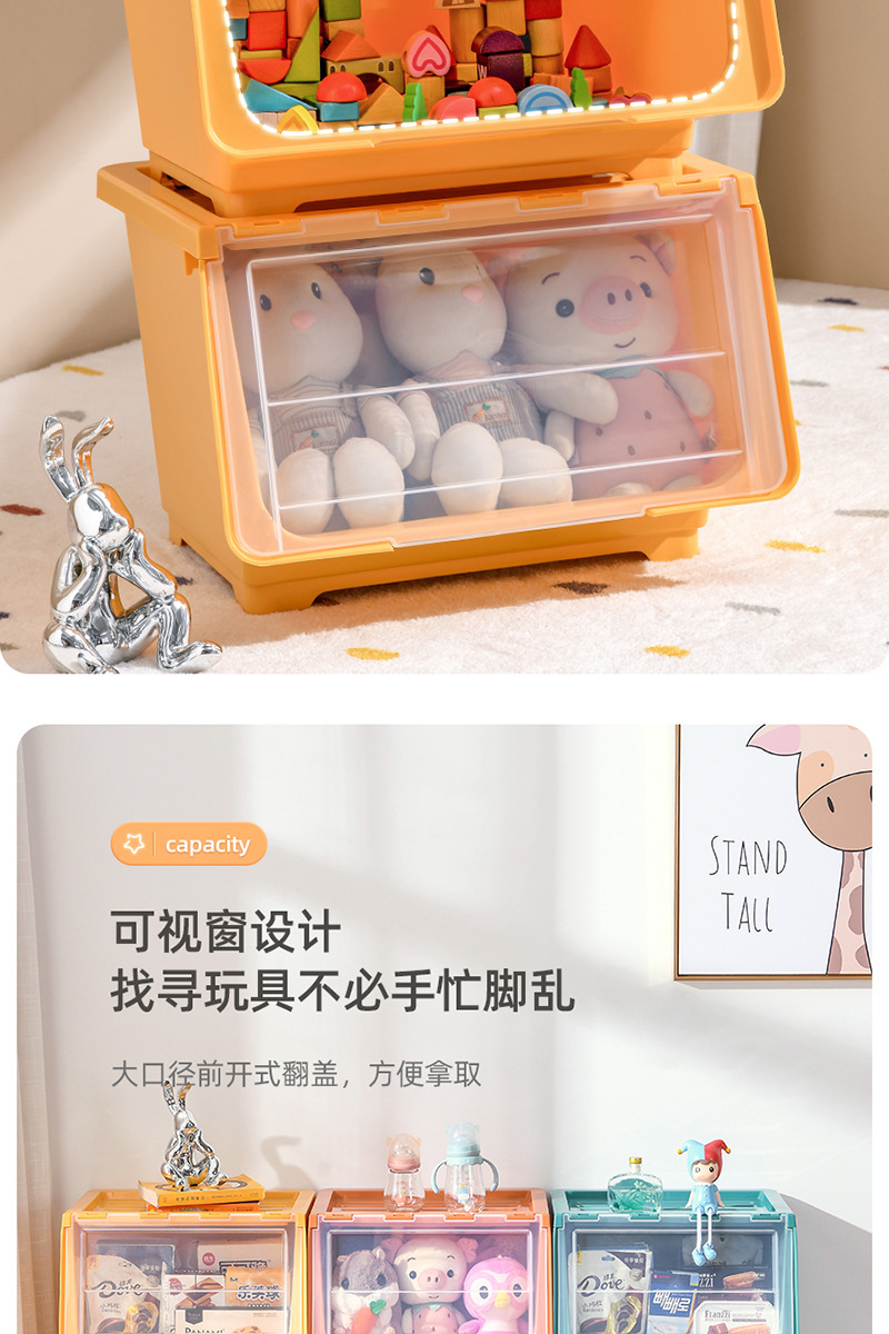 장난감 보관 상자 전면 개방형 투명 플립 커버 어린이 보관 바구니 아기 간식 보관 상자 보관 캐비닛