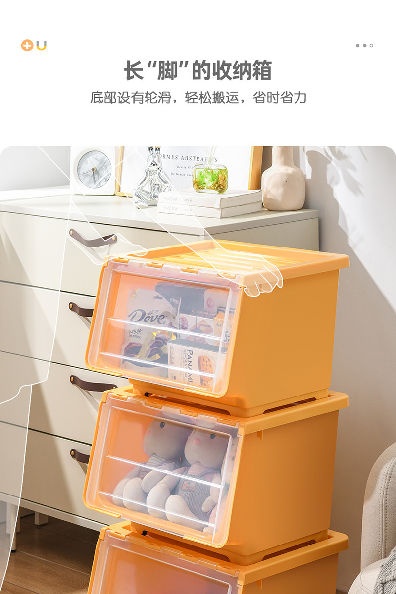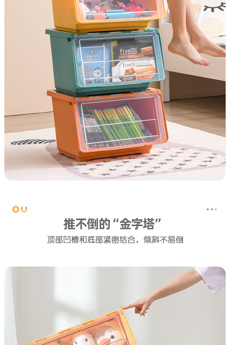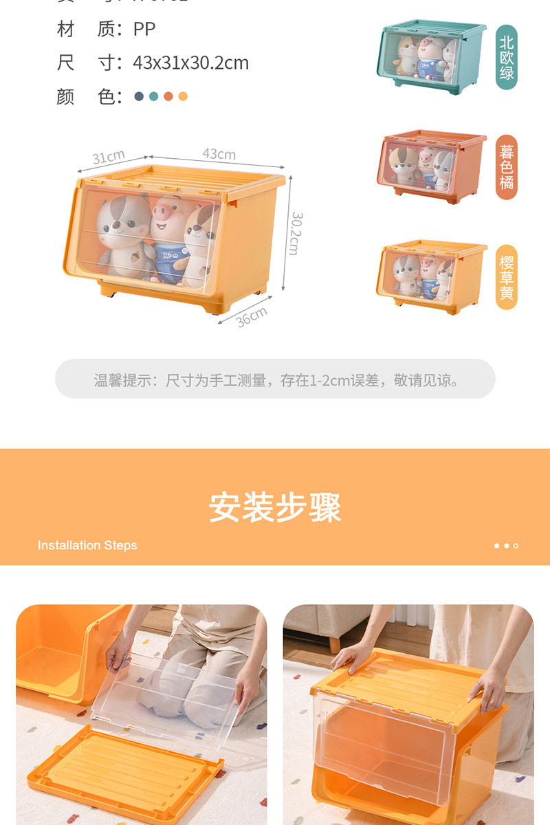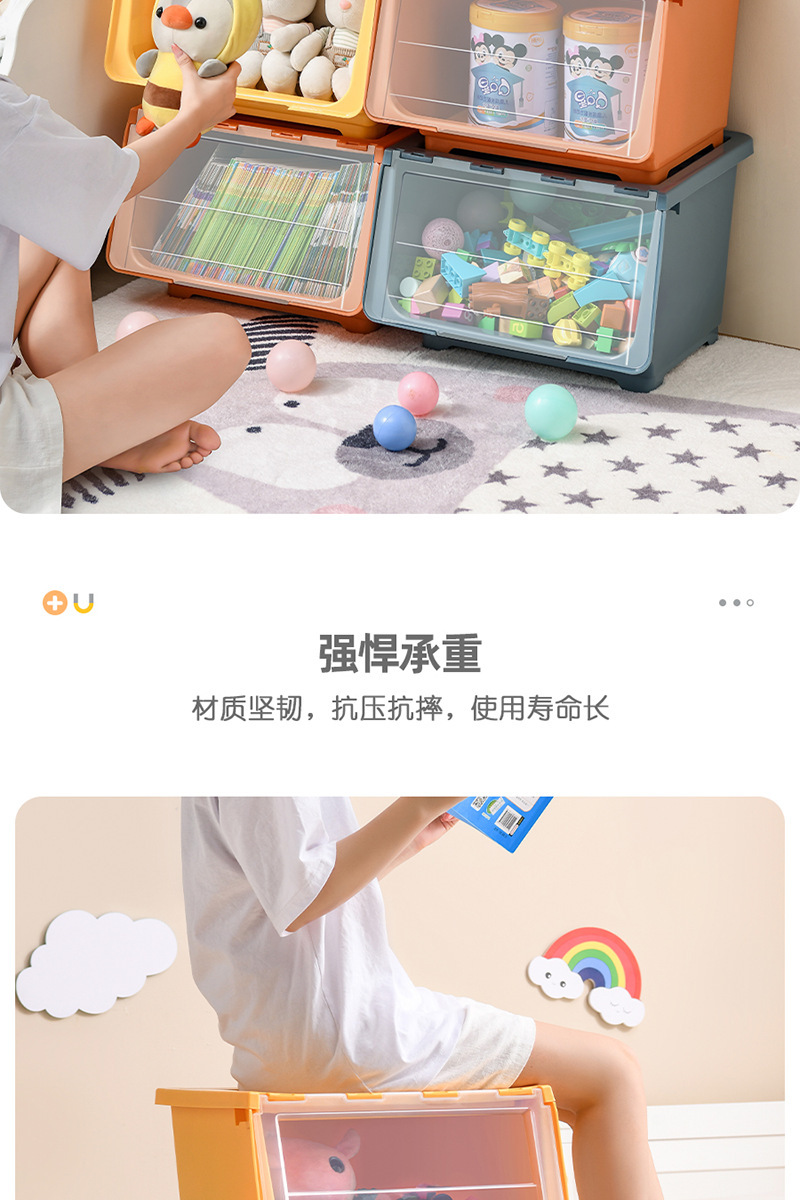 장난감 보관 상자 전면 개방형 투명 플립 커버 어린이 보관 바구니 아기 간식 보관 상자 보관 캐비닛