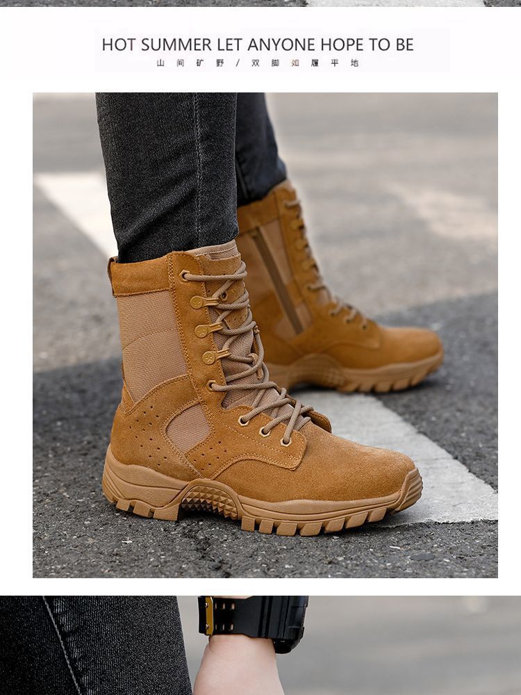 새로운 야외 훈련 봄과 여름 초경량 방수 통기성 하이 탑 등산 하이킹 지퍼 겨울 작업복 사막 전투 부츠