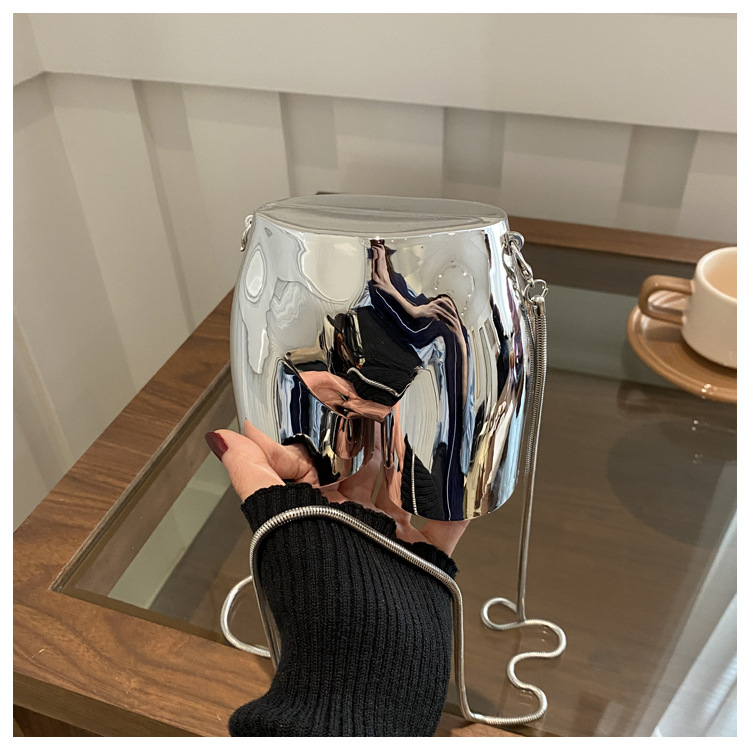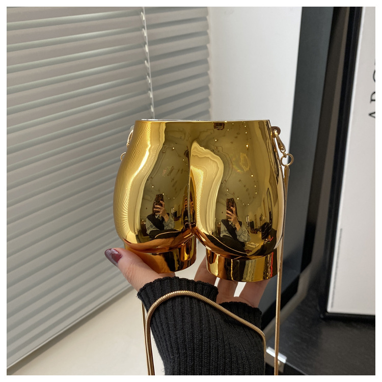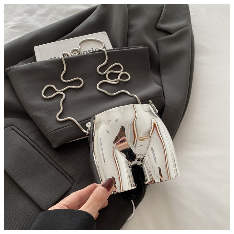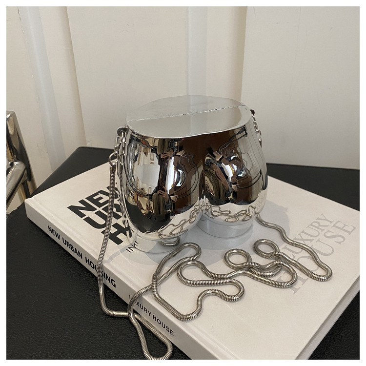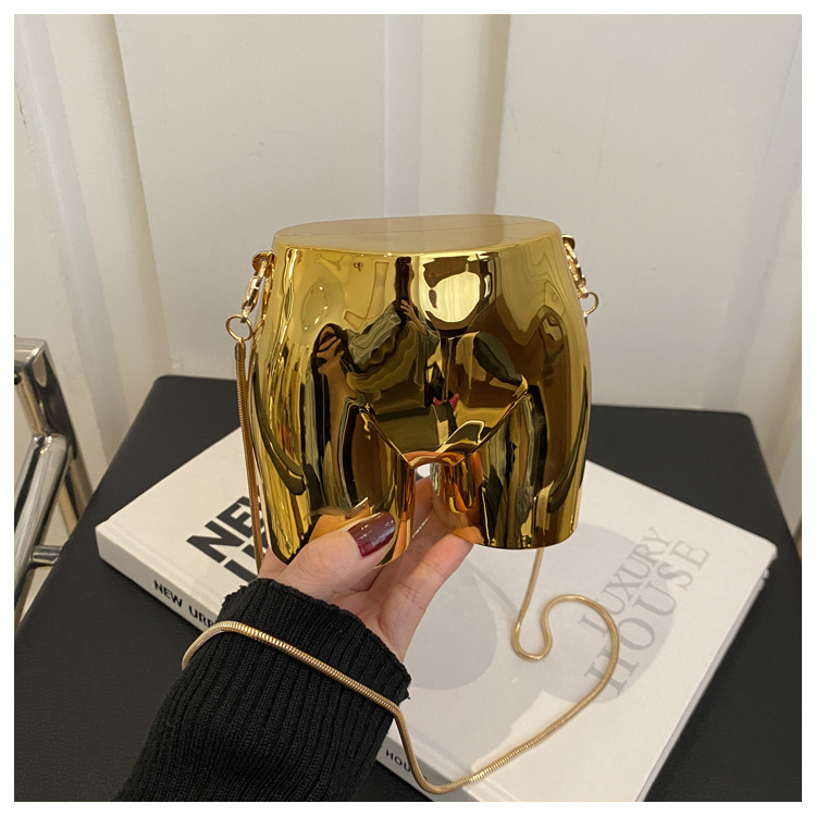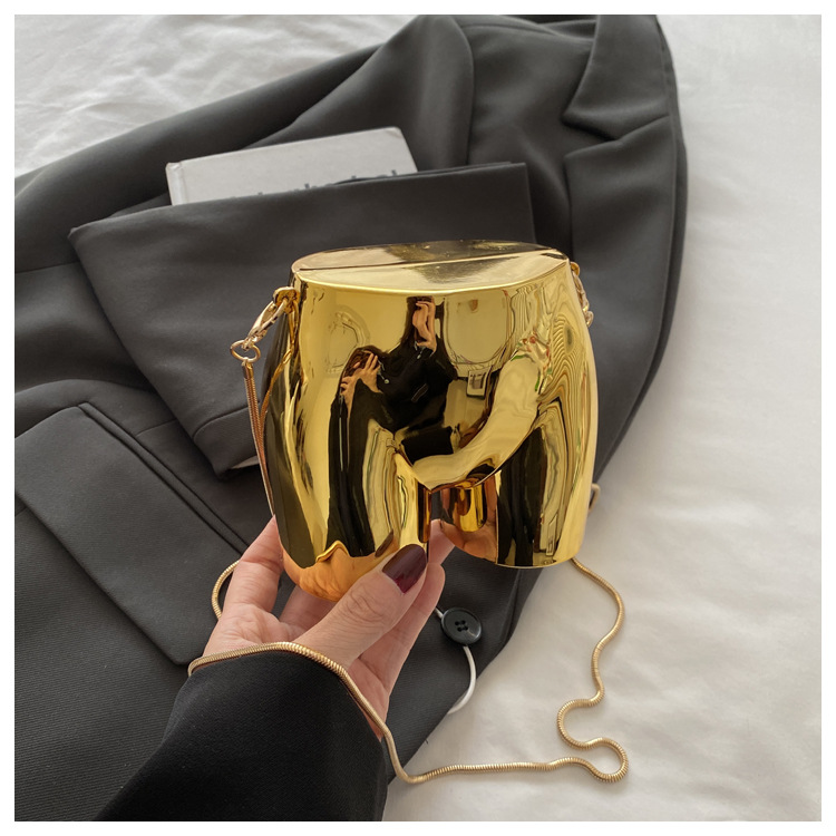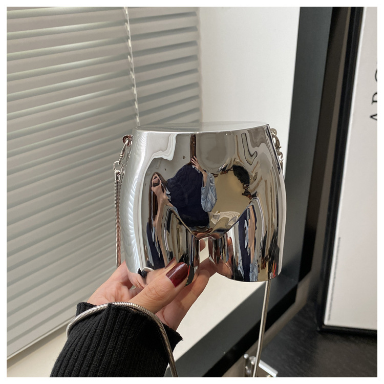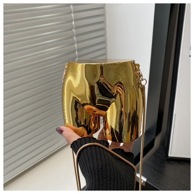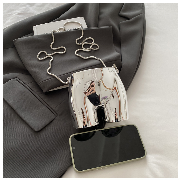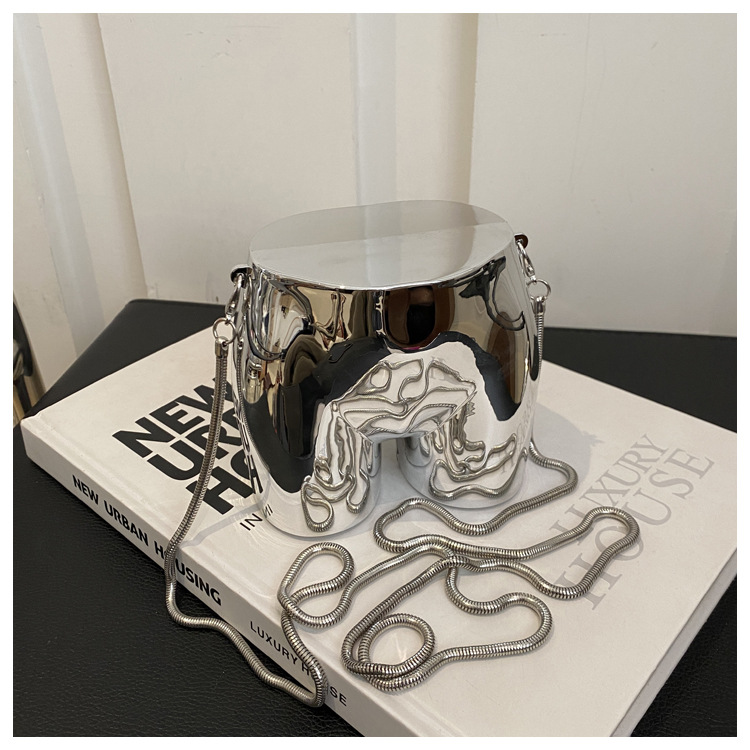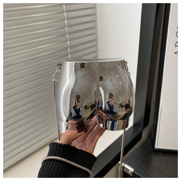독특한 재미있는 엉덩이 금속 가방 여성의 2025 년 초가을 새로운 틈새 디자인 밝은 체인 크로스 바디 어깨 가방
