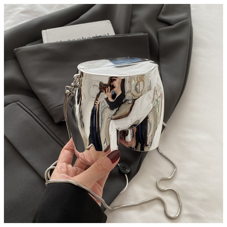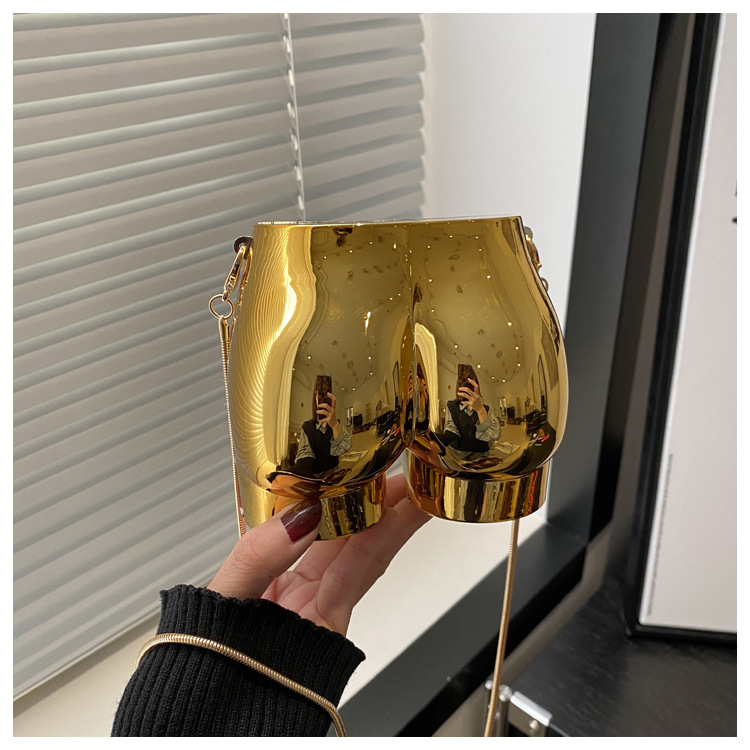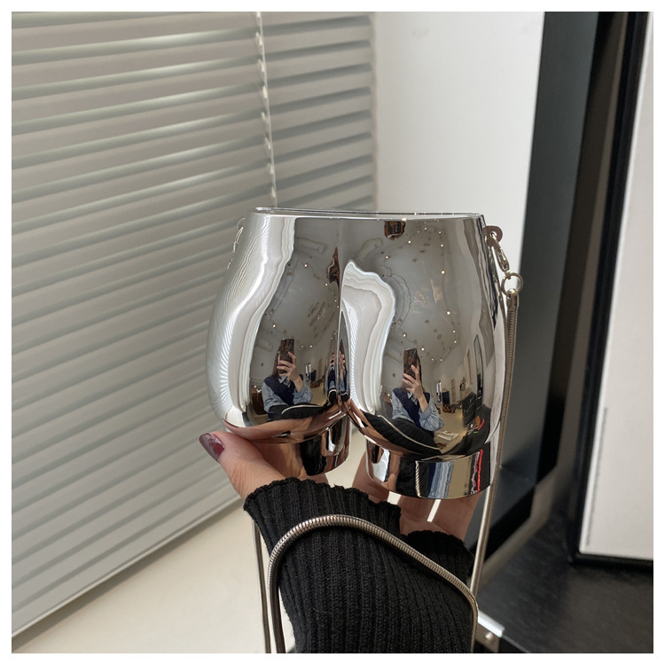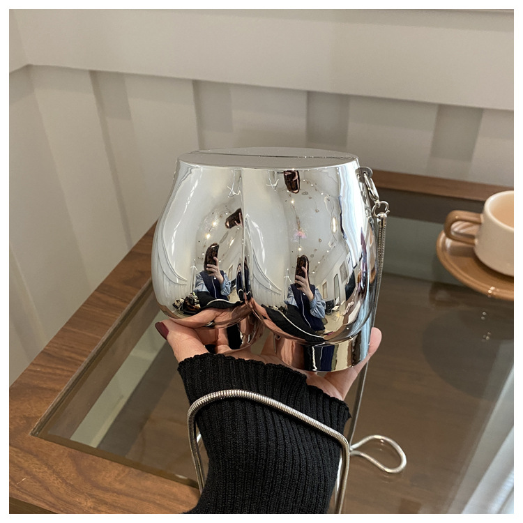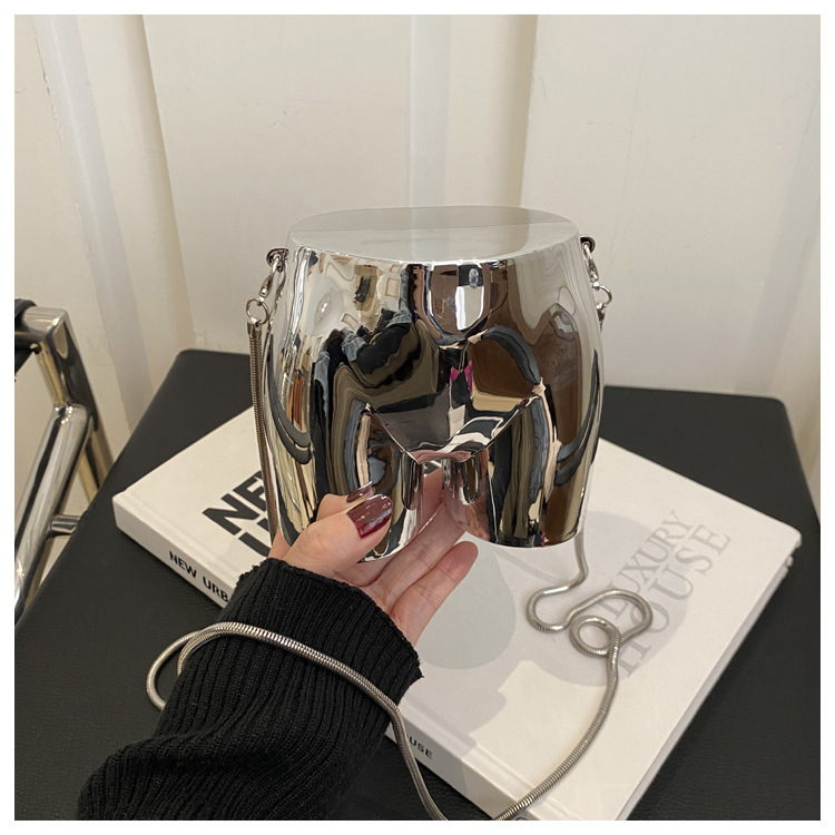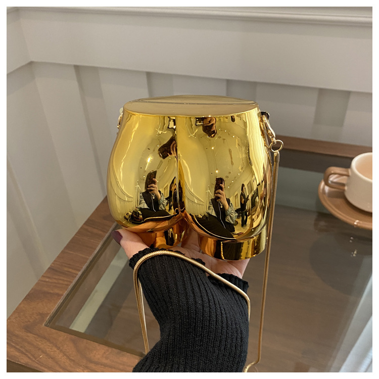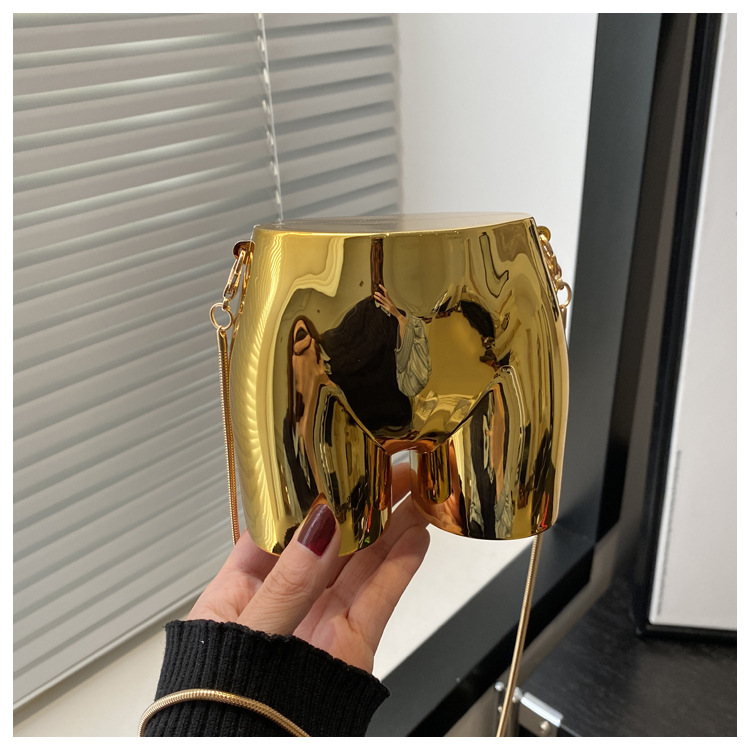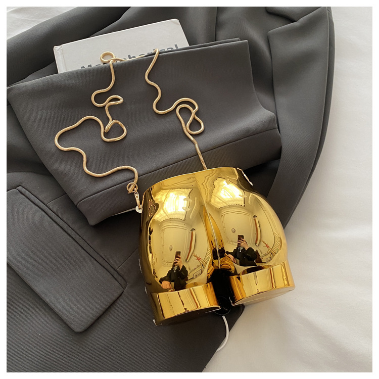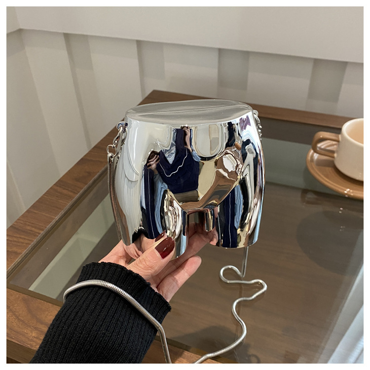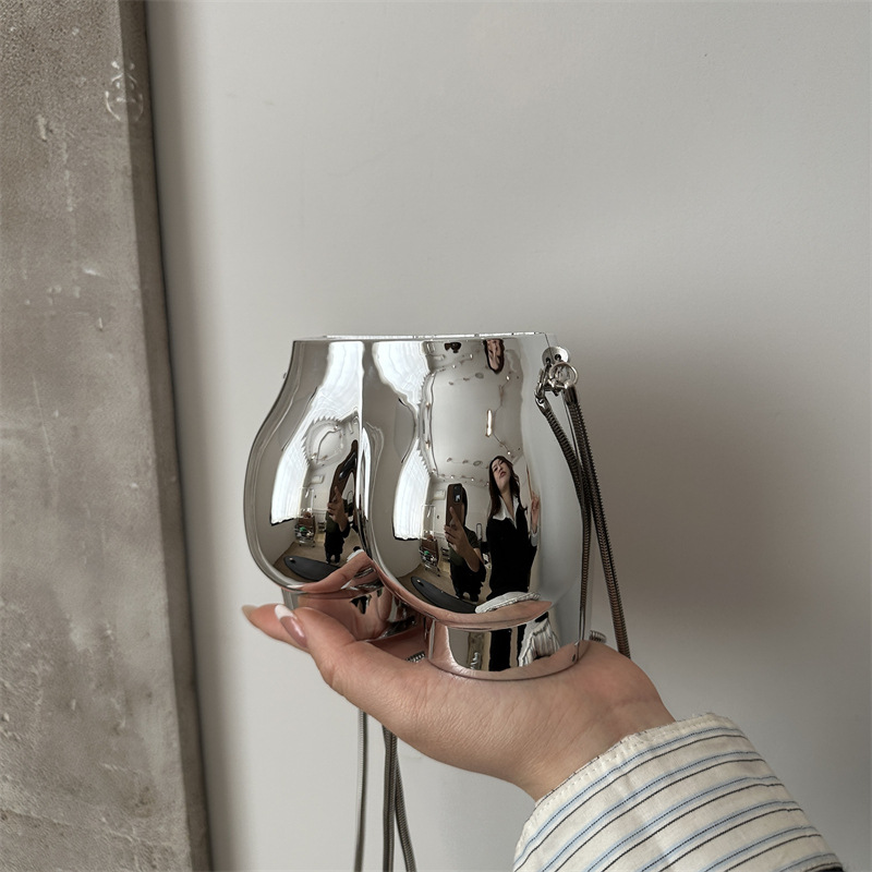 독특한 재미있는 엉덩이 금속 가방 여성의 2025 년 초가을 새로운 틈새 디자인 밝은 체인 크로스 바디 어깨 가방