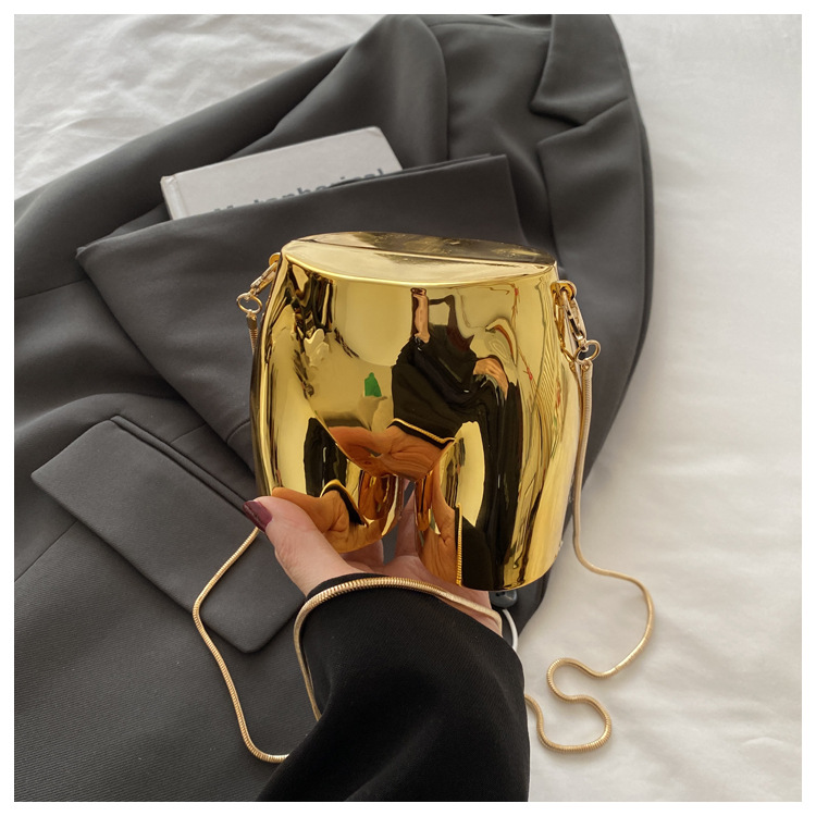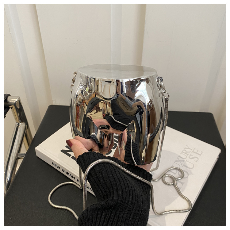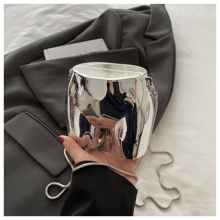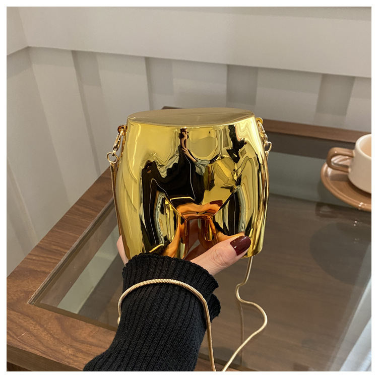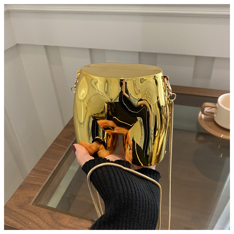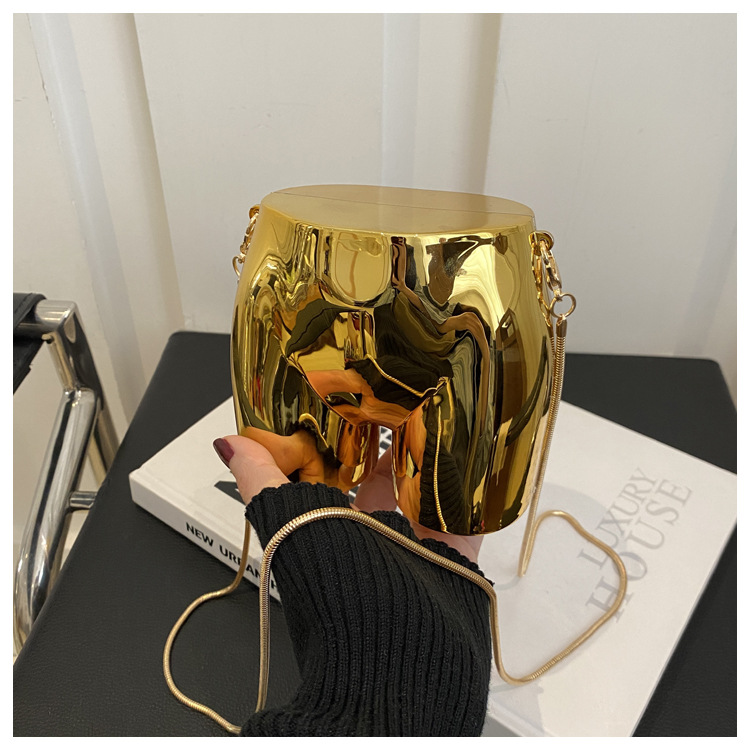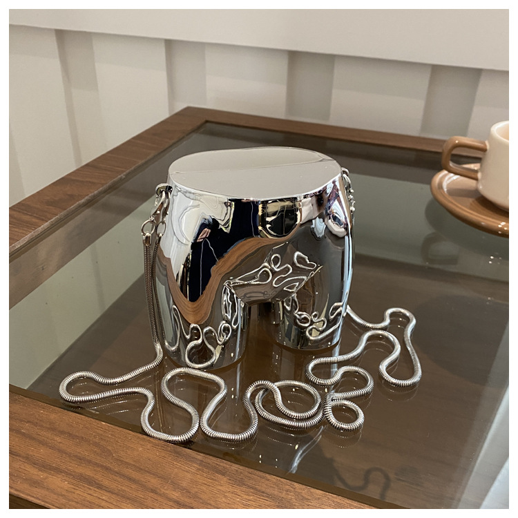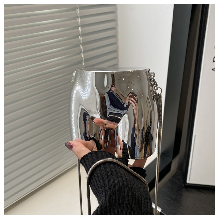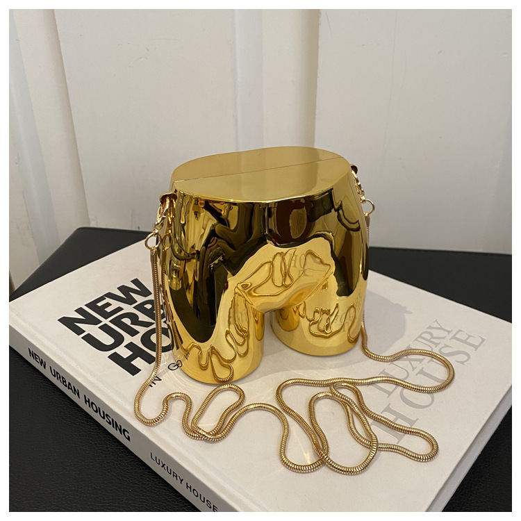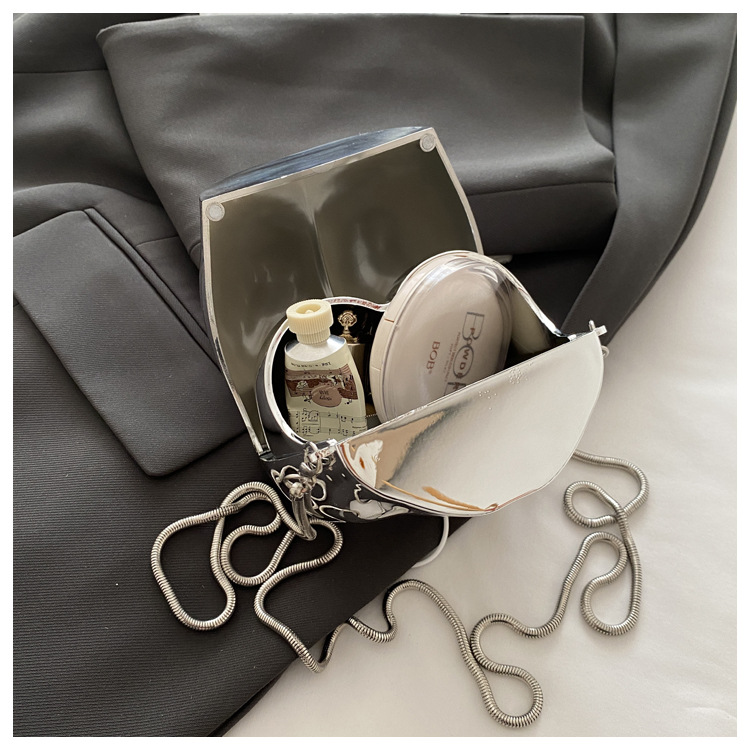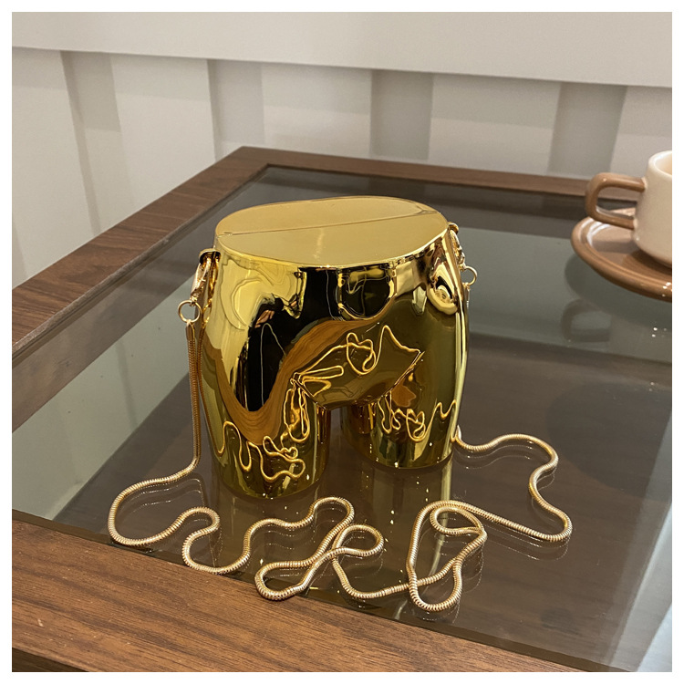 독특한 재미있는 엉덩이 금속 가방 여성의 2025 년 초가을 새로운 틈새 디자인 밝은 체인 크로스 바디 어깨 가방