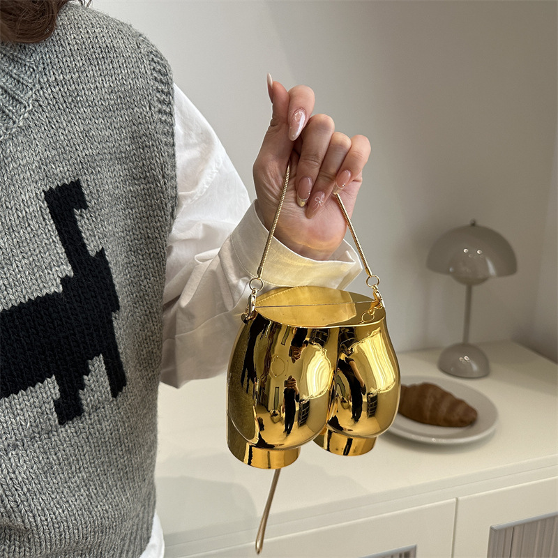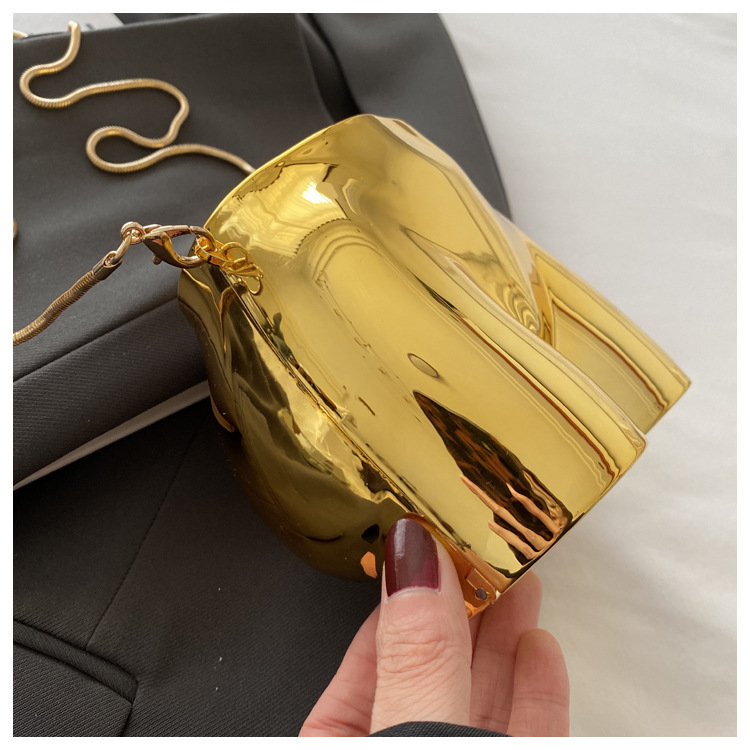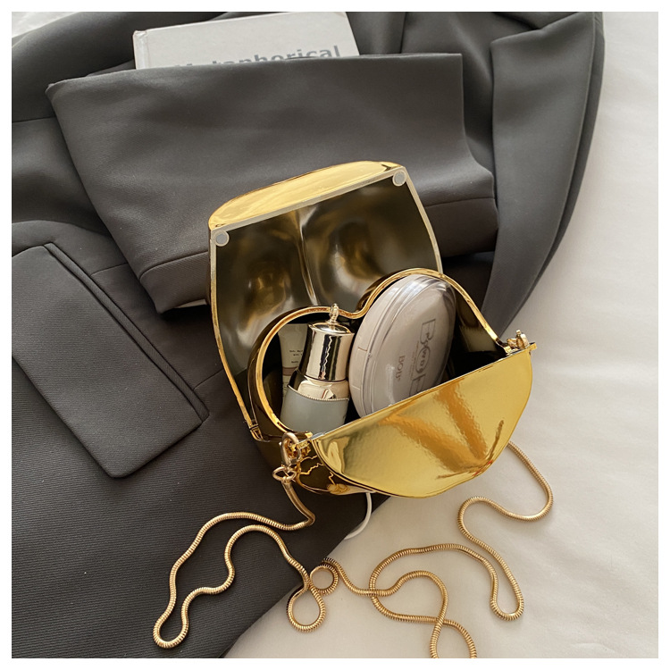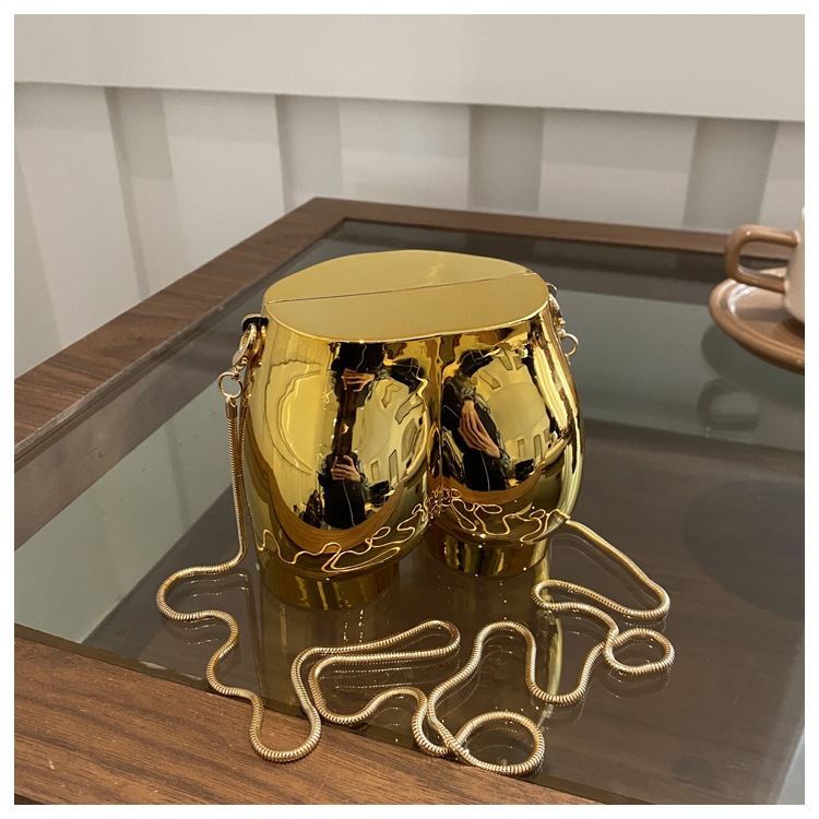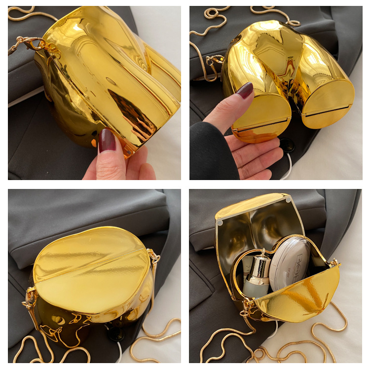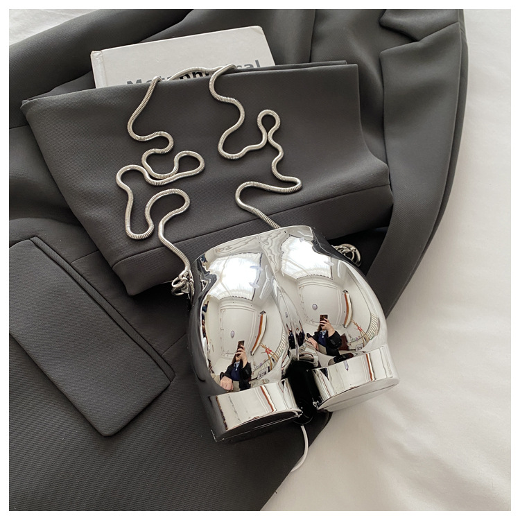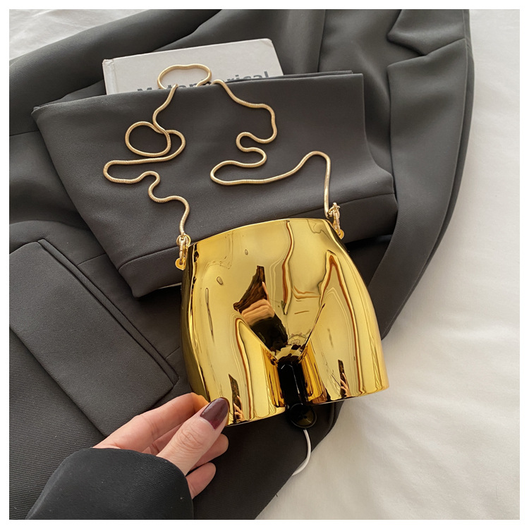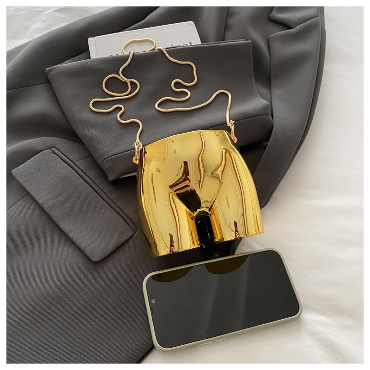 독특한 재미있는 엉덩이 금속 가방 여성의 2025 년 초가을 새로운 틈새 디자인 밝은 체인 크로스 바디 어깨 가방스토어 가기