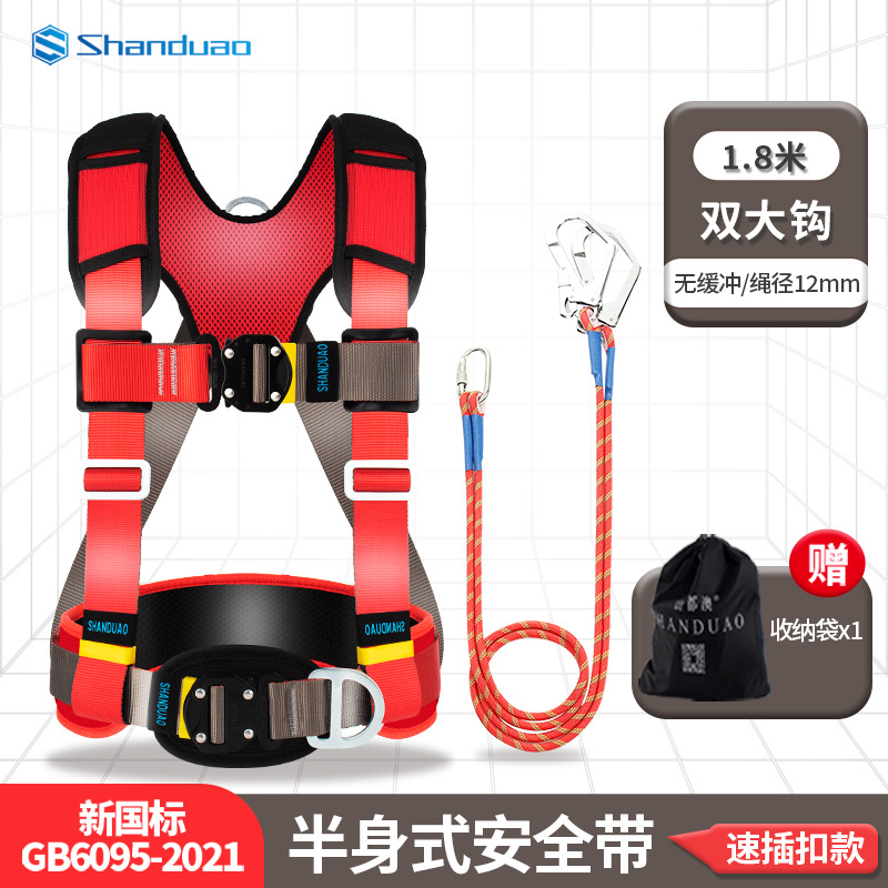 하프바디 고공 작업 안전벨트 야외 암벽등반 등산 안전벨트 안전로프 세트 추락방지 3점식