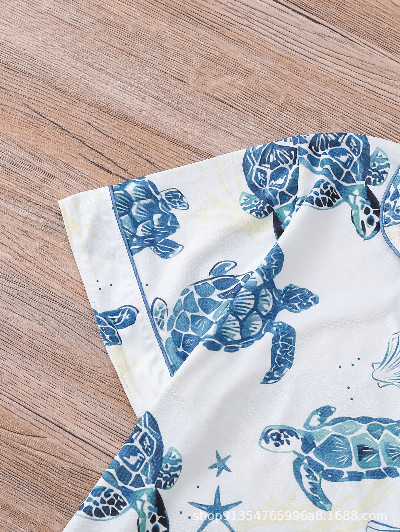국경 간 대외 무역 폭발 여성 잠옷 사계절 거북이 인쇄 된 옷깃 짧은 소매 반바지 유럽과 미국의 가정 의류 세트스토어 가기