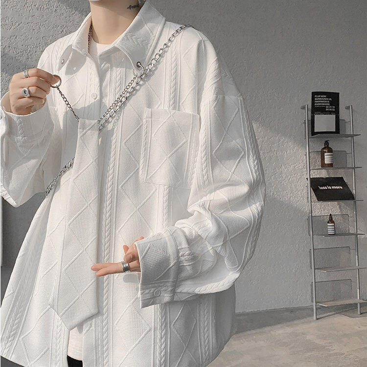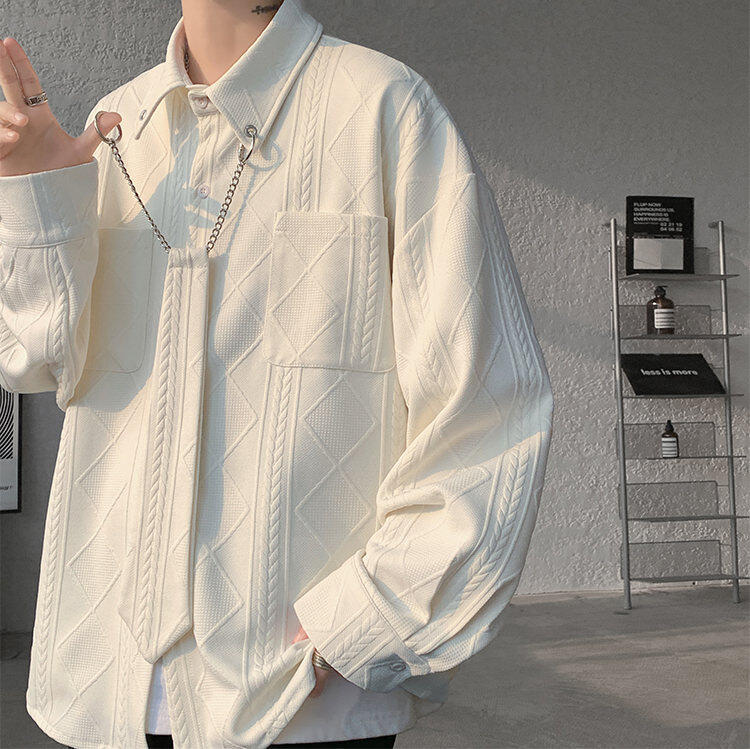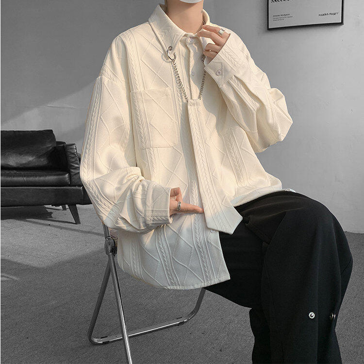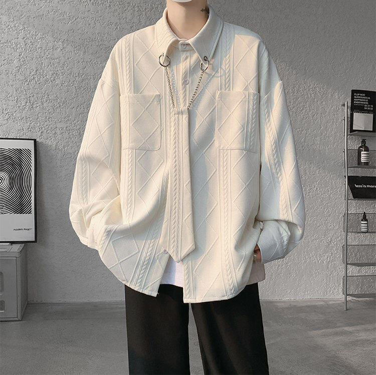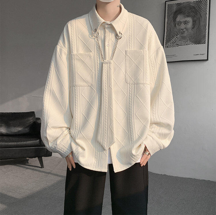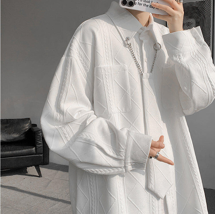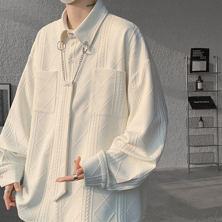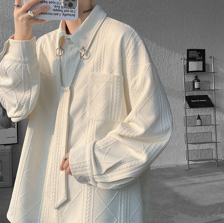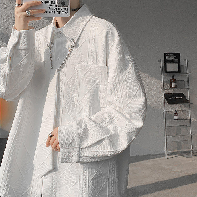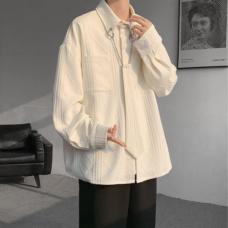 질감 있는 자카드 화이트 셔츠 남성용 긴팔 디자인 커플 하이엔드 핸섬 타이 셔츠 재킷