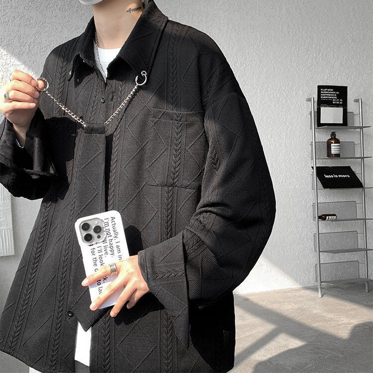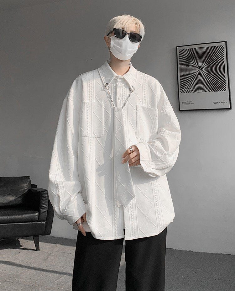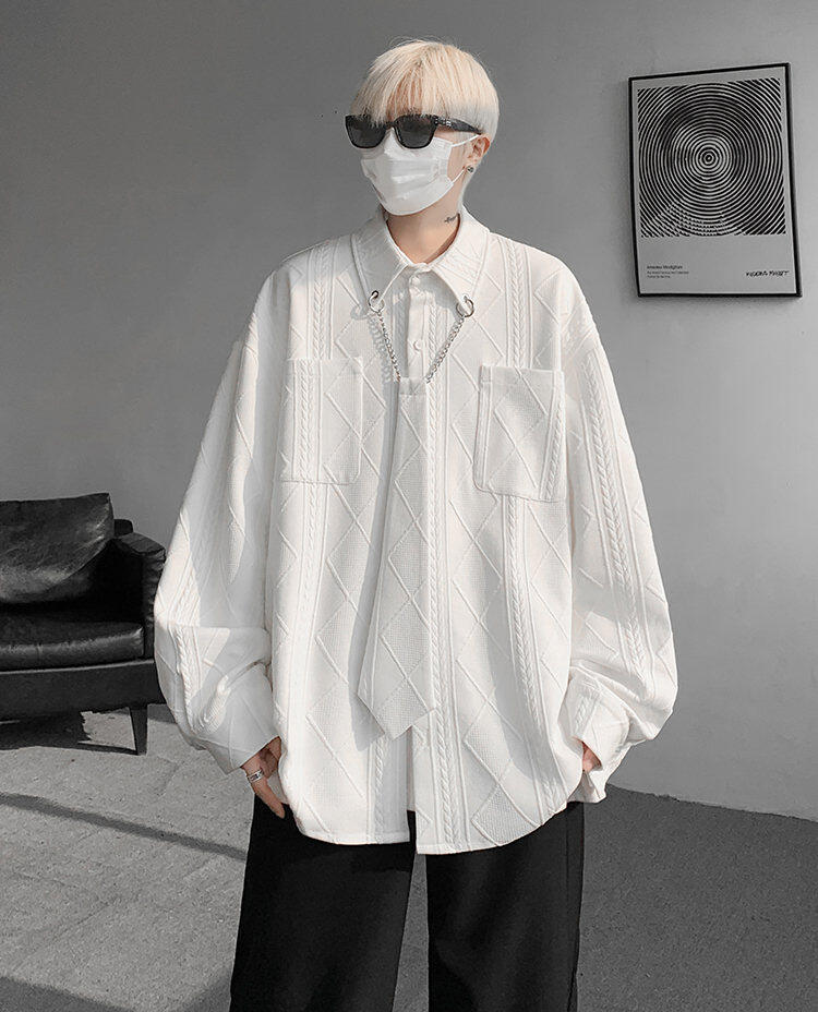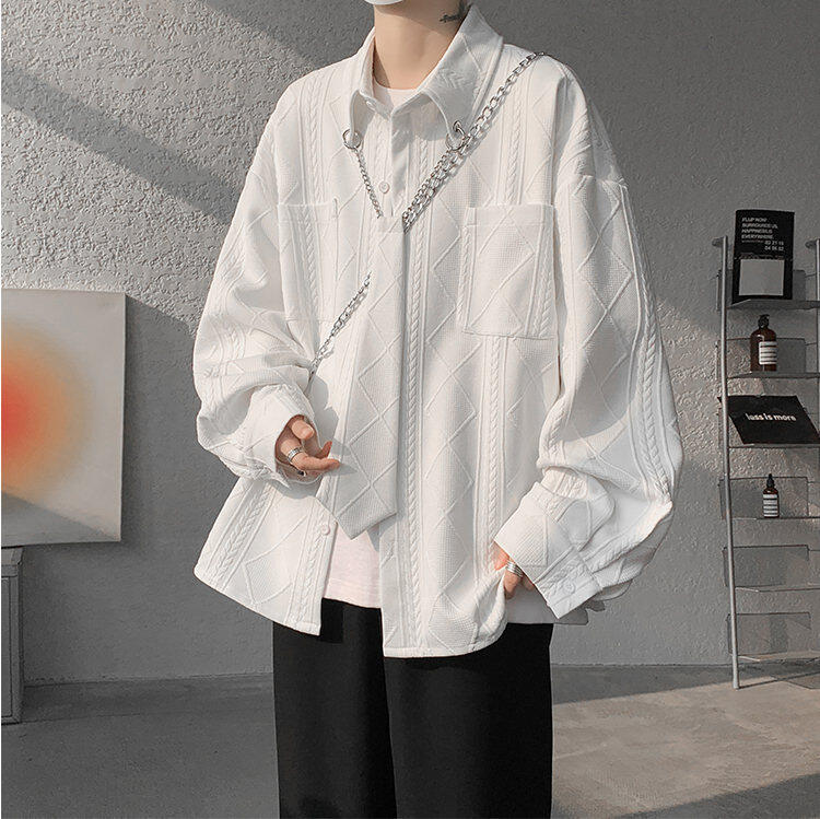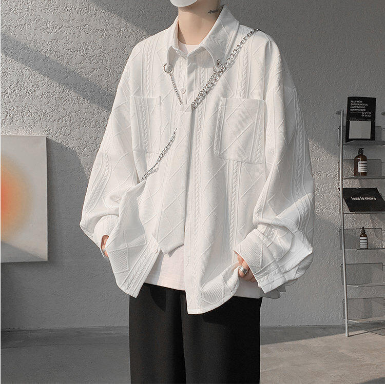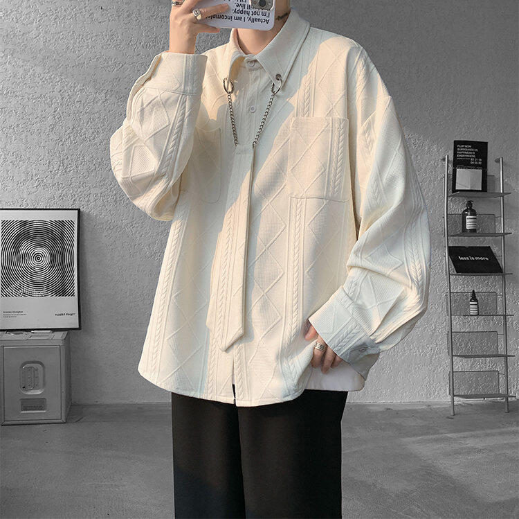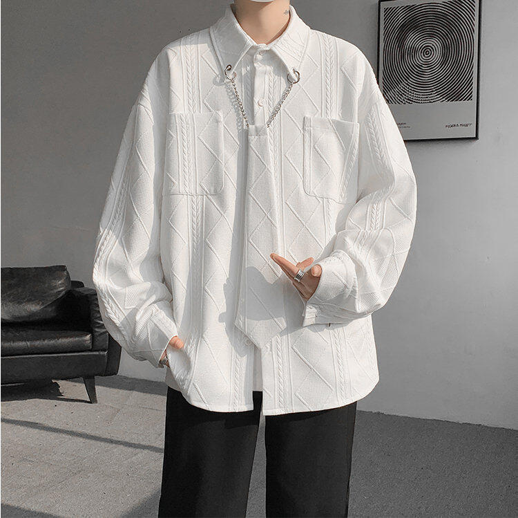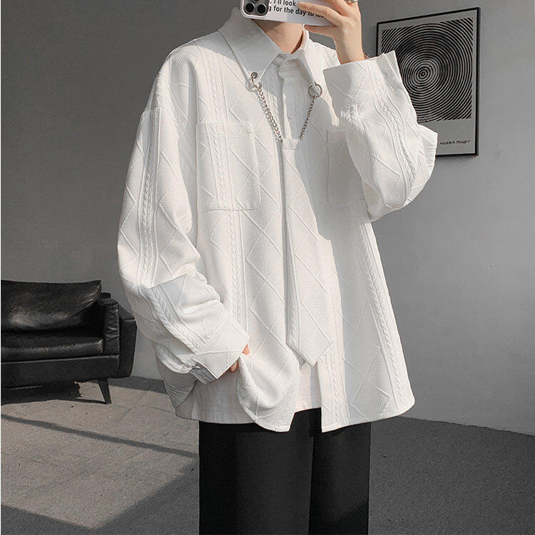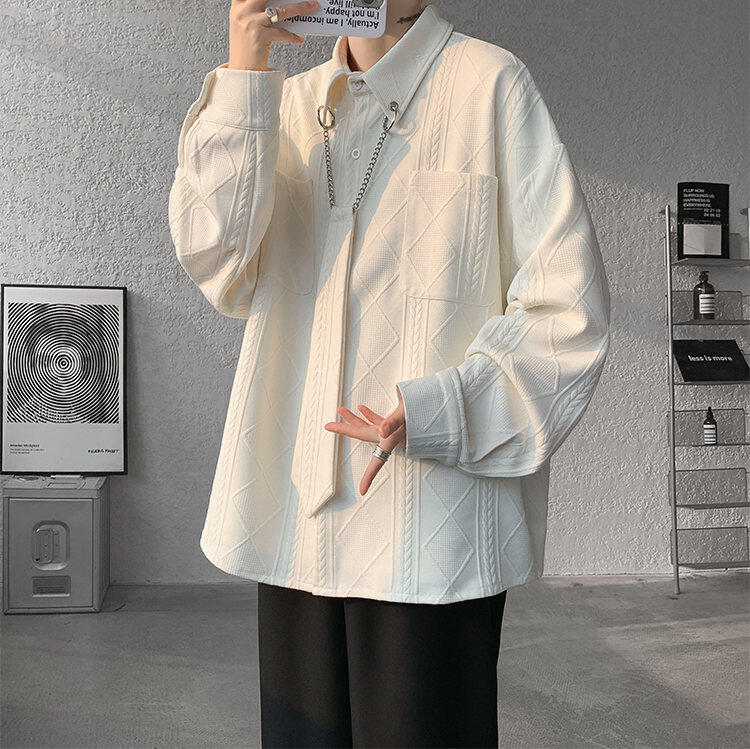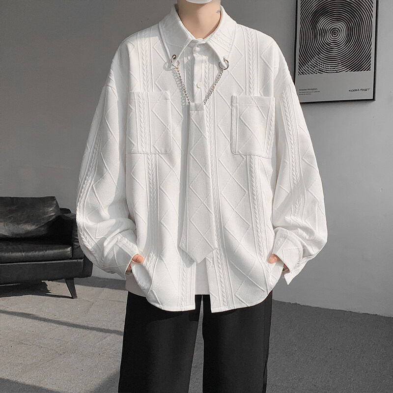 질감 있는 자카드 화이트 셔츠 남성용 긴팔 디자인 커플 하이엔드 핸섬 타이 셔츠 재킷