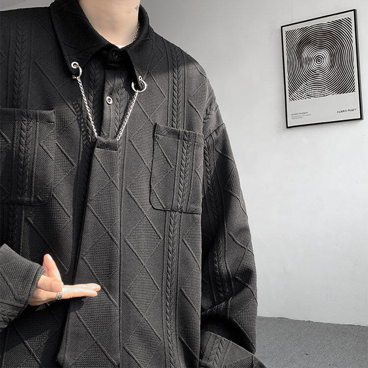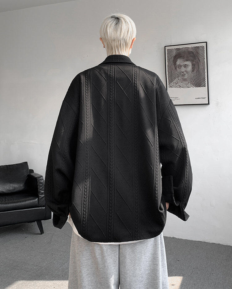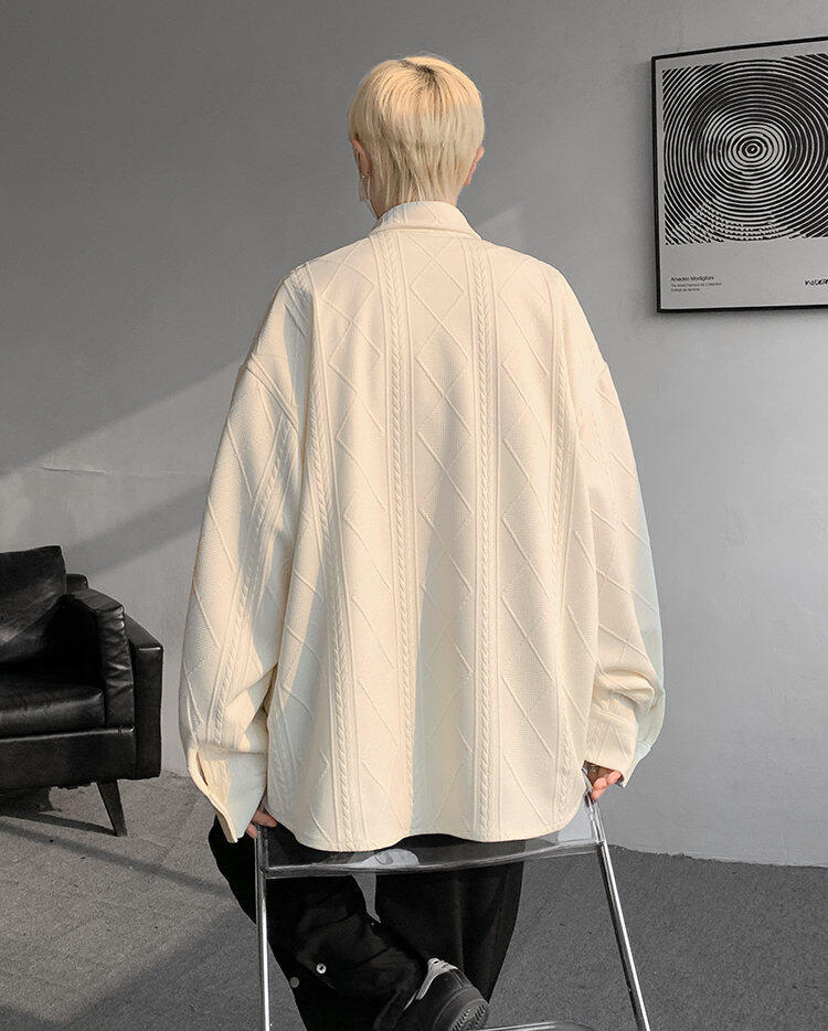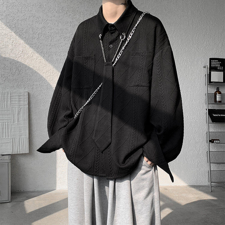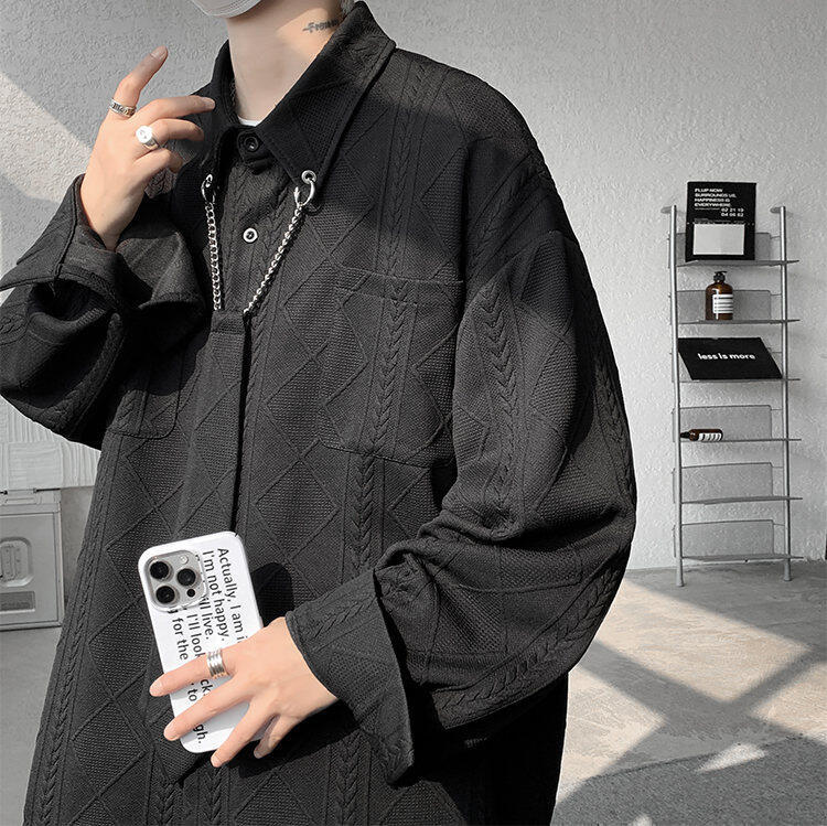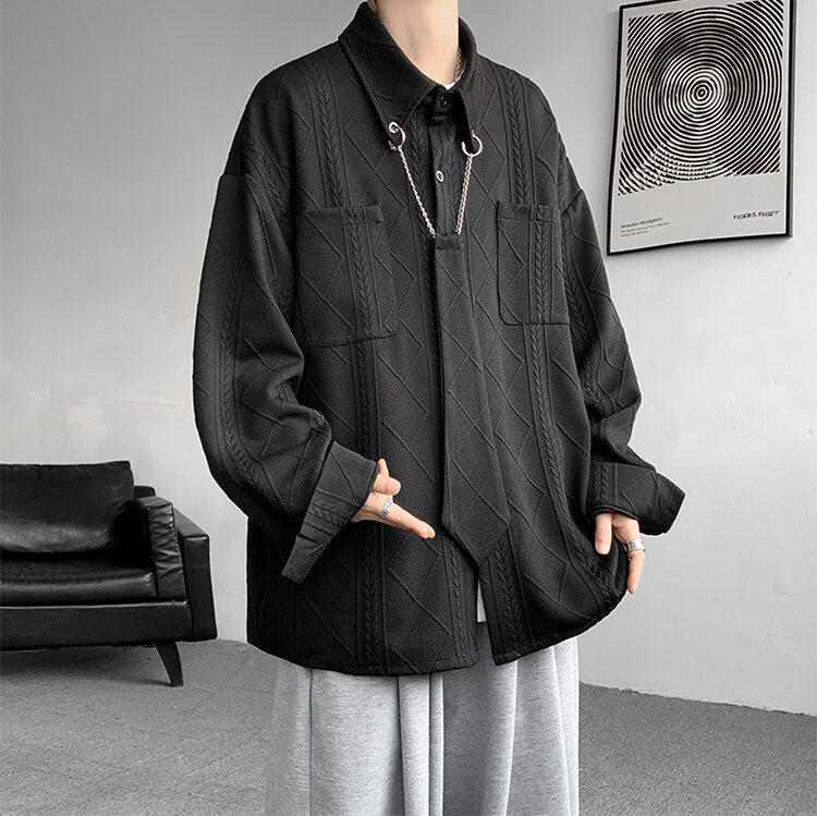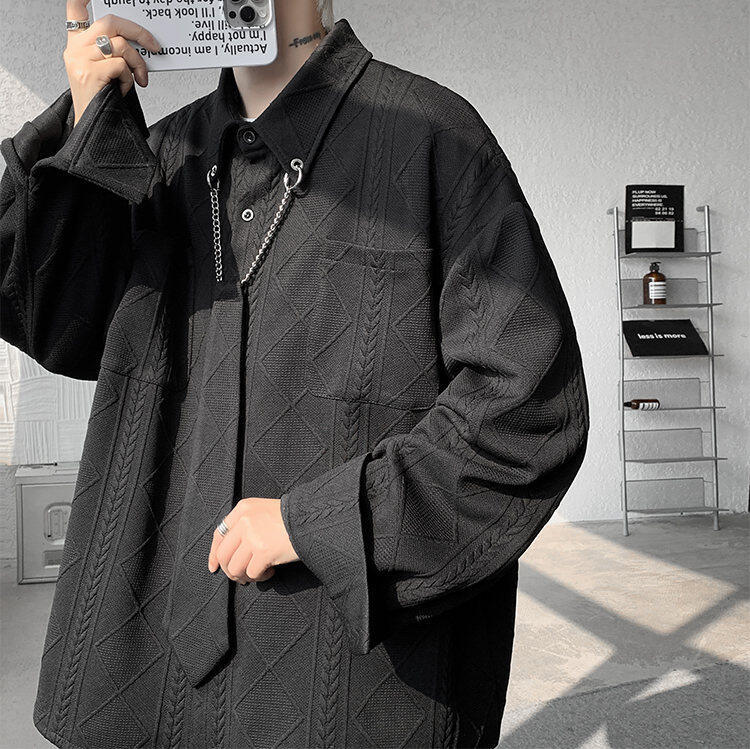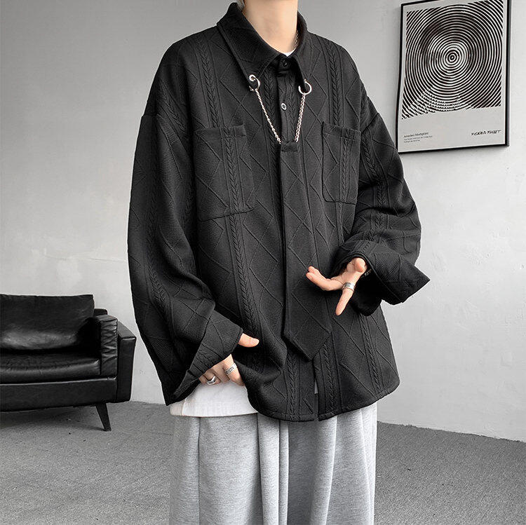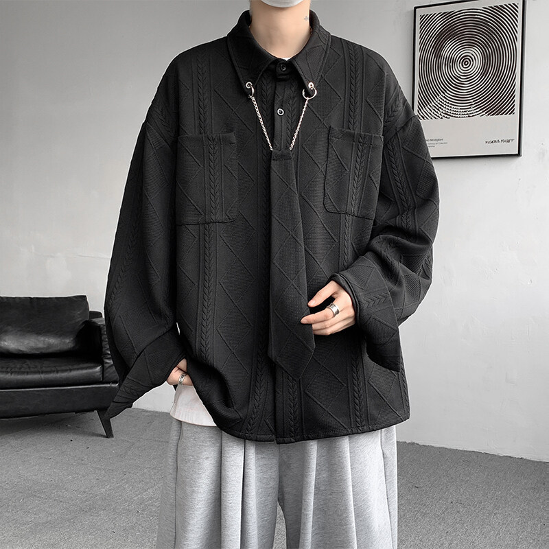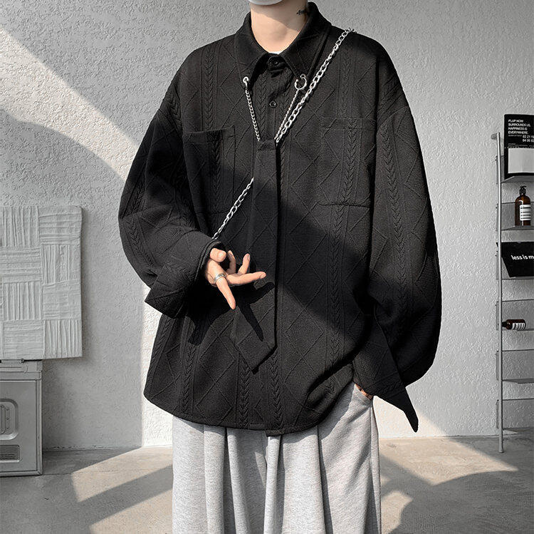 질감 있는 자카드 화이트 셔츠 남성용 긴팔 디자인 커플 하이엔드 핸섬 타이 셔츠 재킷