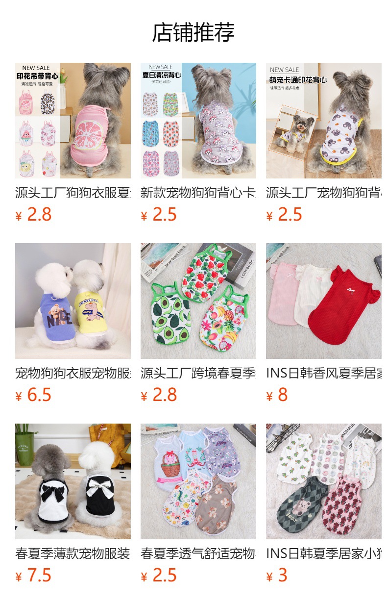 새로운 개와 고양이 귀여운 캐미솔 여름 얇은 시원한 조끼 Bichon Teddy Anti-Shedding Clothes스토어 가기