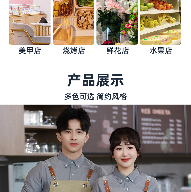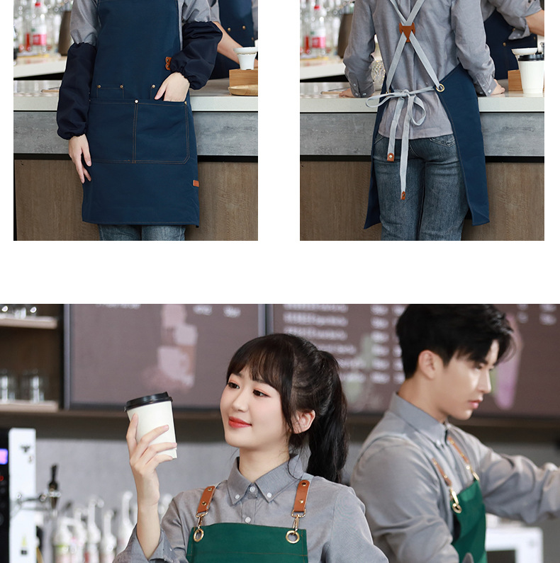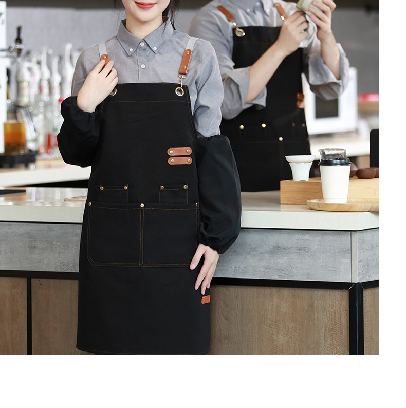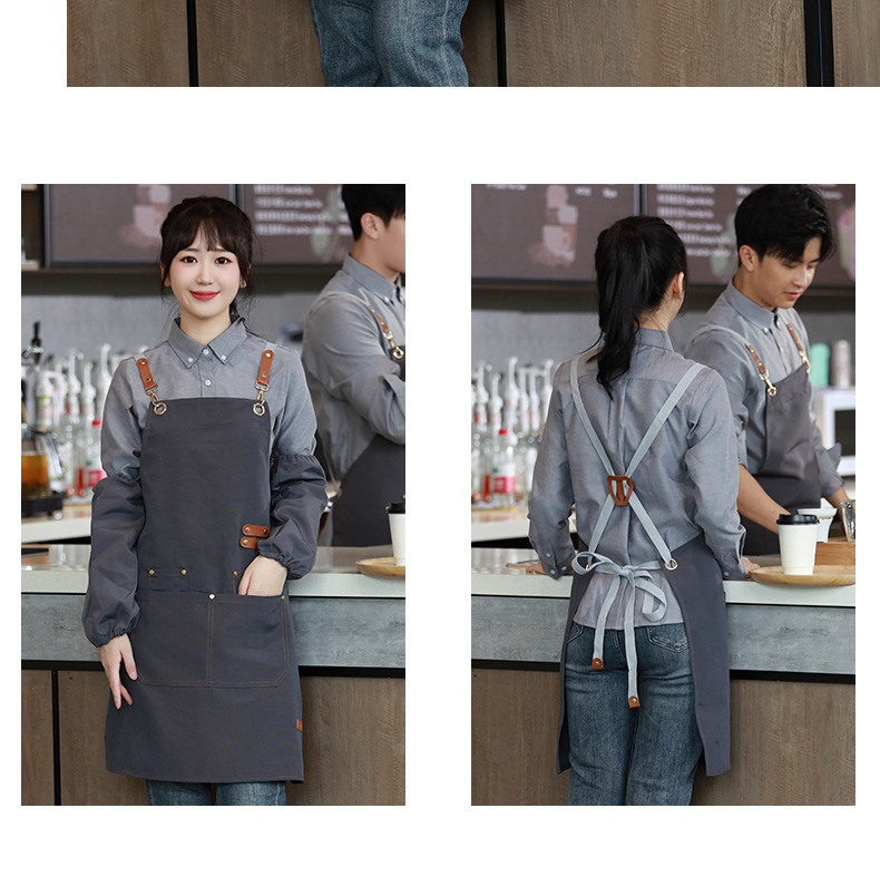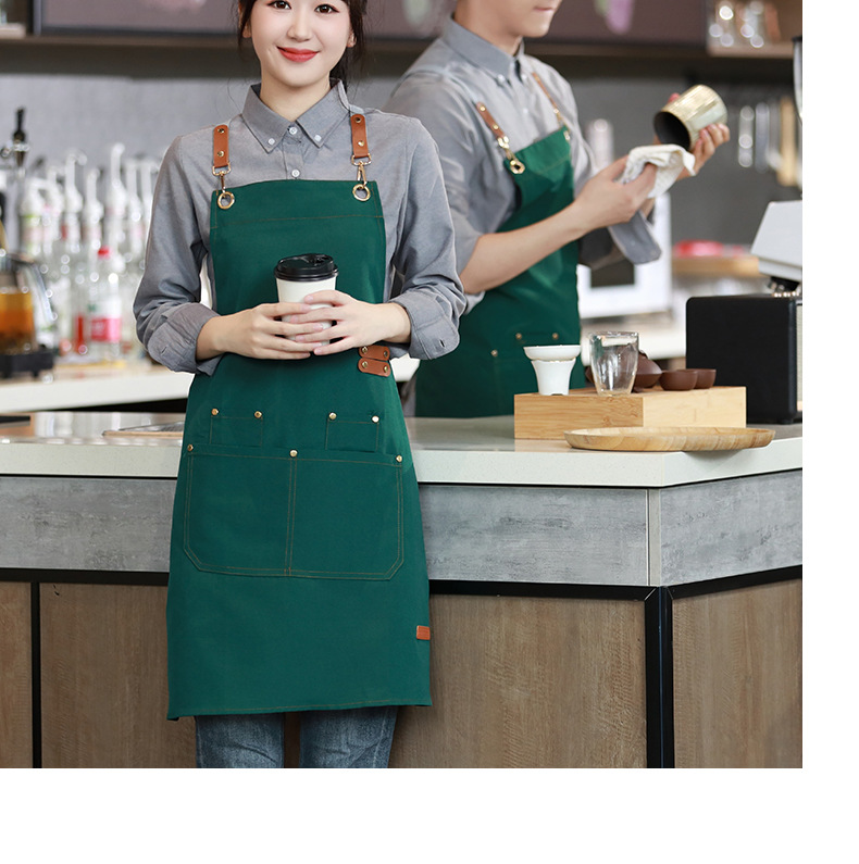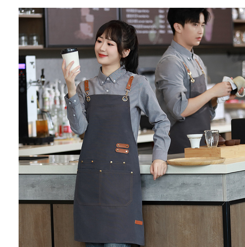 앞치마는 방수, 내유성, 먼지 방지, 도매 인쇄 로고, 국경 간 캔버스 조절 가능한 어깨 끈, 케이터링, 매니큐어, 패션 맞춤화스토어 가기