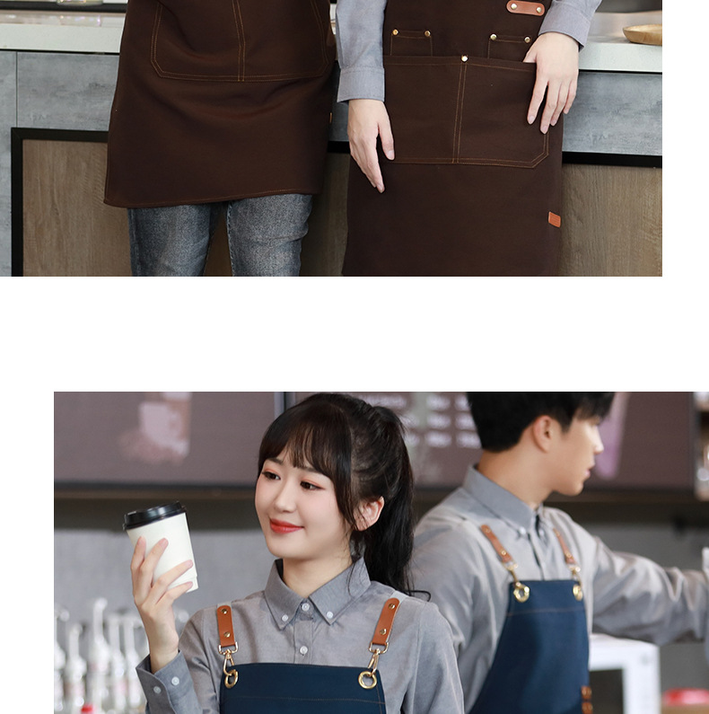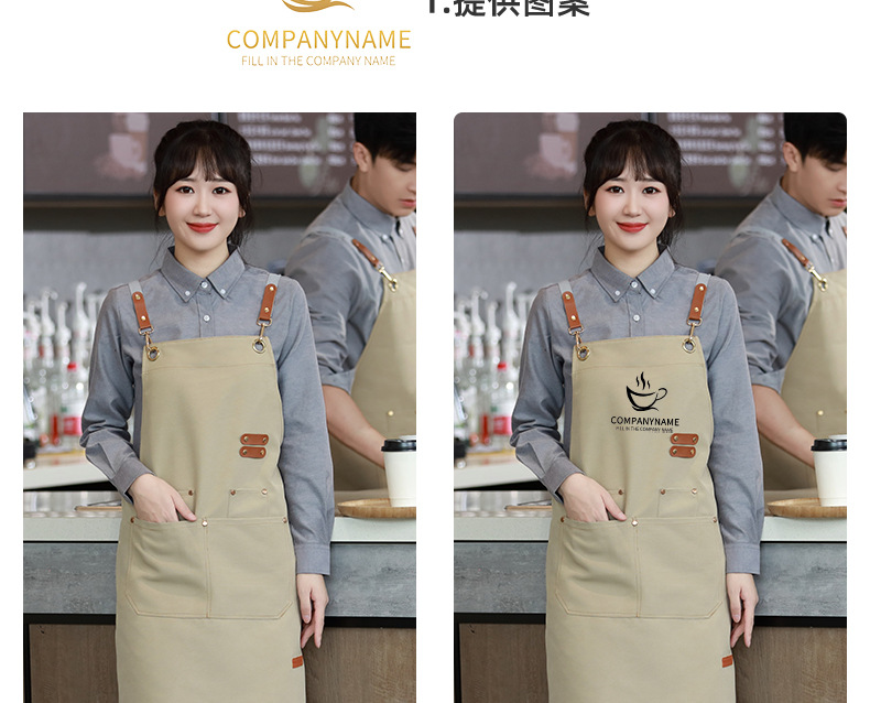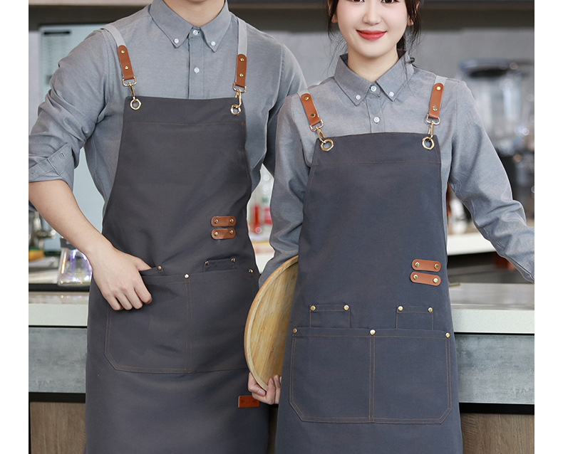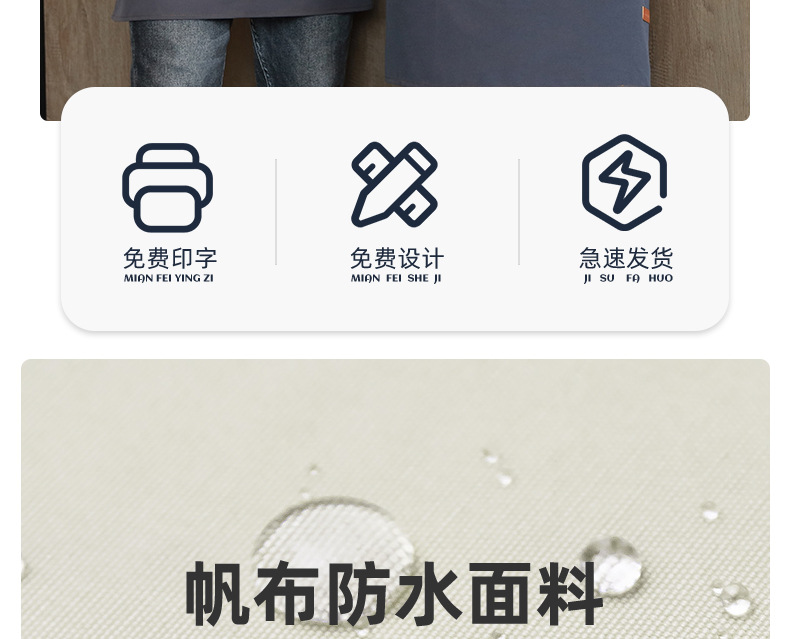 앞치마는 방수, 내유성, 먼지 방지, 도매 인쇄 로고, 국경 간 캔버스 조절 가능한 어깨 끈, 케이터링, 매니큐어, 패션 맞춤화