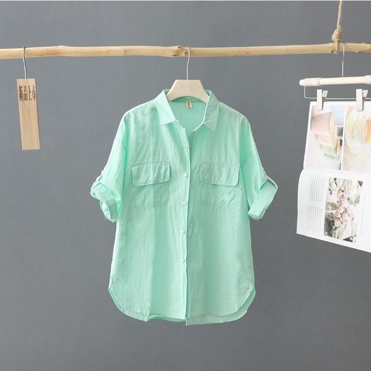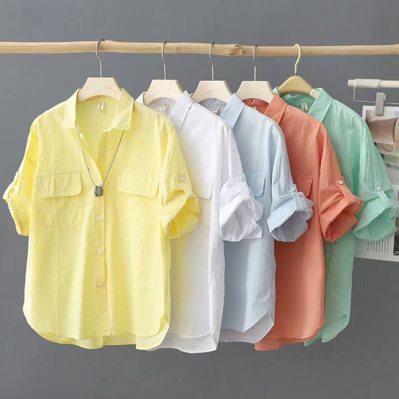 국경을 넘나드는 인기 여름 신상 셔츠 디자인 루즈 탑 반팔 중년 면 반팔 캐주얼 솔리드 컬러 셔츠스토어 가기