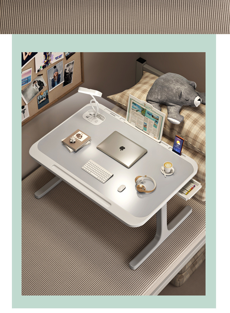 침대 접이식 작은 테이블 기숙사 학생 학습 테이블 램프 테이블 노트북 무제한 고속 충전 테이블 침실 테이블