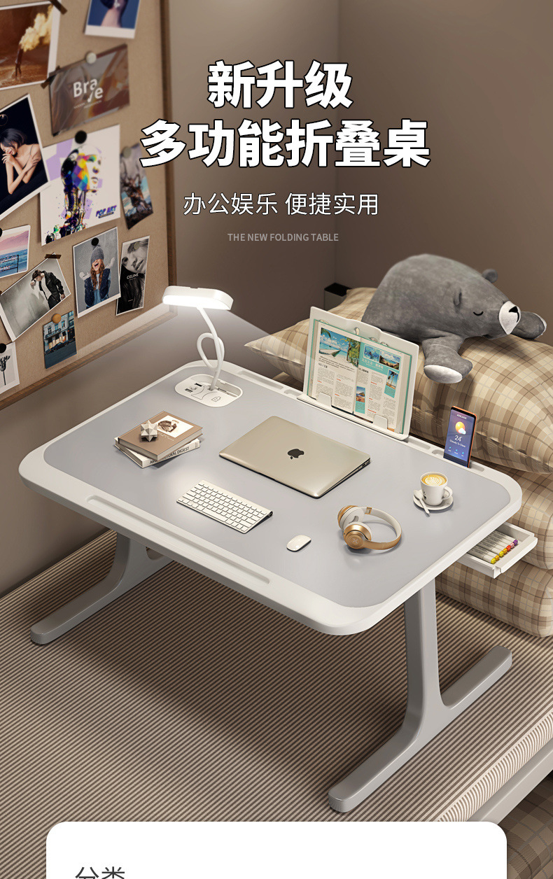 침대 접이식 작은 테이블 기숙사 학생 학습 테이블 램프 테이블 노트북 무제한 고속 충전 테이블 침실 테이블스토어 가기