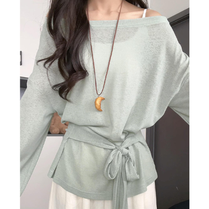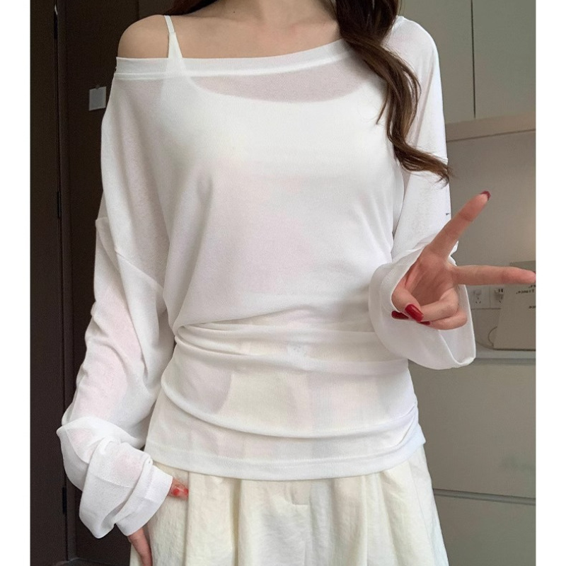 여름 여성을 위한 한국식 레이지 스타일 스트랩 허리 긴팔 티셔츠 얇은 자외선 차단 블라우스 디자인 긴팔 탑 트렌디스토어 가기