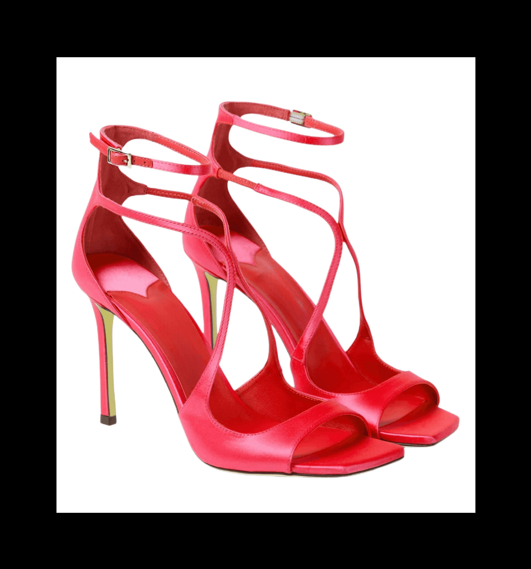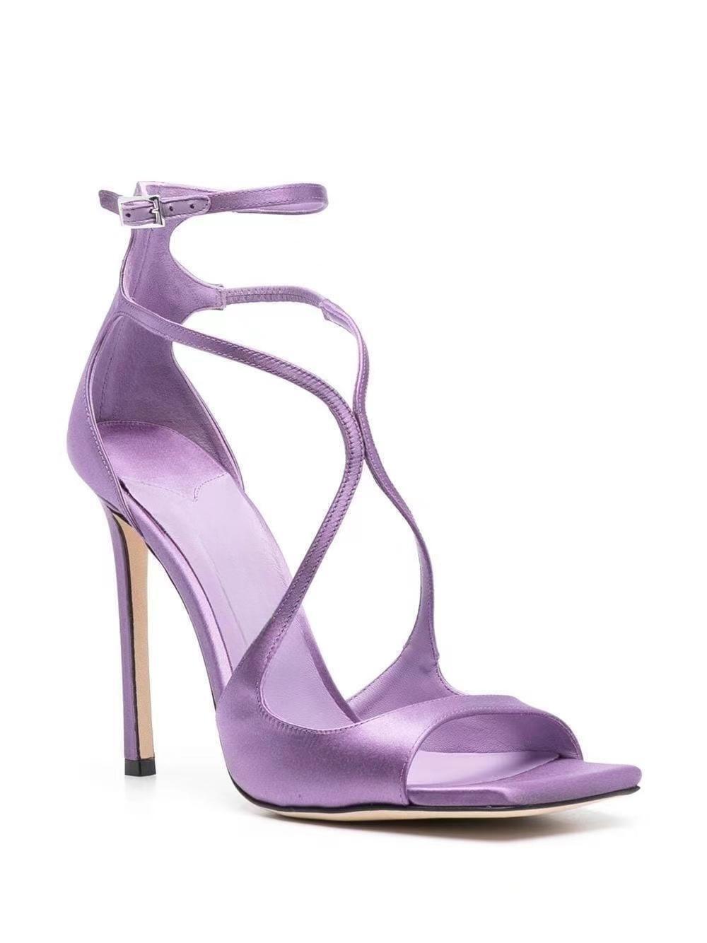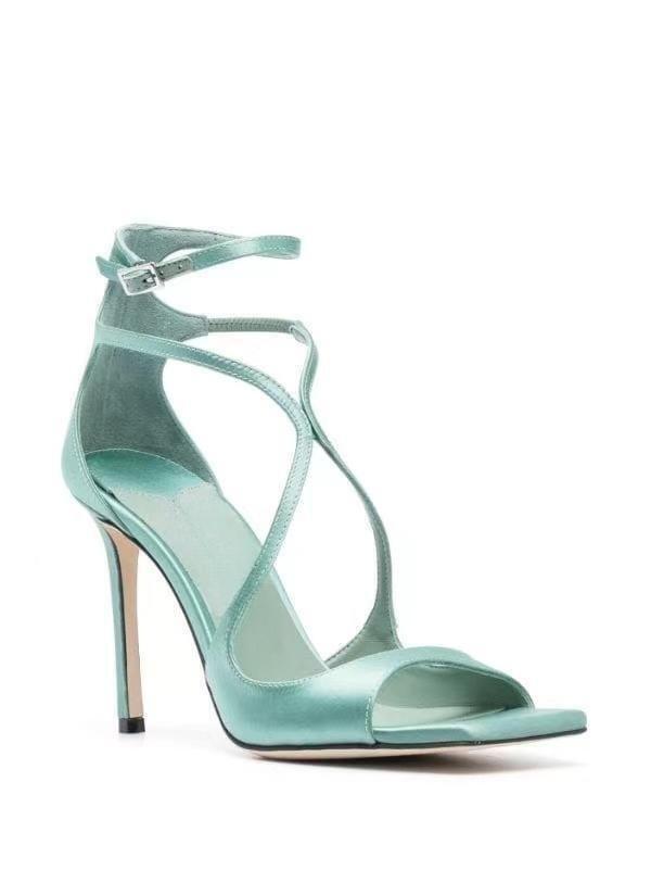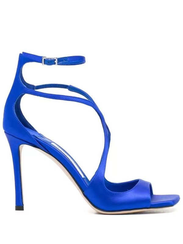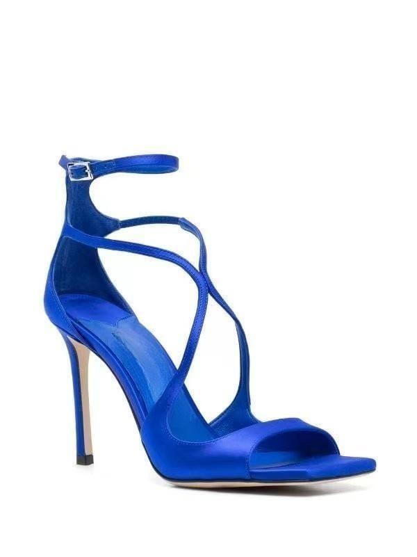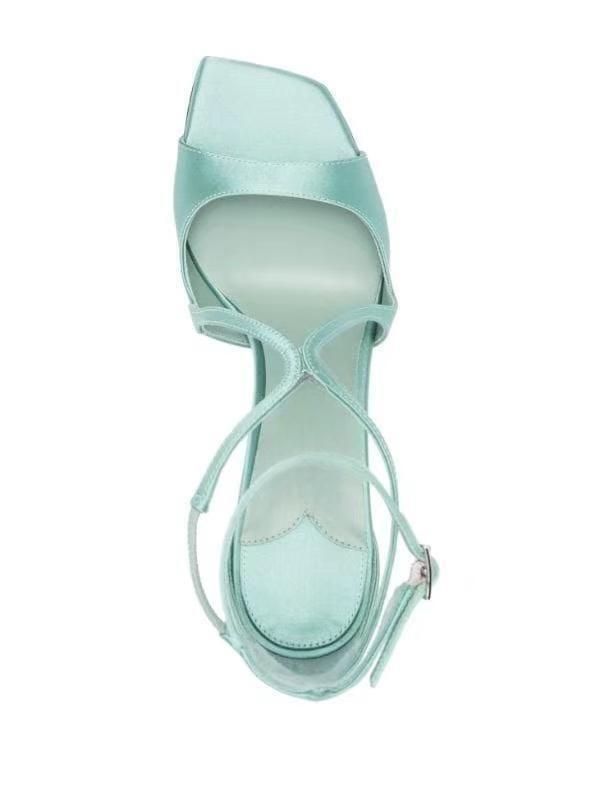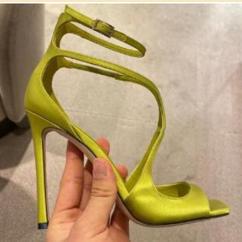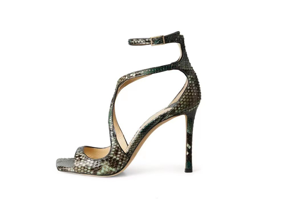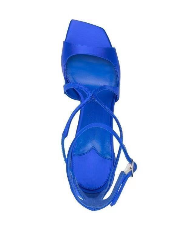 2023 여름 대외 무역 새로운 사각형 머리 물고기 입 하이힐 크로스 스트랩 하이힐 플러스 사이즈 속이 빈 섹시한 샌들