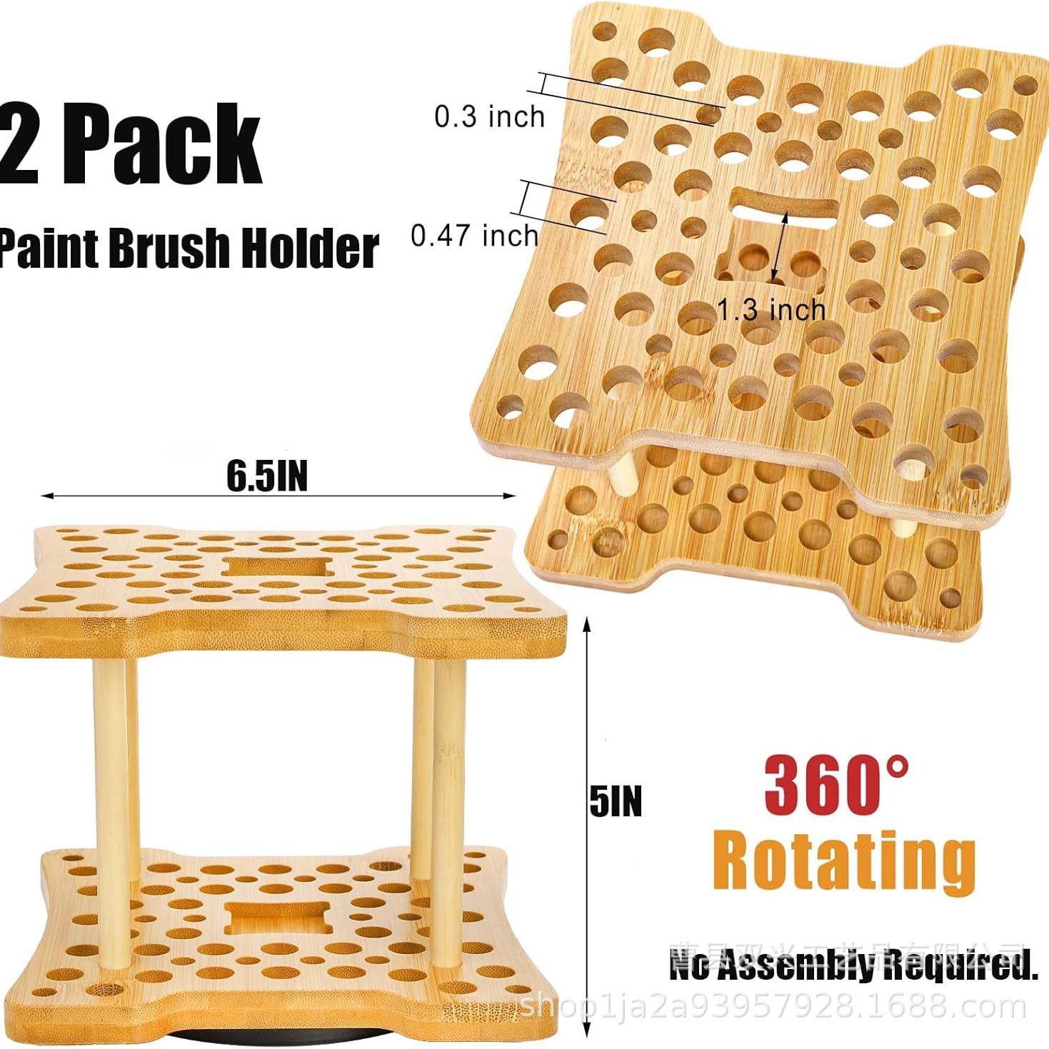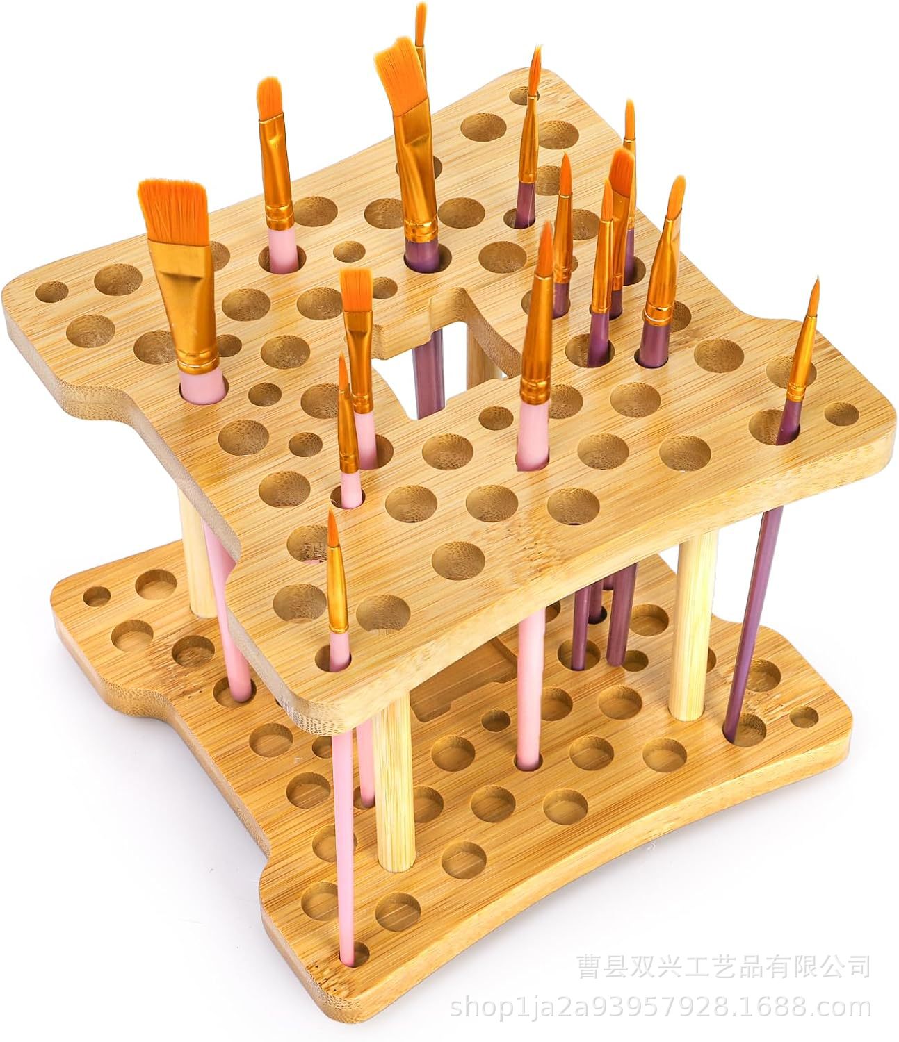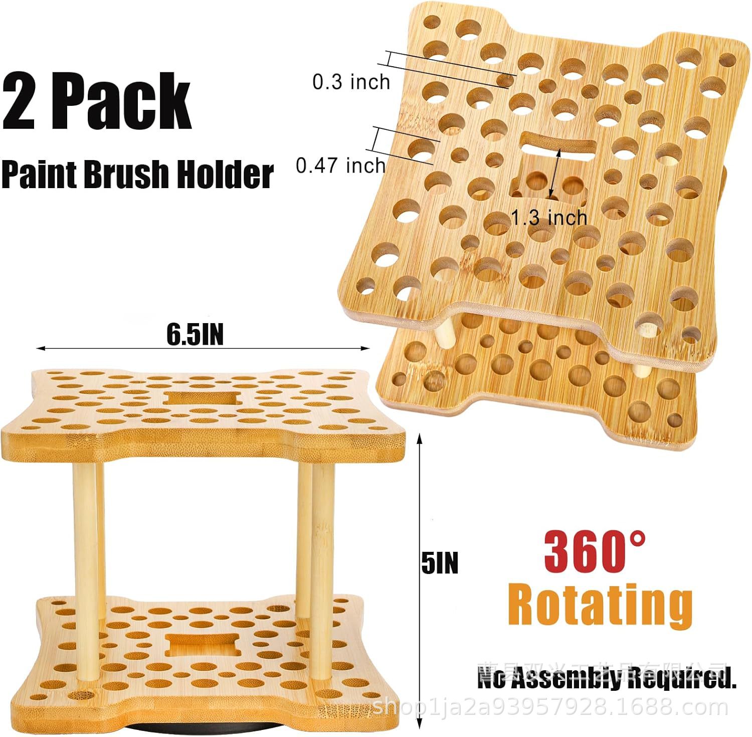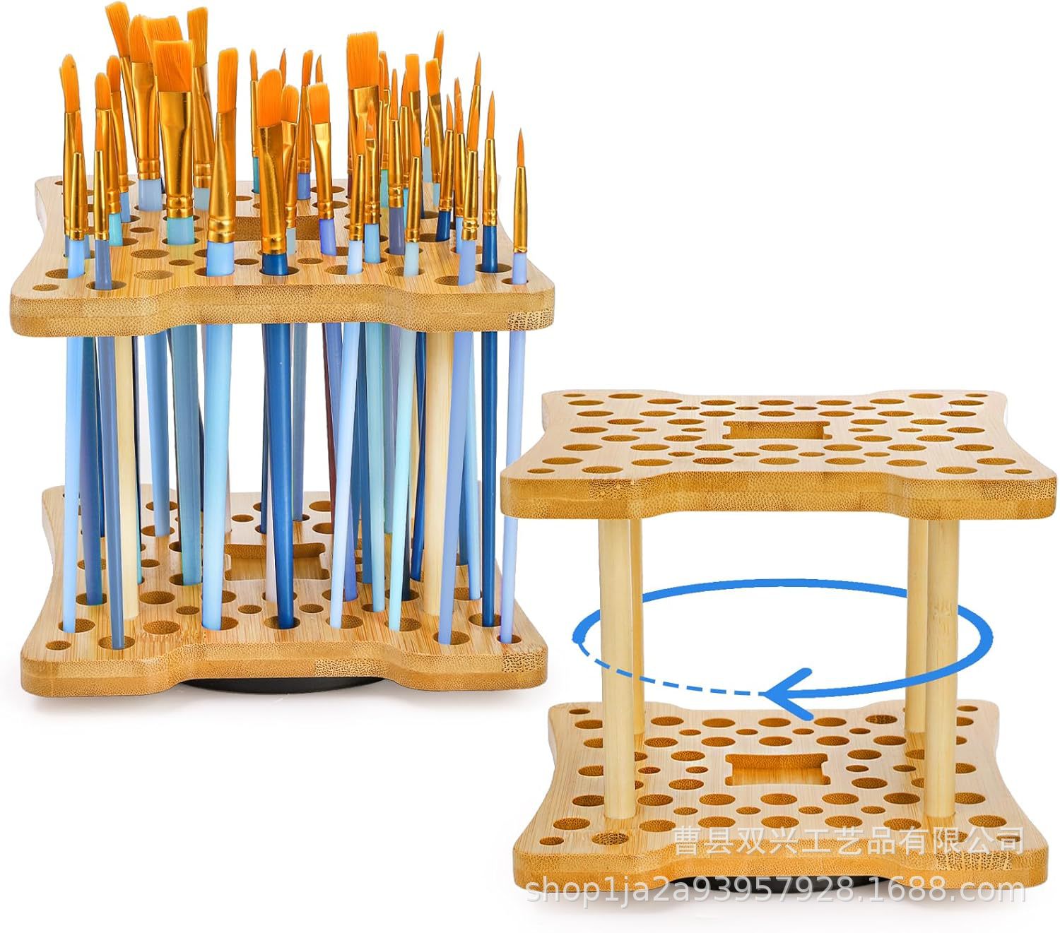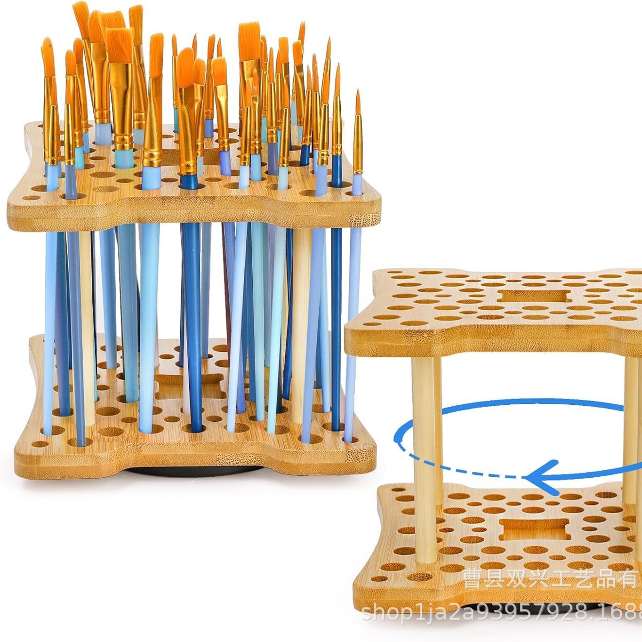 나무 다공성 회전 게임 브러시 랙 대나무 브러시 보관 랙 데스크탑 회전식 컬러 펜 보관 디스플레이 랙스토어 가기