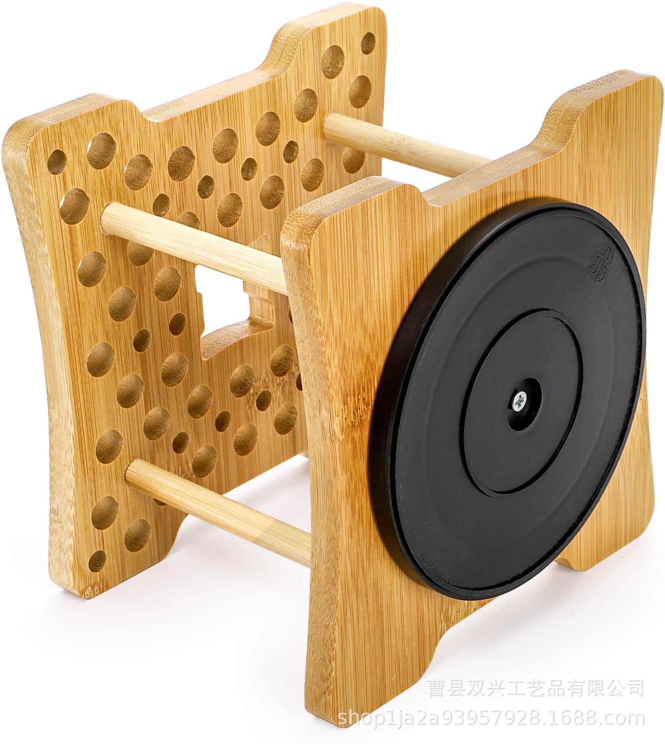 나무 다공성 회전 게임 브러시 랙 대나무 브러시 보관 랙 데스크탑 회전식 컬러 펜 보관 디스플레이 랙