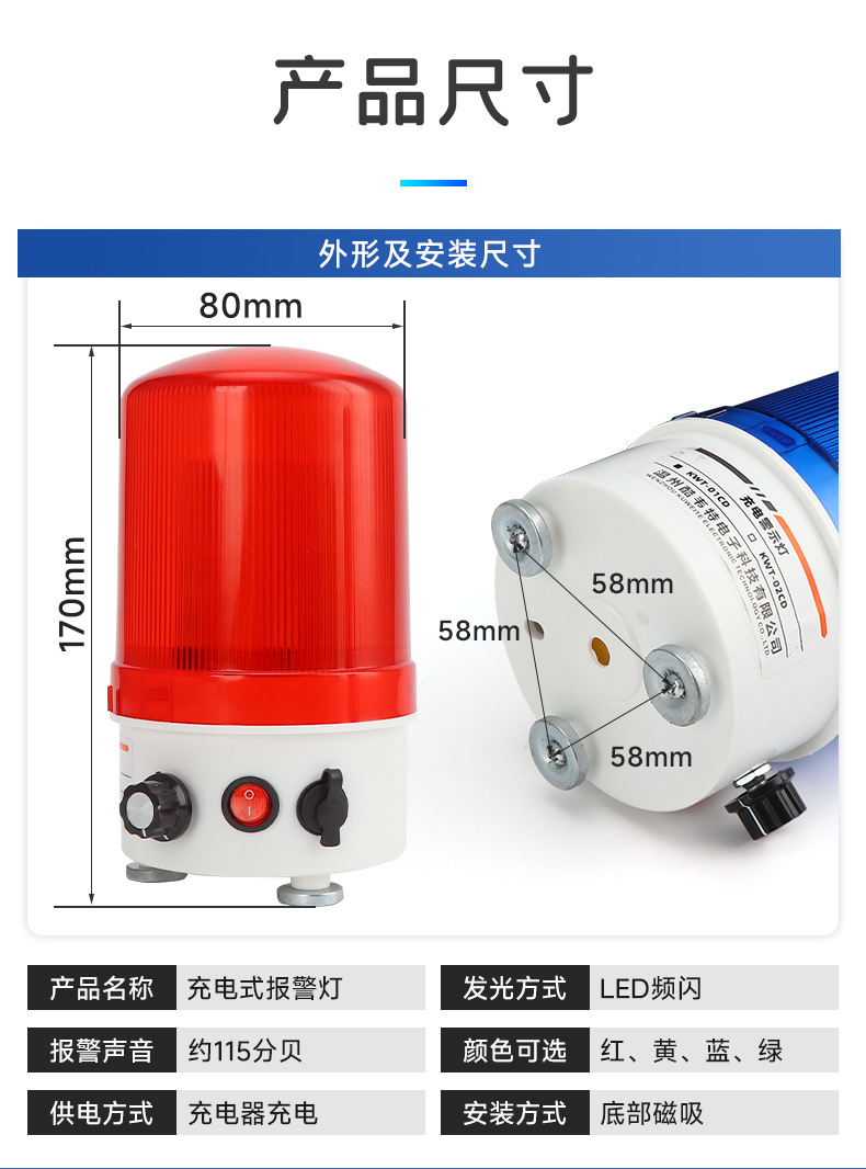 충전식 경고 플래시 라이트 자기 흡입 소리 및 빛 경보 배터리 자동차 깜박이는 빛 경고등 지능형 충돌 방지