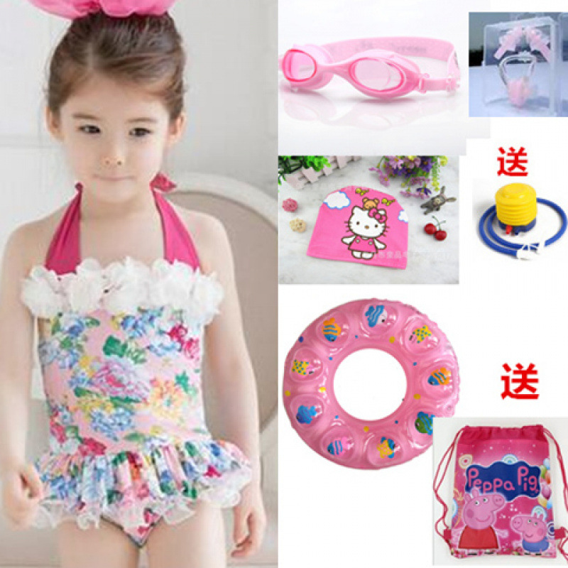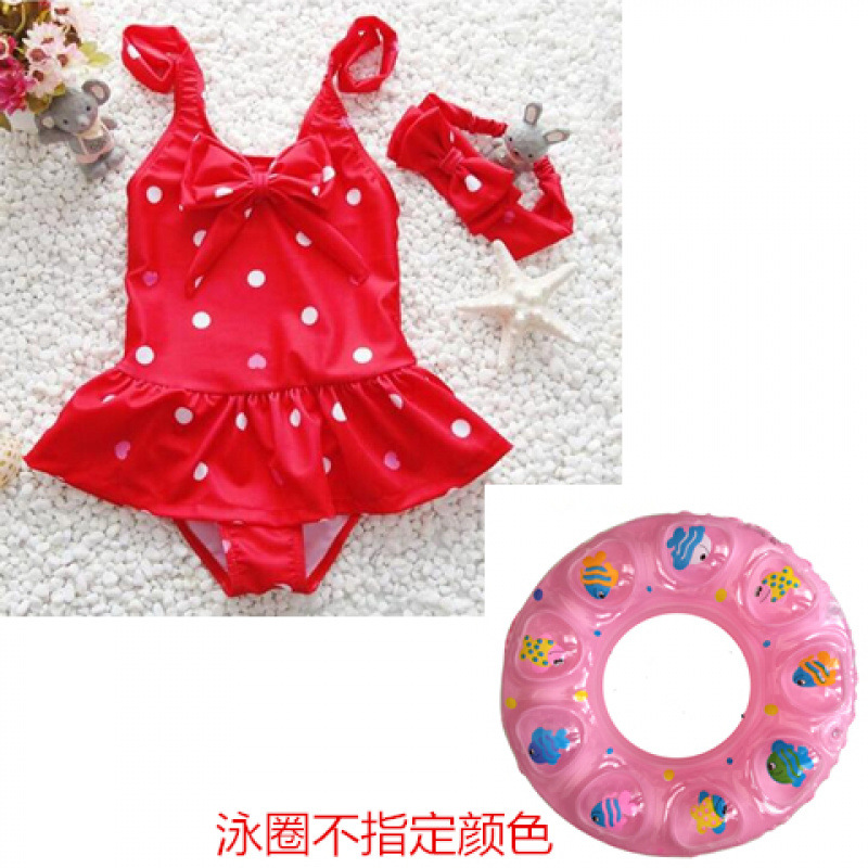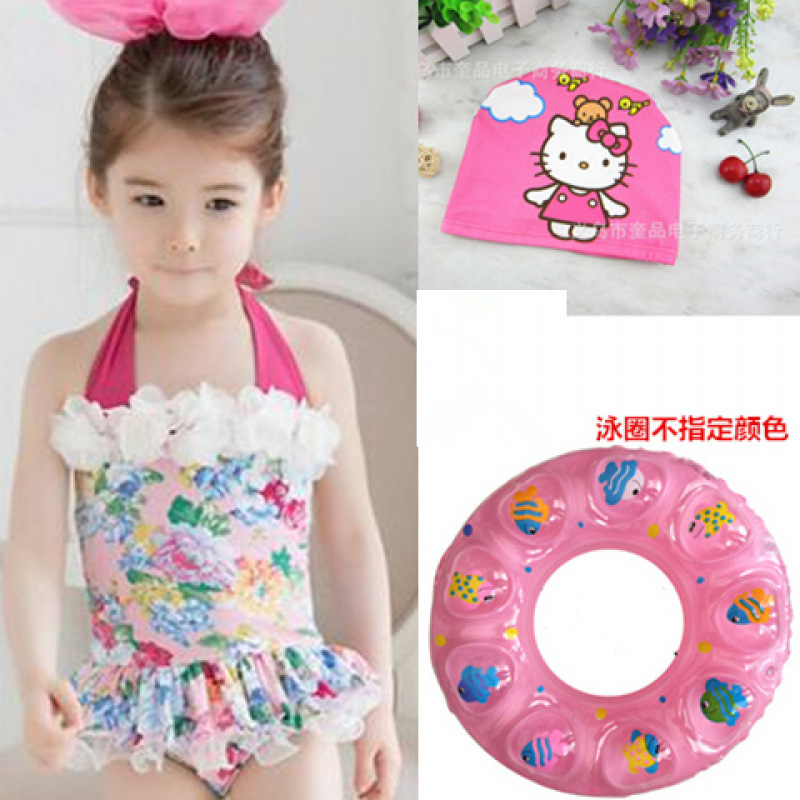 • 작은 빨간 꽃 수영복 + 수영 모자 + 수영 반지