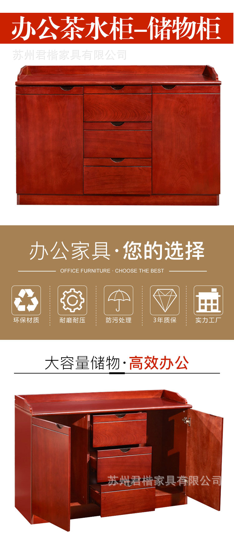 차 수납장, 페인트칠한 목재 베니어판, 2도어/3도어 낮은 수납장, 사무실 및 회의실용 사무용 수납장