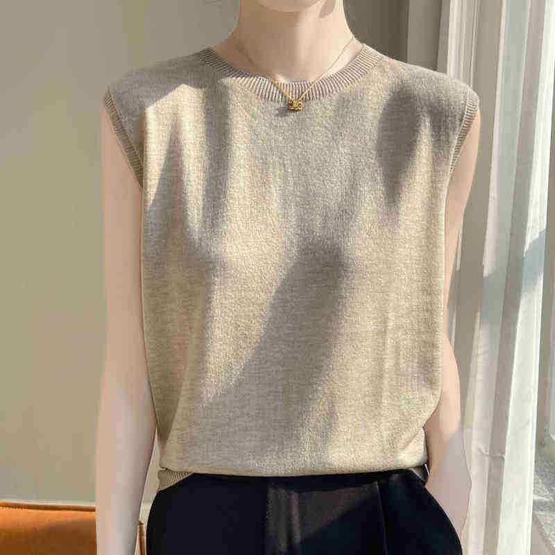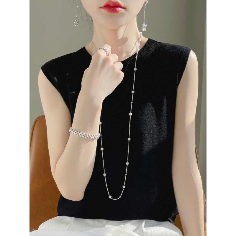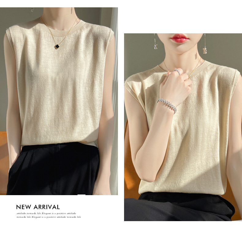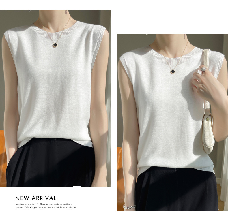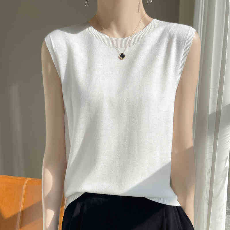 여성의 흰색 민소매 라운드 넥 조끼 2025 여름 새로운 조끼 짧은 소매 여성용 니트 셔츠스토어 가기