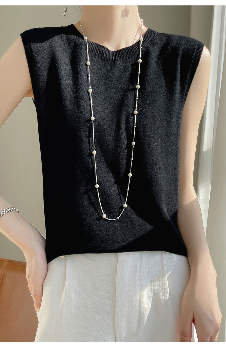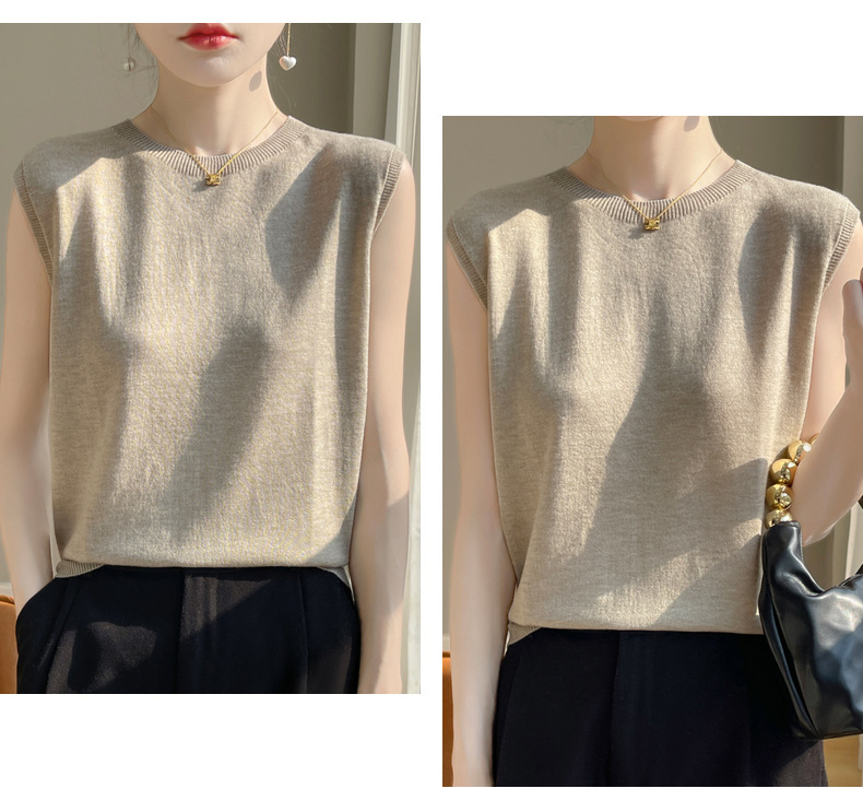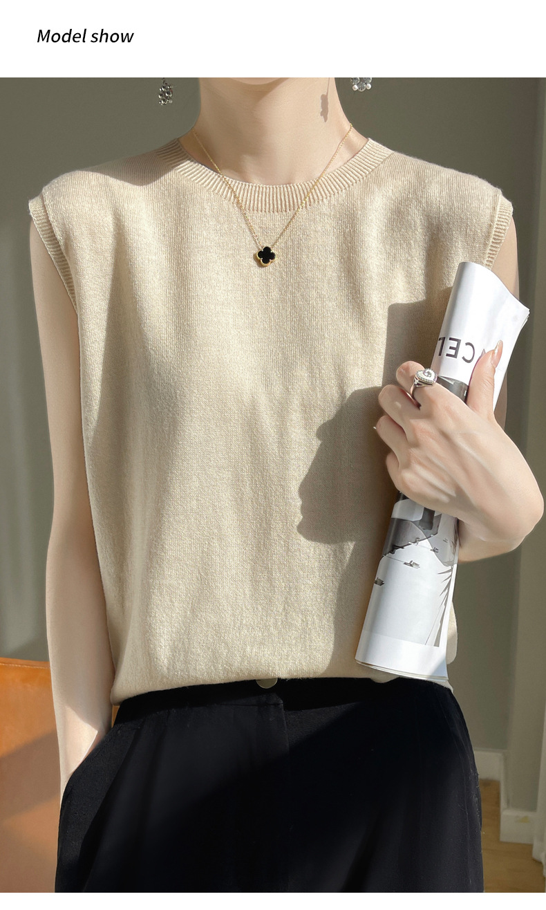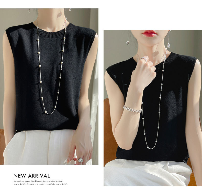 여성의 흰색 민소매 라운드 넥 조끼 2025 여름 새로운 조끼 짧은 소매 여성용 니트 셔츠스토어 가기