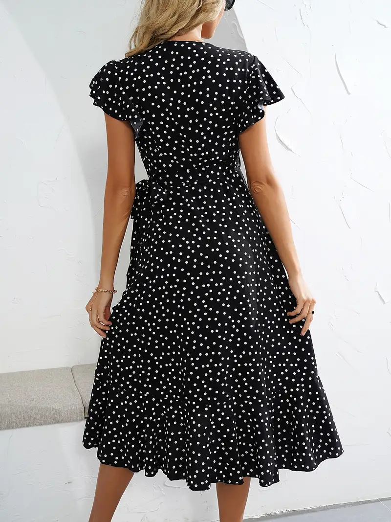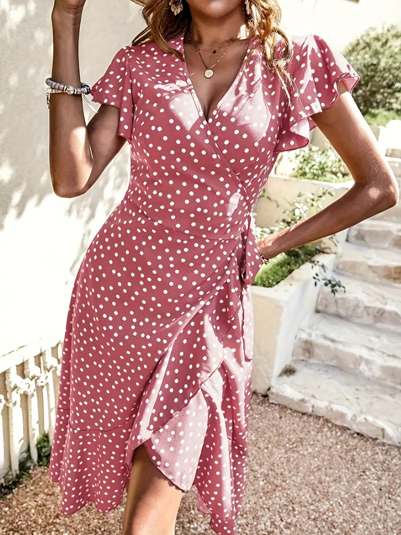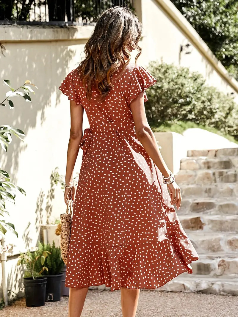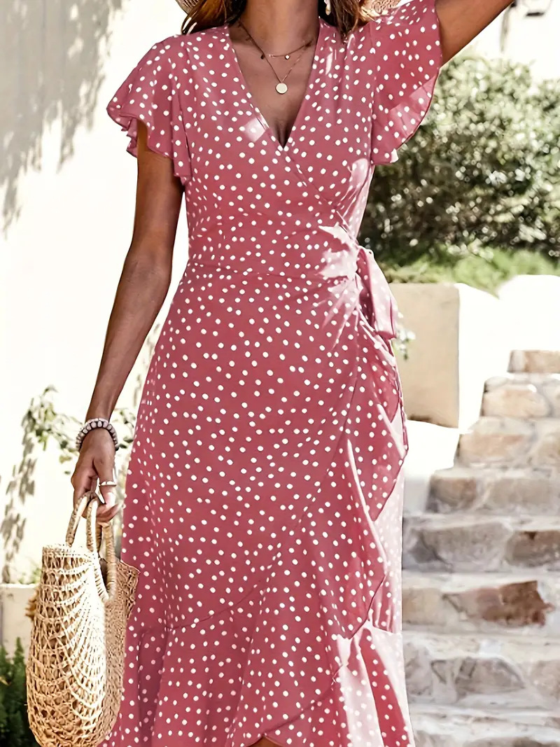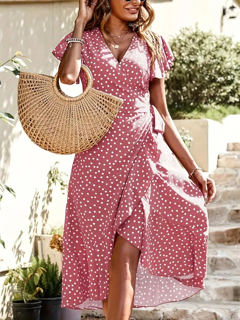 재고 있음 Amazon ebay 유럽 및 미국 국경 간 핫 세일 여름 v 넥 프린트 반소매 스커트 레이스 업 러플 드레스스토어 가기
