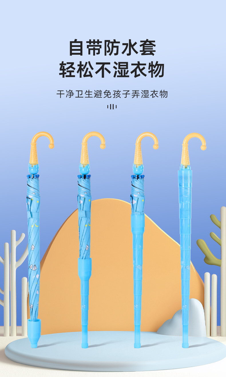 만화 어린이 우산 자동 긴 손잡이 우산 도매 비닐 귀여운 남성과 여성 초등학생 태양 우산 방수 케이스