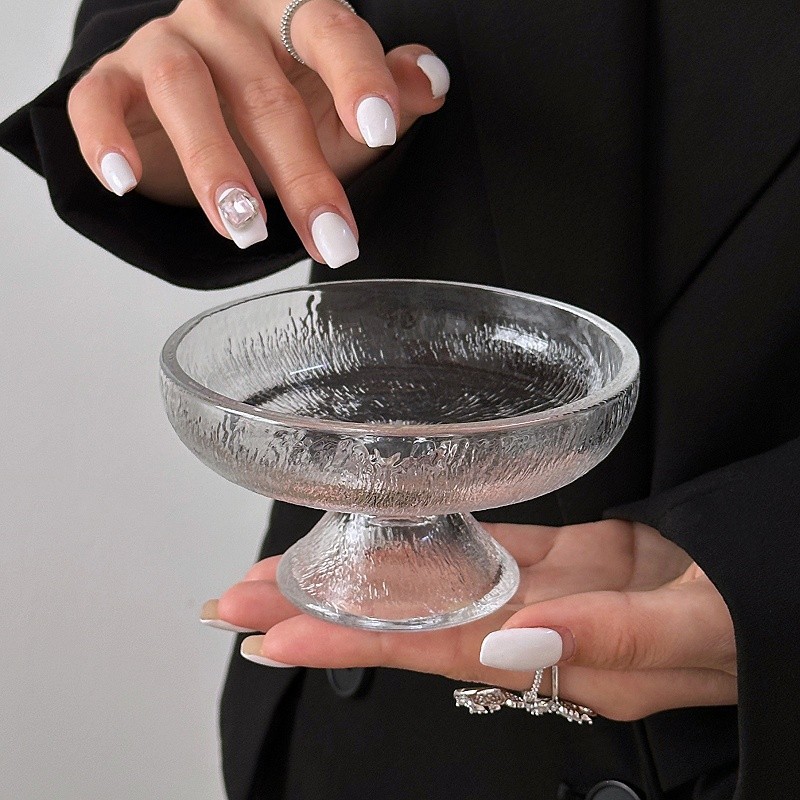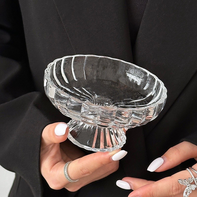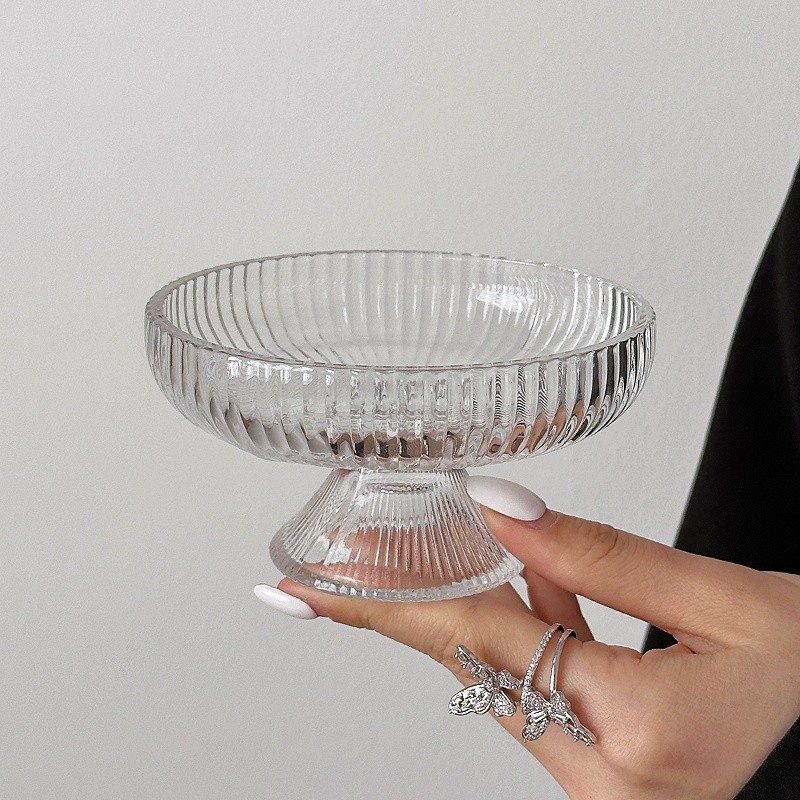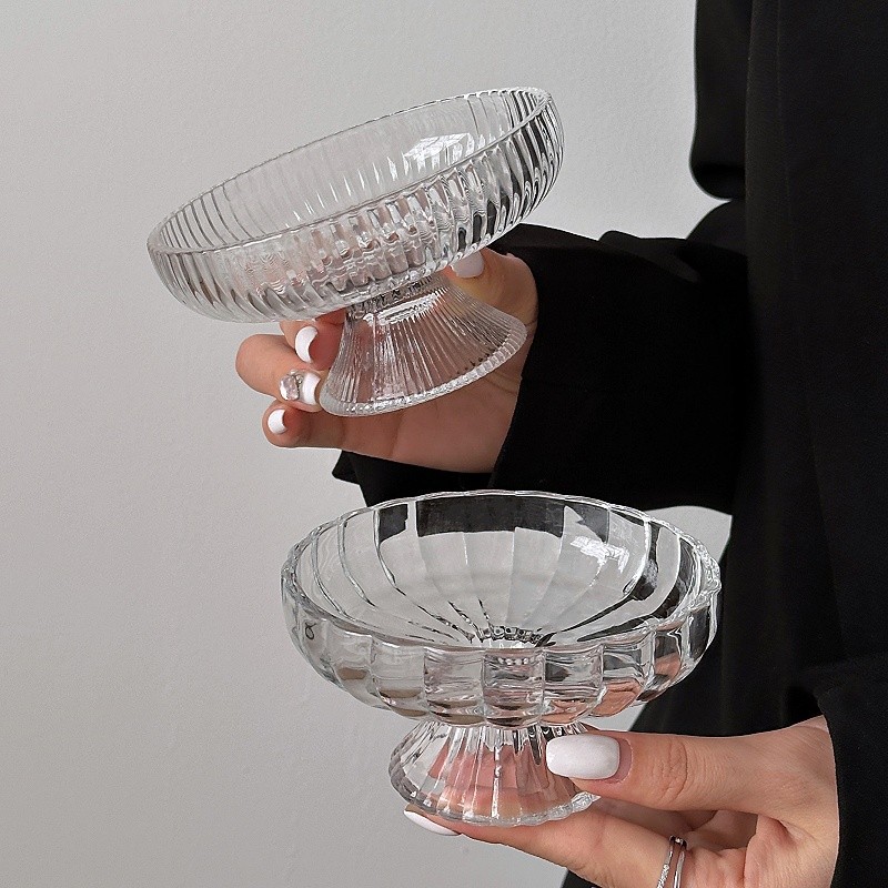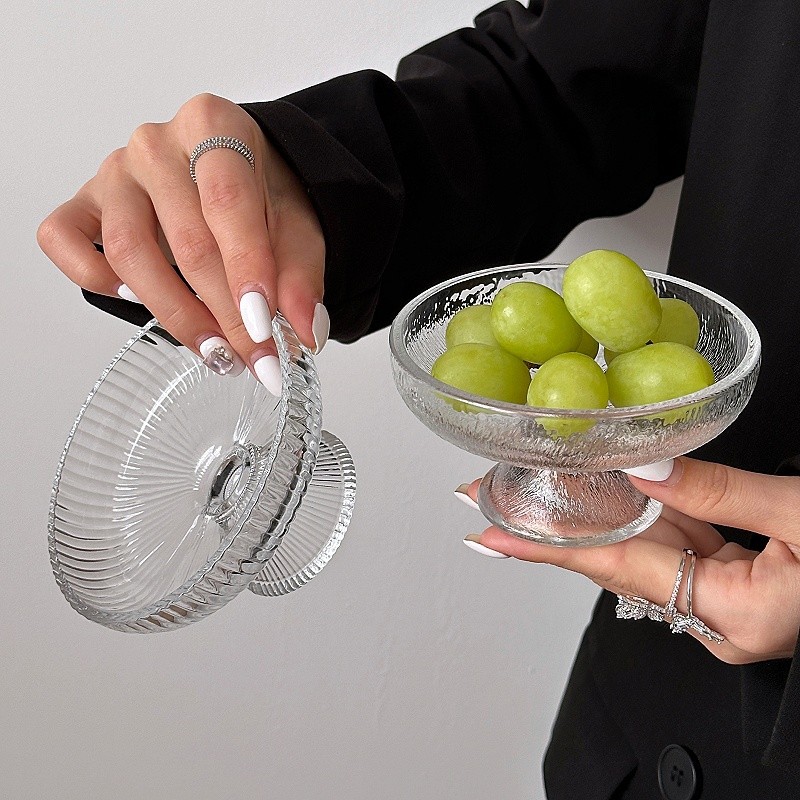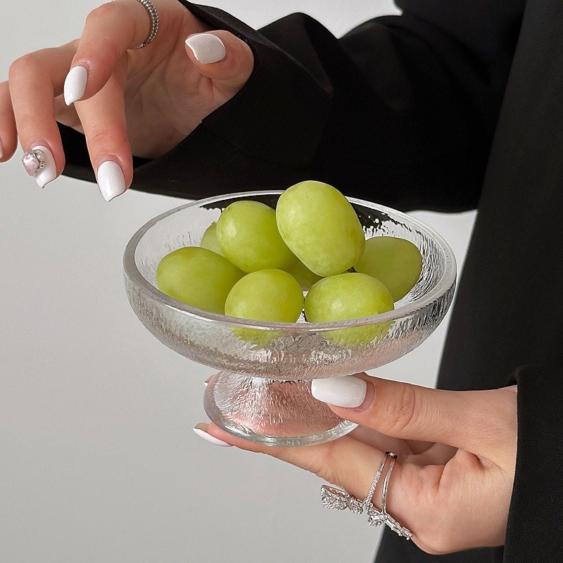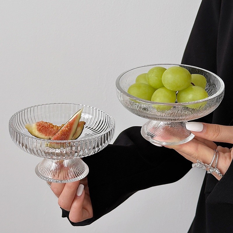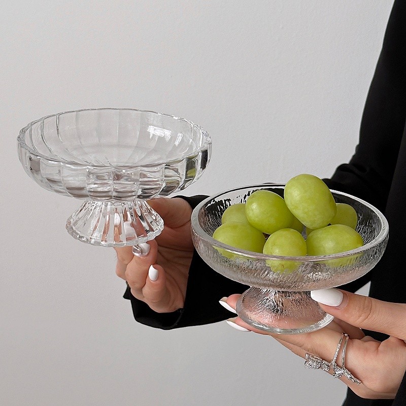 ~水果盘小精致冰川玻璃高脚盘糖果零食盘果盘点心甜品盘 敲好看 集美们 推荐入手~