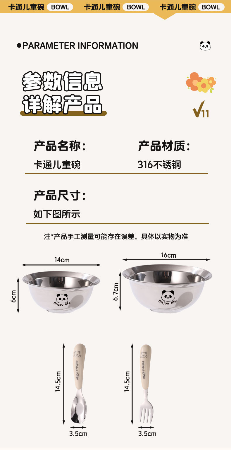 • 귀여운 팬더 [16cm 그릇] + 크림 팬더 위안바오 스푼