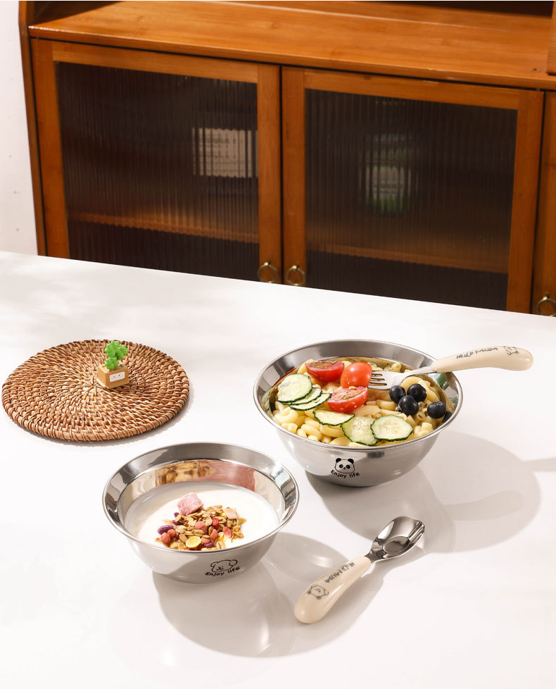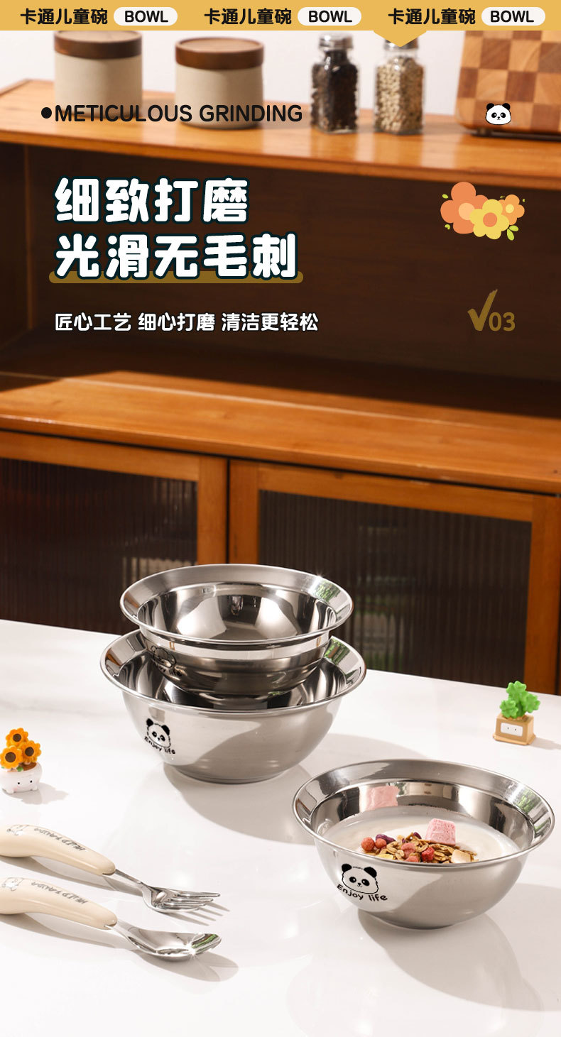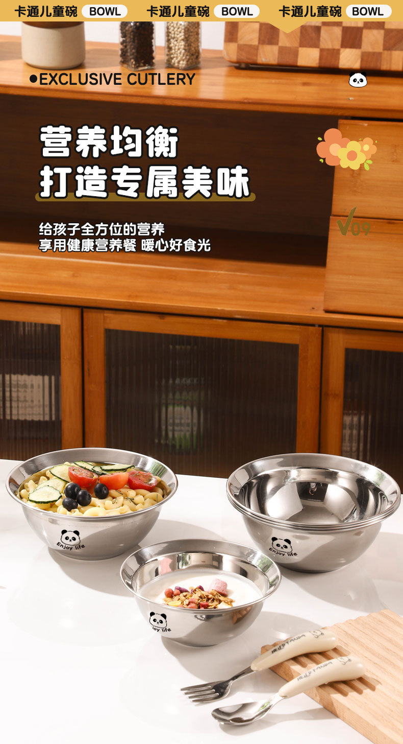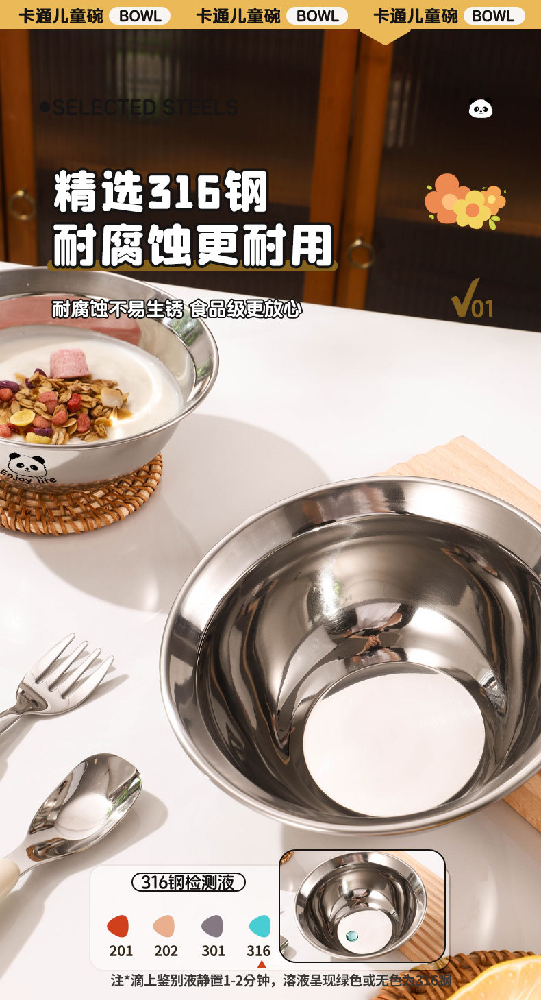 만화 304 스테인레스 스틸 수프 그릇 어린이 먹는 그릇 낙하 방지 가정용 아기 식기 3 피스 세트 두꺼운 보충 식품 그릇