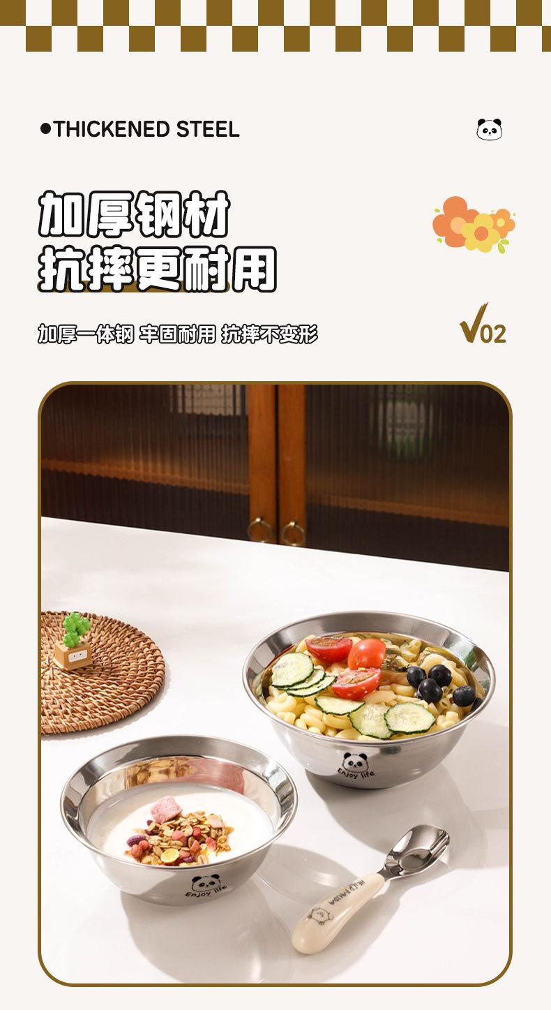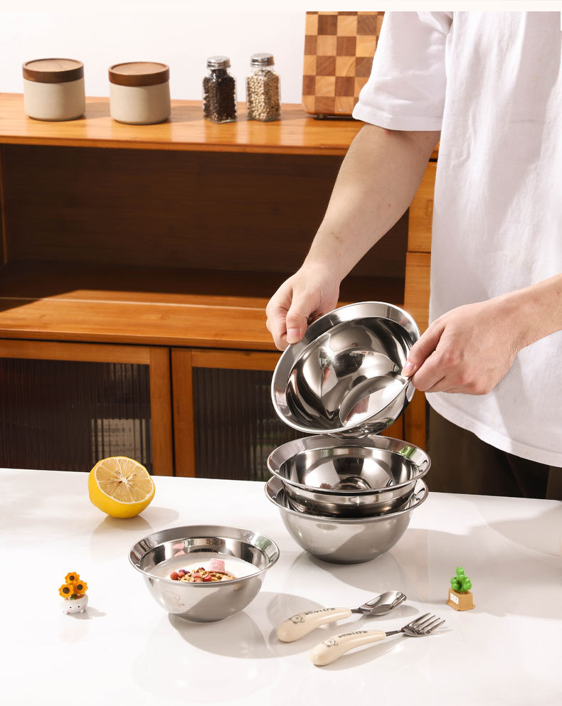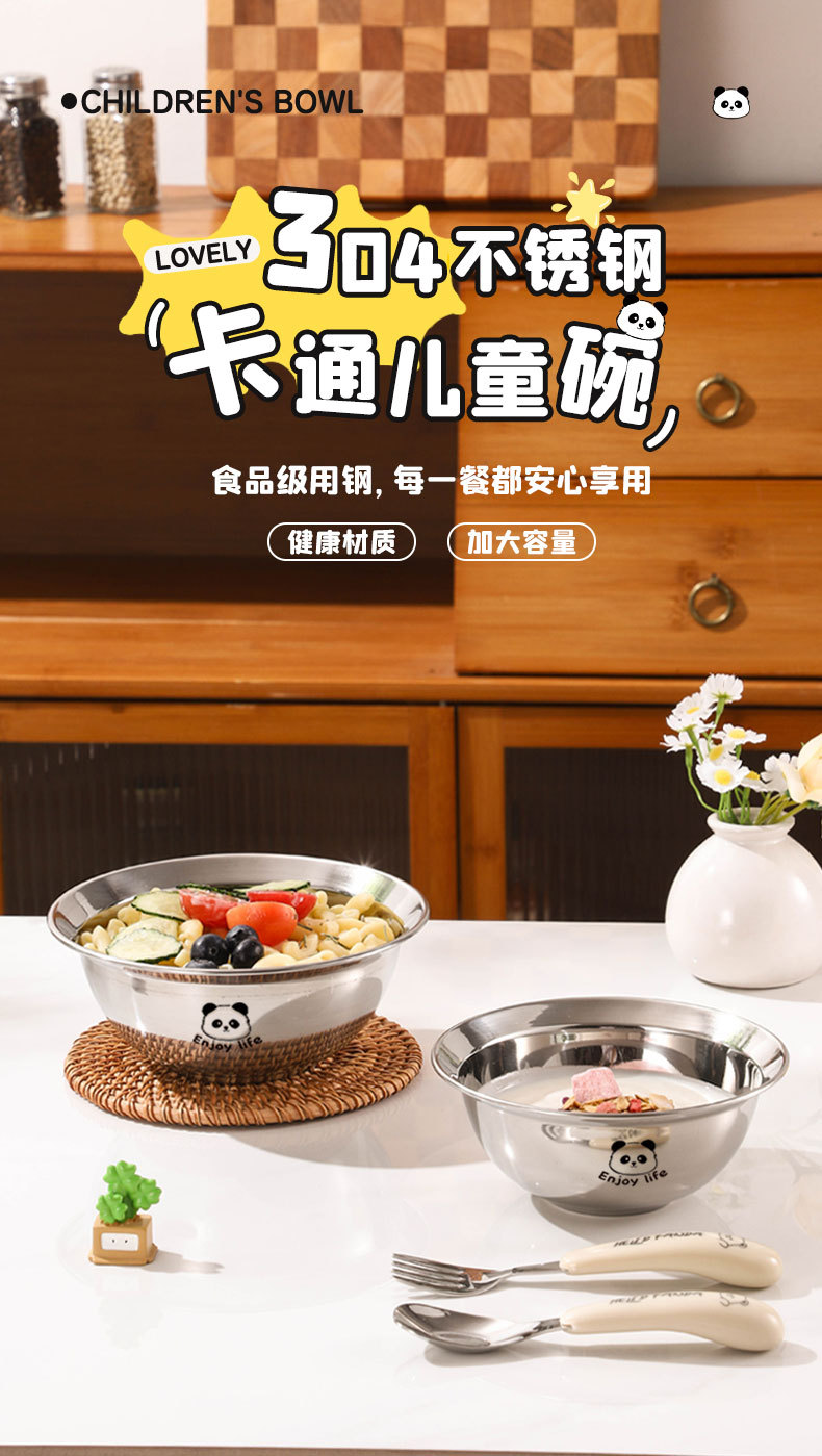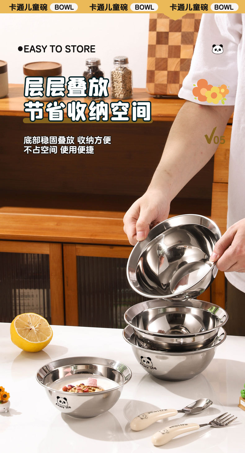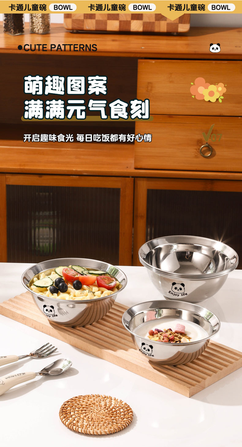 만화 304 스테인레스 스틸 수프 그릇 어린이 먹는 그릇 낙하 방지 가정용 아기 식기 3 피스 세트 두꺼운 보충 식품 그릇