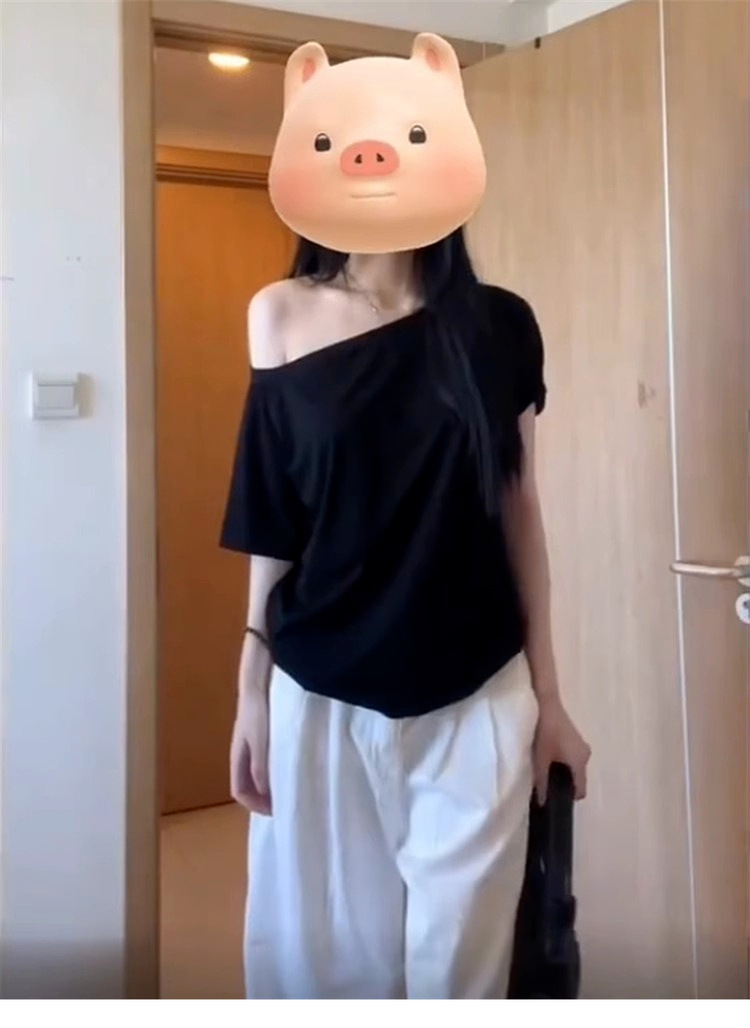 • 오프숄더 티셔츠 퓨어 코튼 블랙 보우