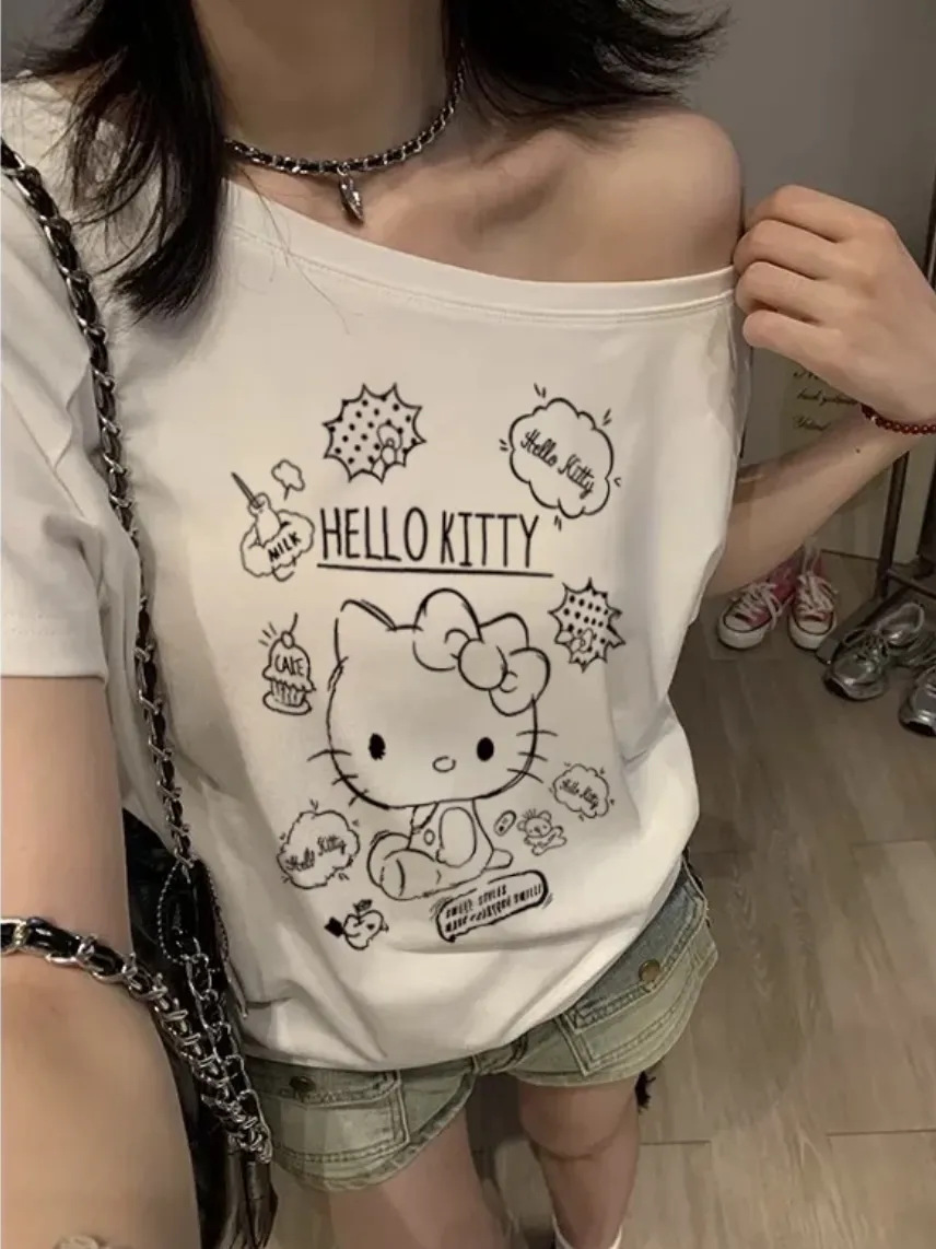 • 오프숄더 티셔츠 코튼화이트 KT캣