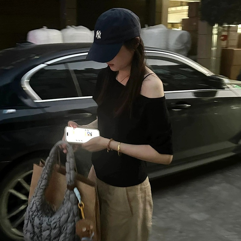 • 오프숄더 티셔츠 코튼 블랙 룬