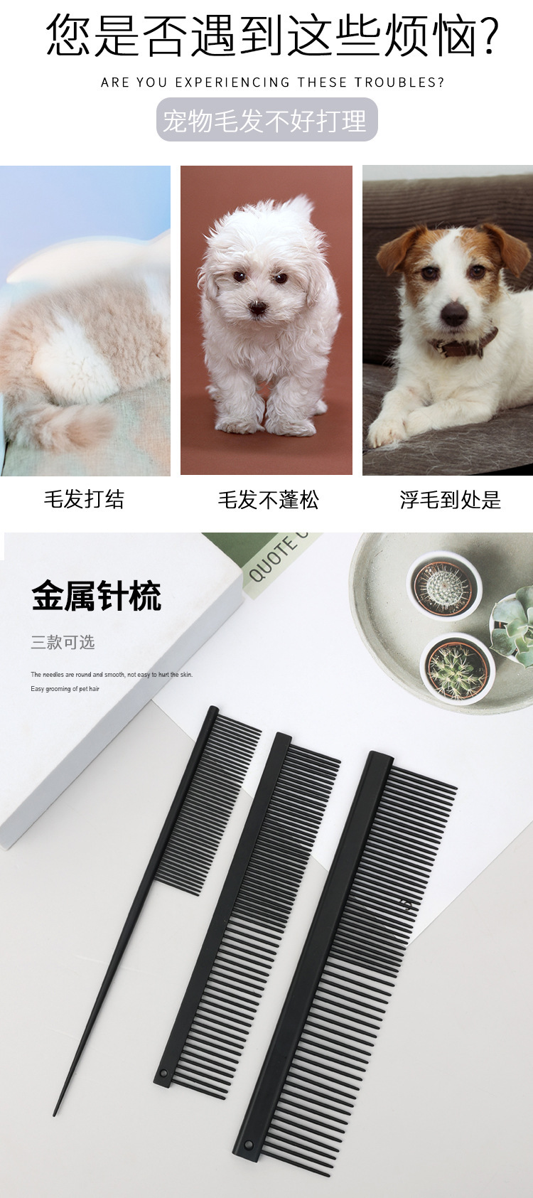 애완동물 용품 애완동물 빗 미용 빗 개와 고양이 털 선택 강철 빗 검은 빗 뾰족한 꼬리 빗스토어 가기