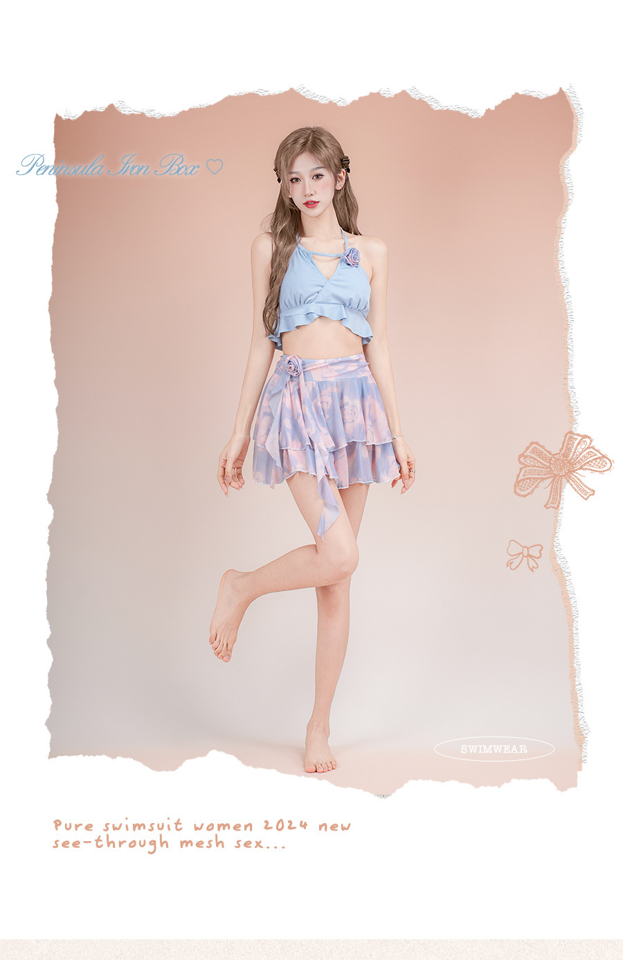 순수한 섹시함으로 배를 가려주고 슬림하게 보이는 2026년 신상 핫 아이템 여성용 분리형 수영복, 온천톤 고급 폴리에스터 9172