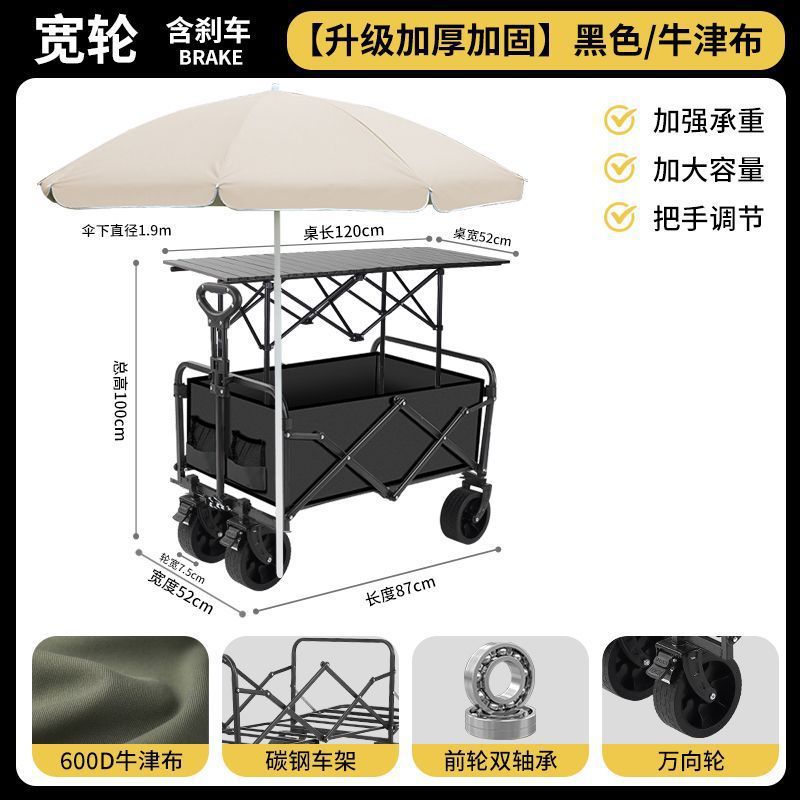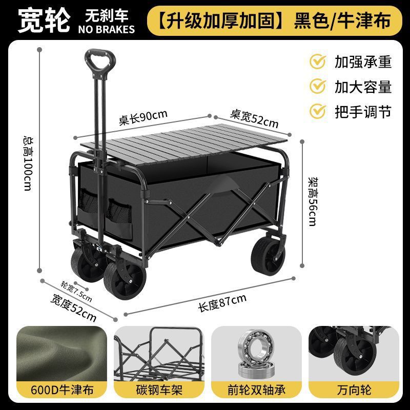 • 캠프카 + 접이식 테이블 - 대형 트레일러 탱크 휠(블랙)