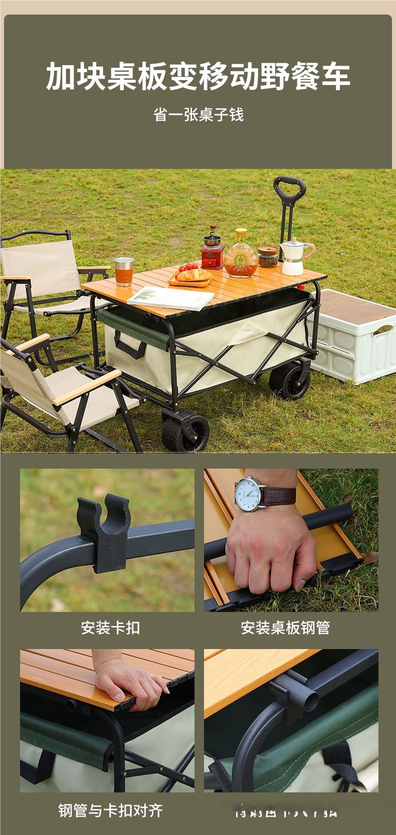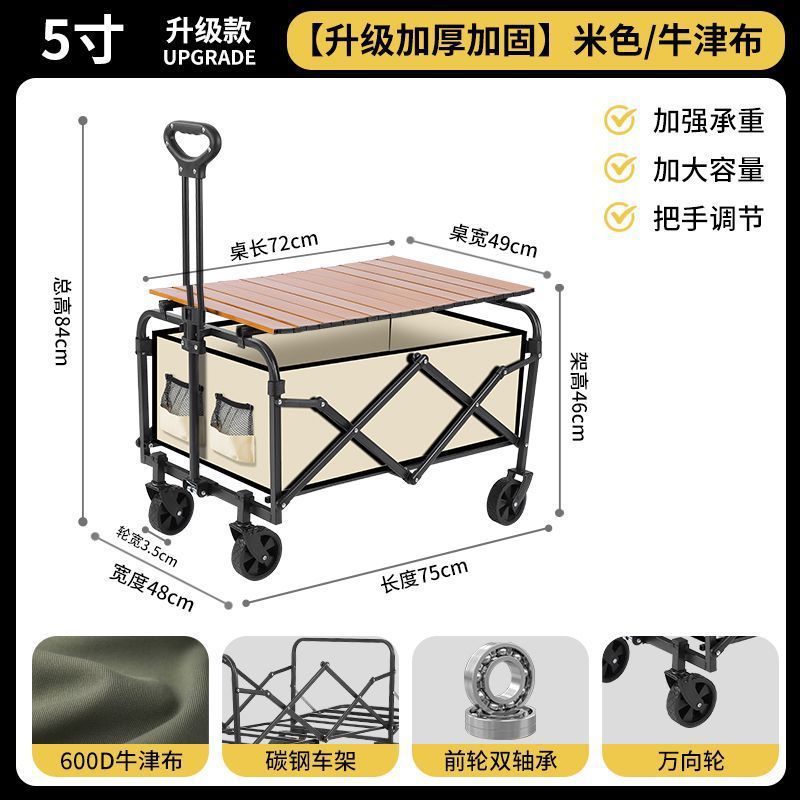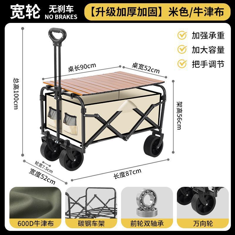 • 캠프카 + 접이식 스톨 테이블 - 대형 트레일러 탱크 휠(베이지색)