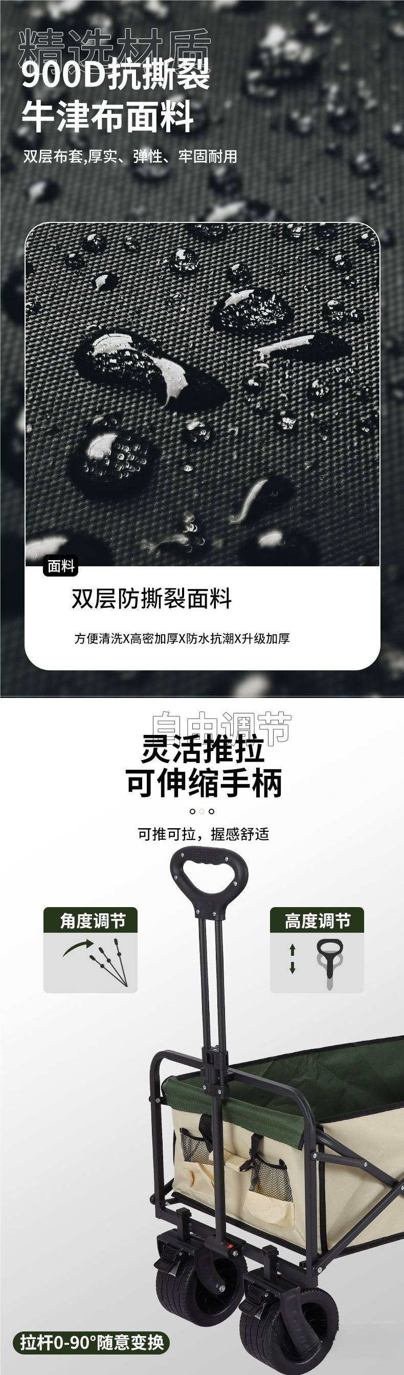 • 캠퍼밴 + 접이식 테이블 - 대형 트레일러 탱크 휠(카키색)