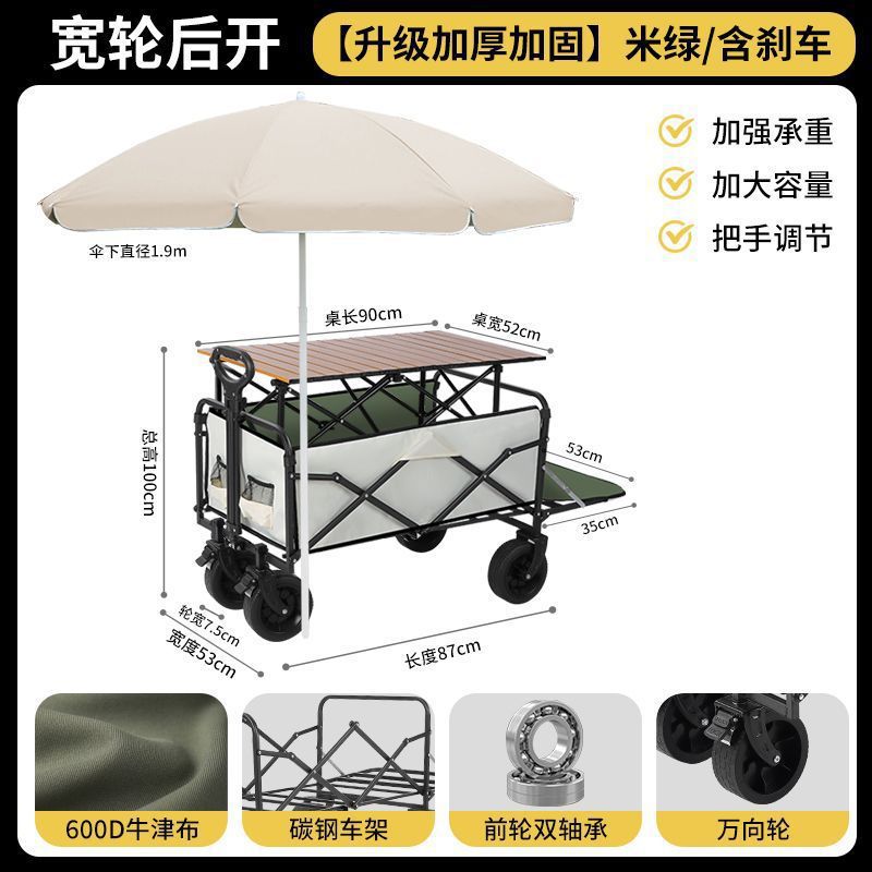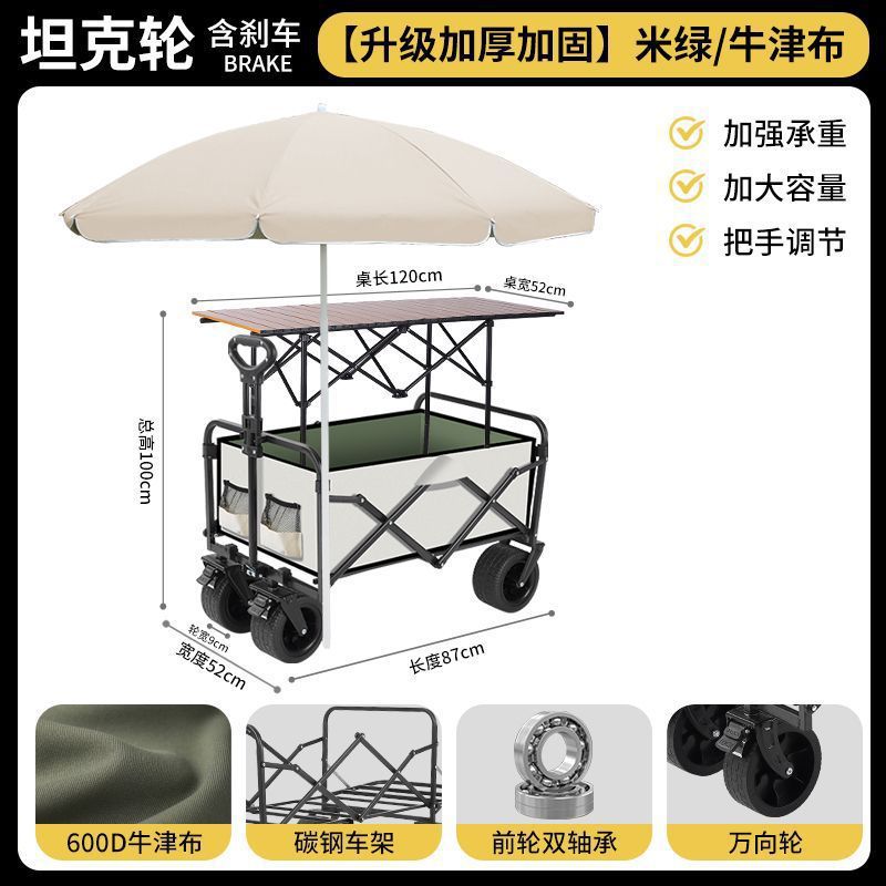 • 캠퍼밴 + 접이식 테이블 + 파라솔 - 브레이크가 장착된 대형 탱크 휠(카키색)